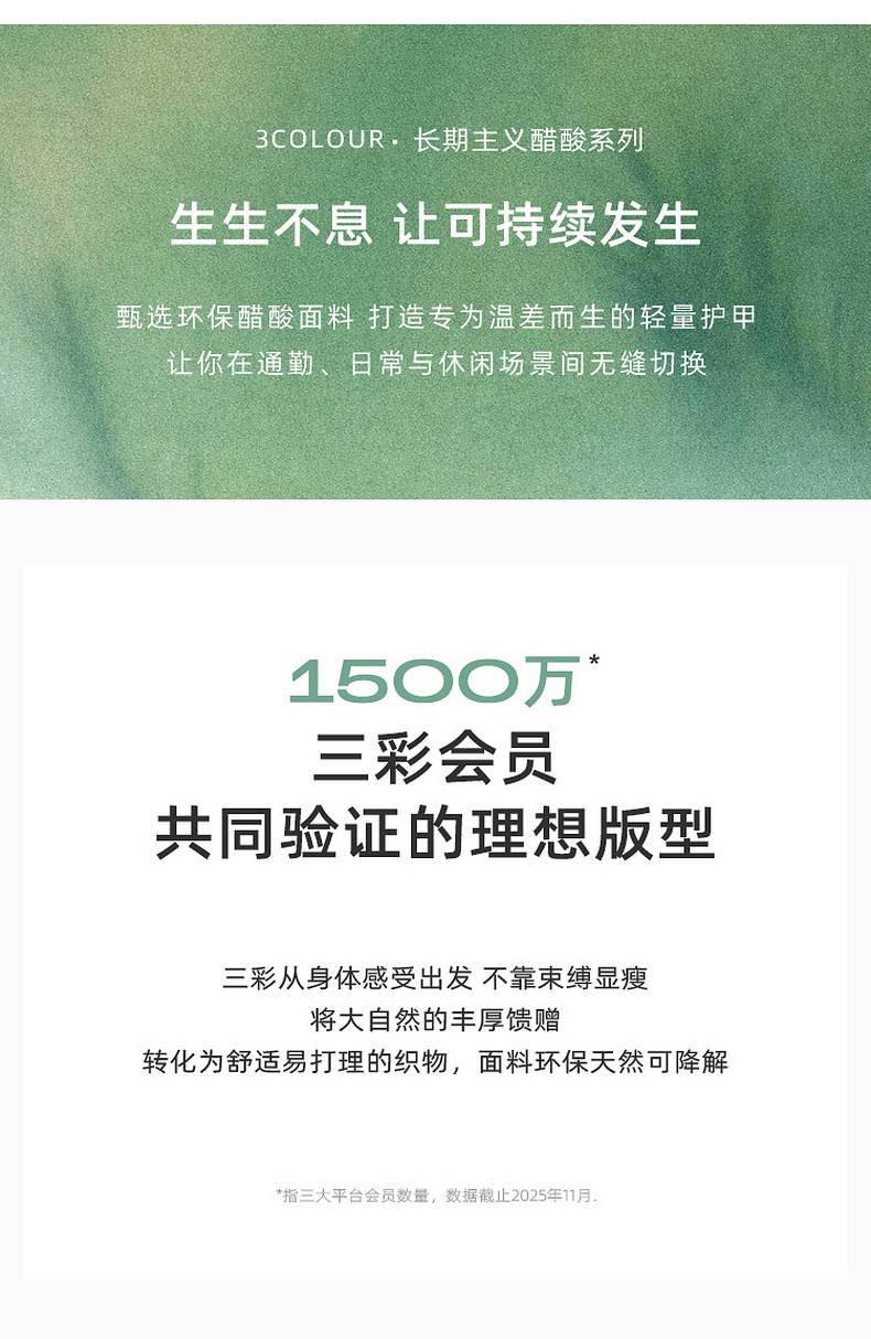 - 3COLOUR,一直致力于探索自我与时尚审美,用穿衣哲学折射生活主张,在流动中探寻恒久。