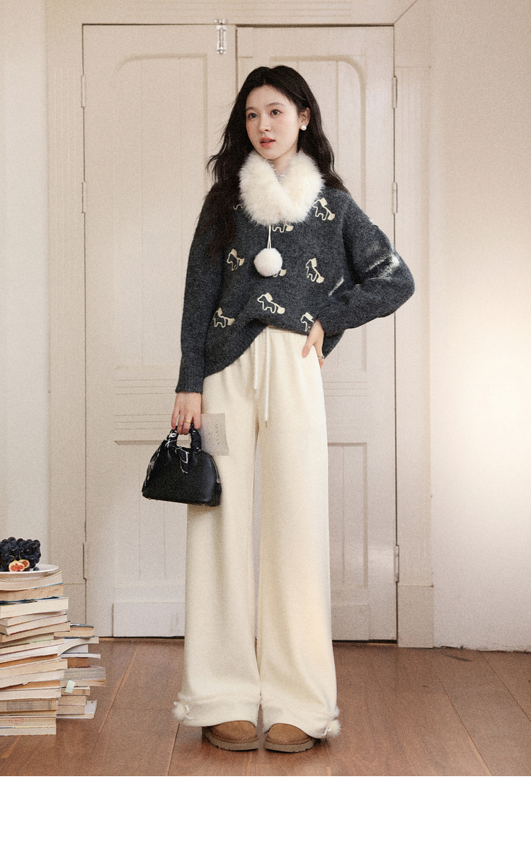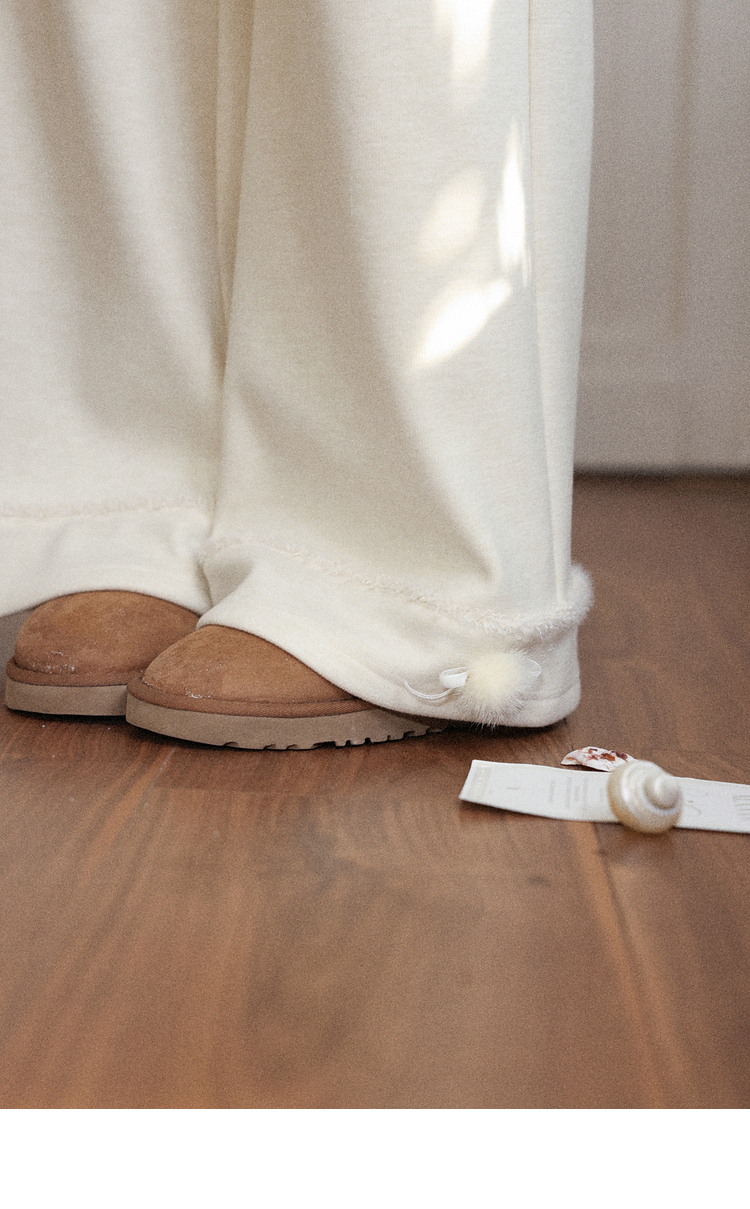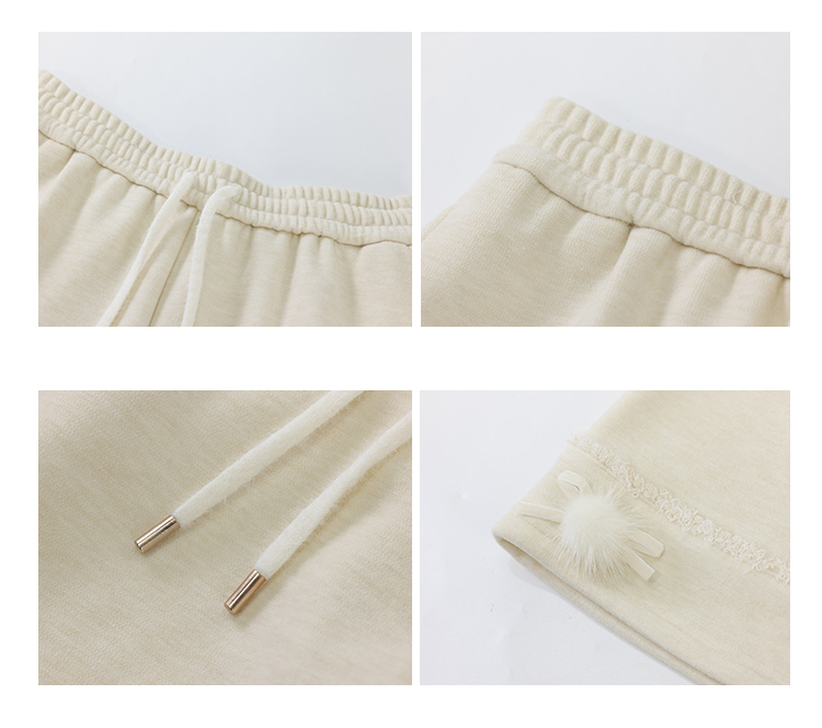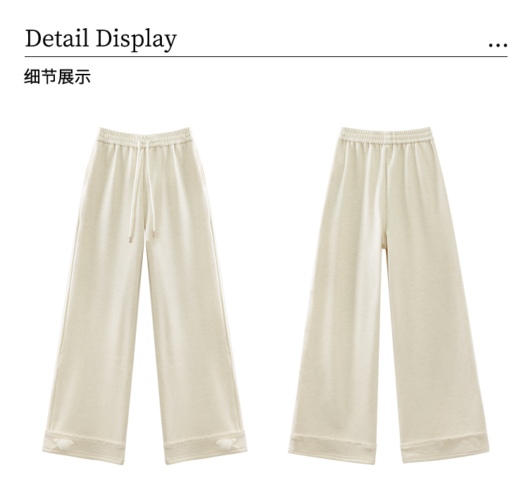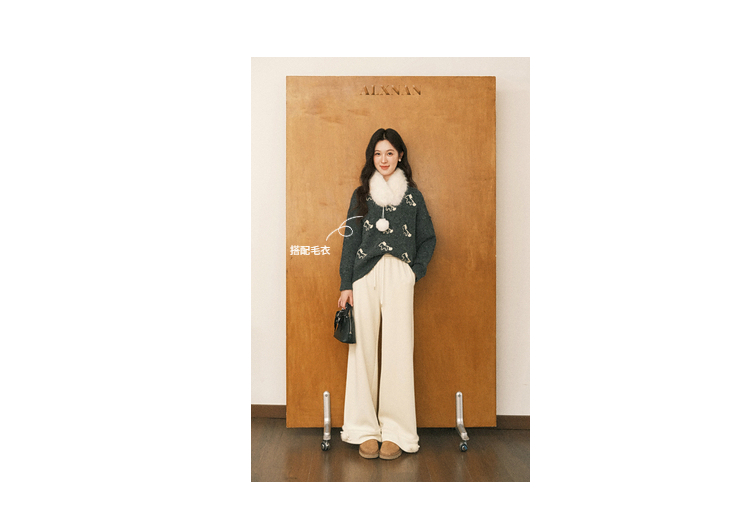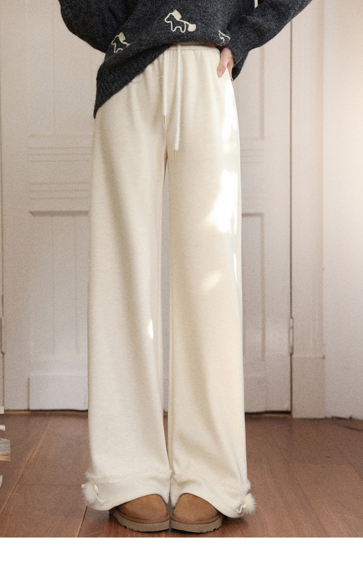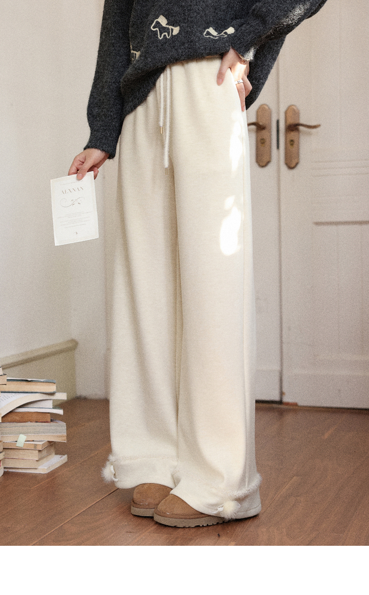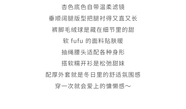 鹿向南「休闲软妹」杏色加绒休闲裤女秋冬宽松显瘦加厚阔腿长裤子