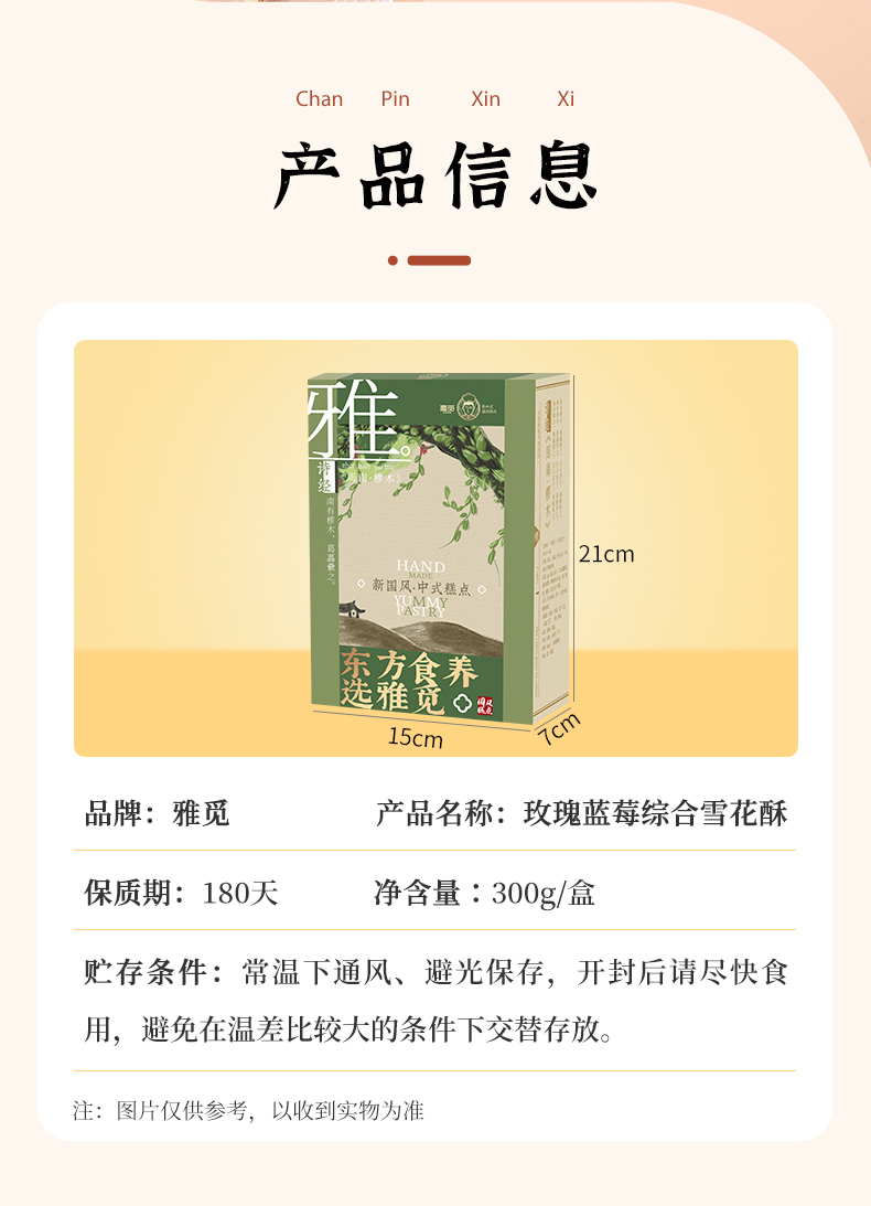 雅觅玫瑰蓝莓综合雪花酥300g