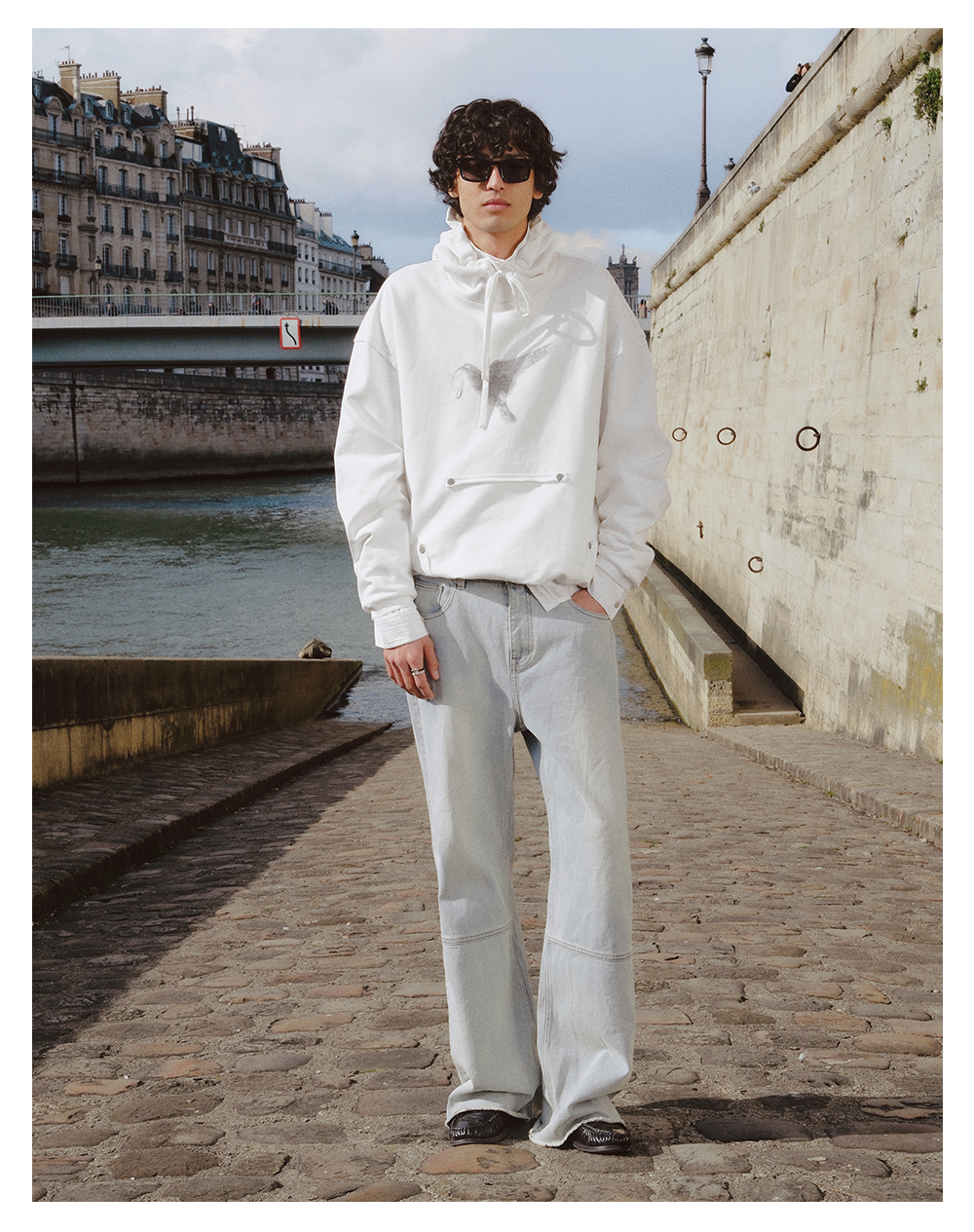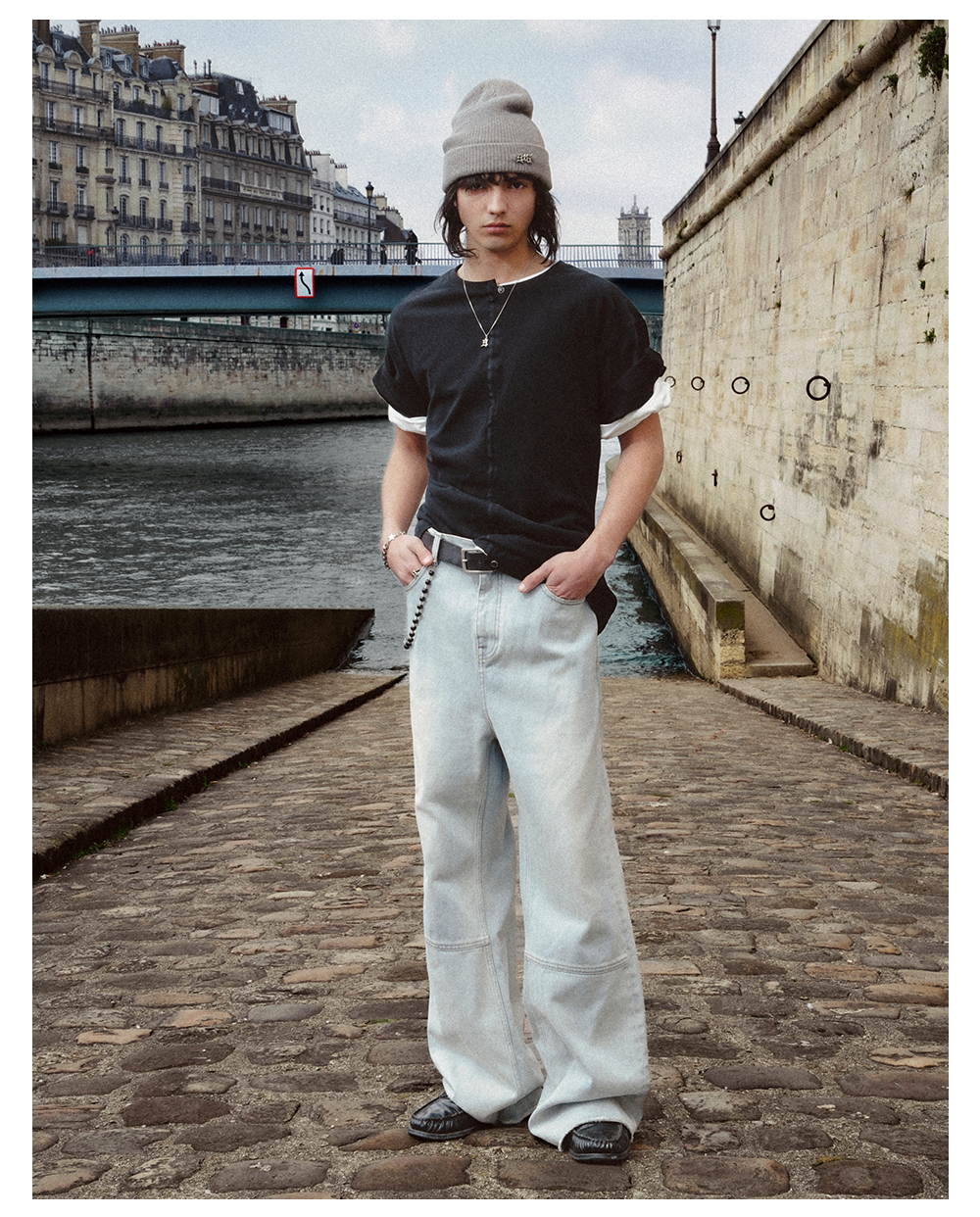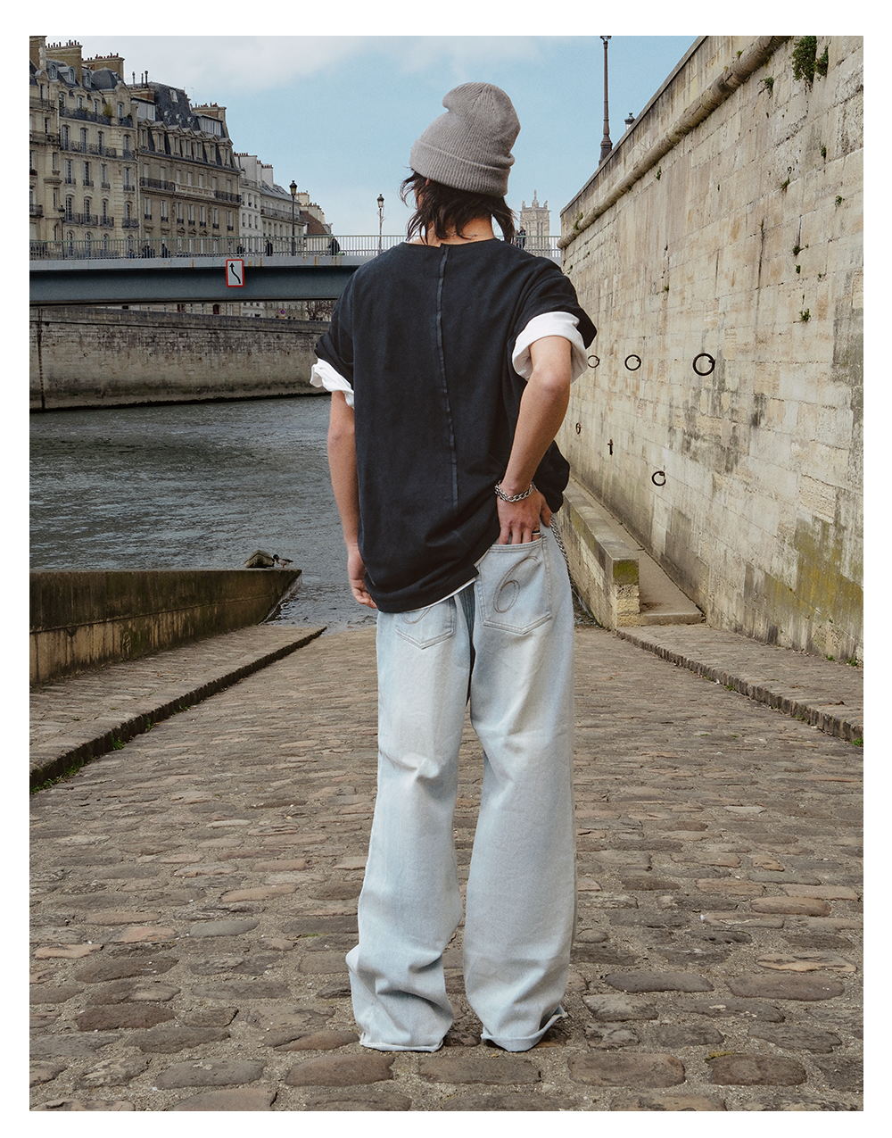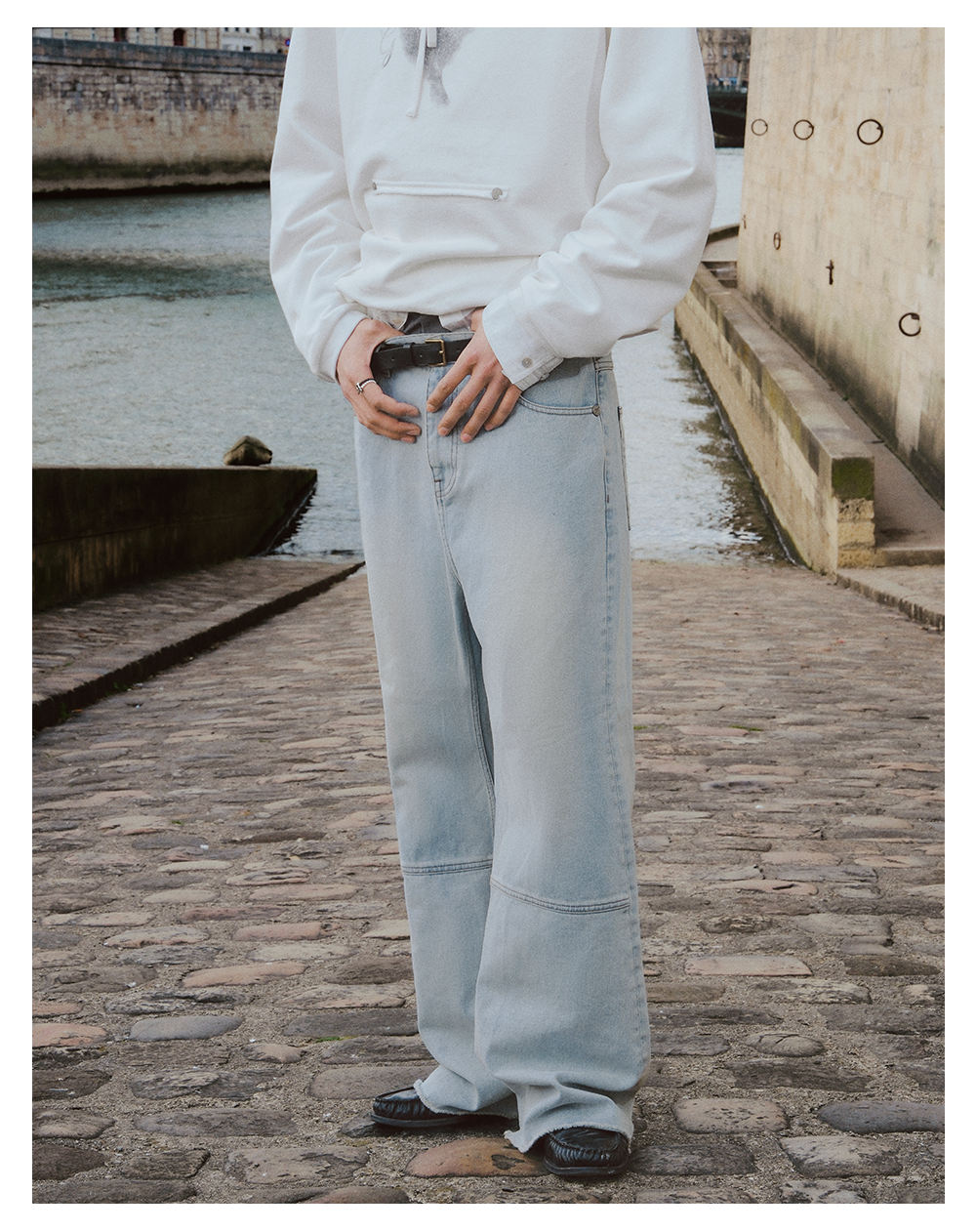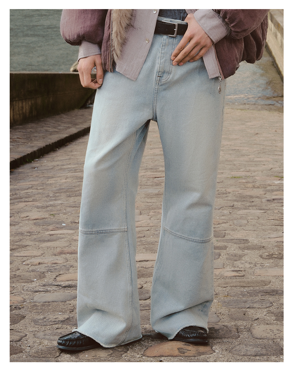 GOODBAI 916 logo洗色拼接微喇牛仔裤