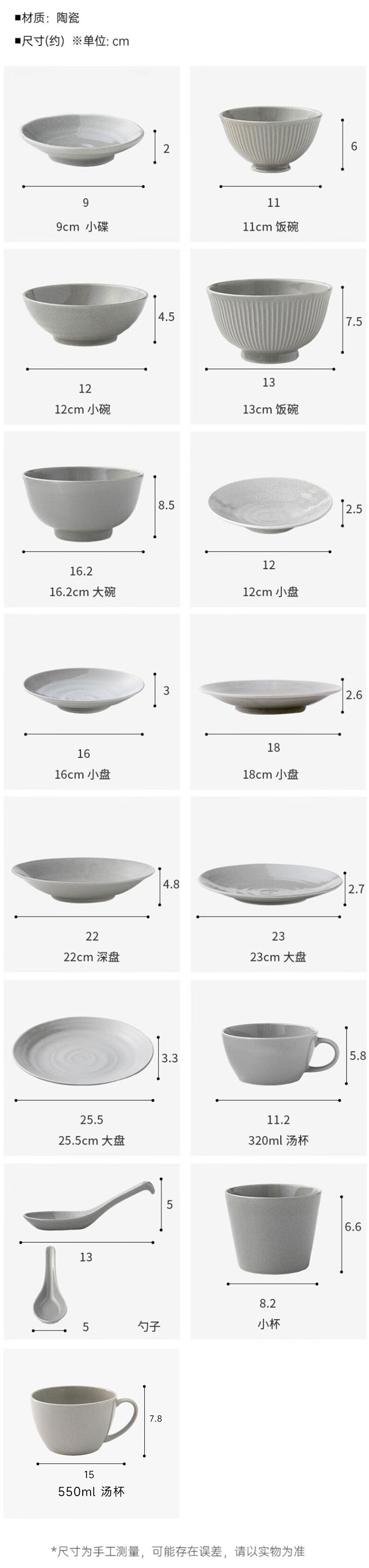 日本制超轻量餐具 银灰釉 饭碗/小碗/大碗/超小盘/小盘/大盘/深盘/超大盘/汤杯/大汤杯/小碟/小杯/勺子