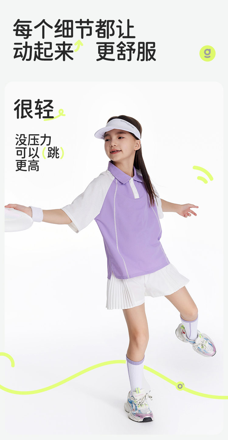 onmygame【轻舞风琴】女童短袖t恤儿童百褶运动上衣夏季2024新款