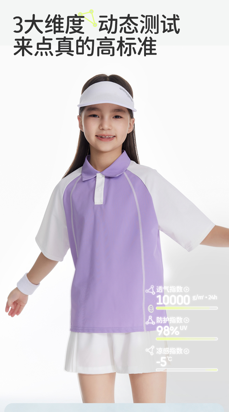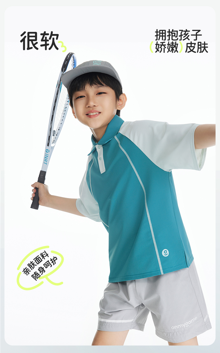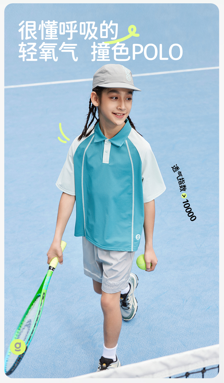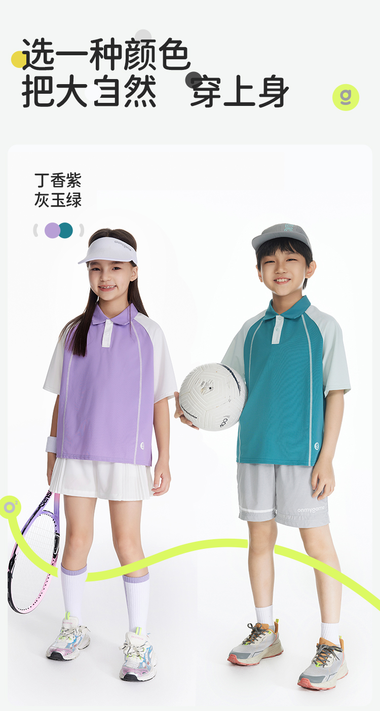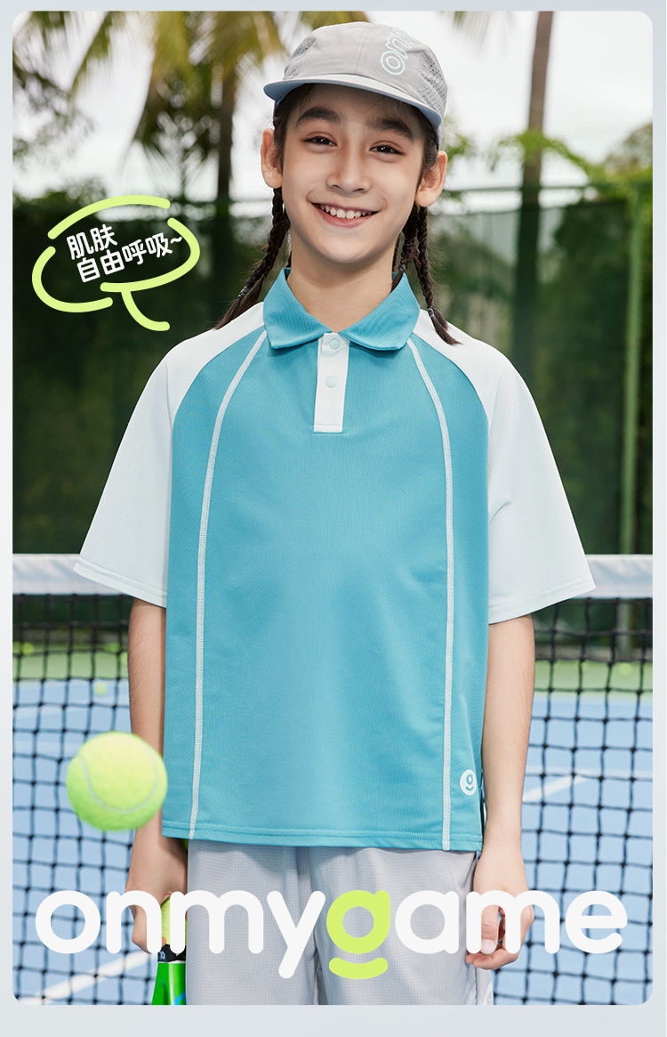 onmygame儿童短袖T恤2024年吸湿排汗男女童POLO衫凉感透气上衣夏