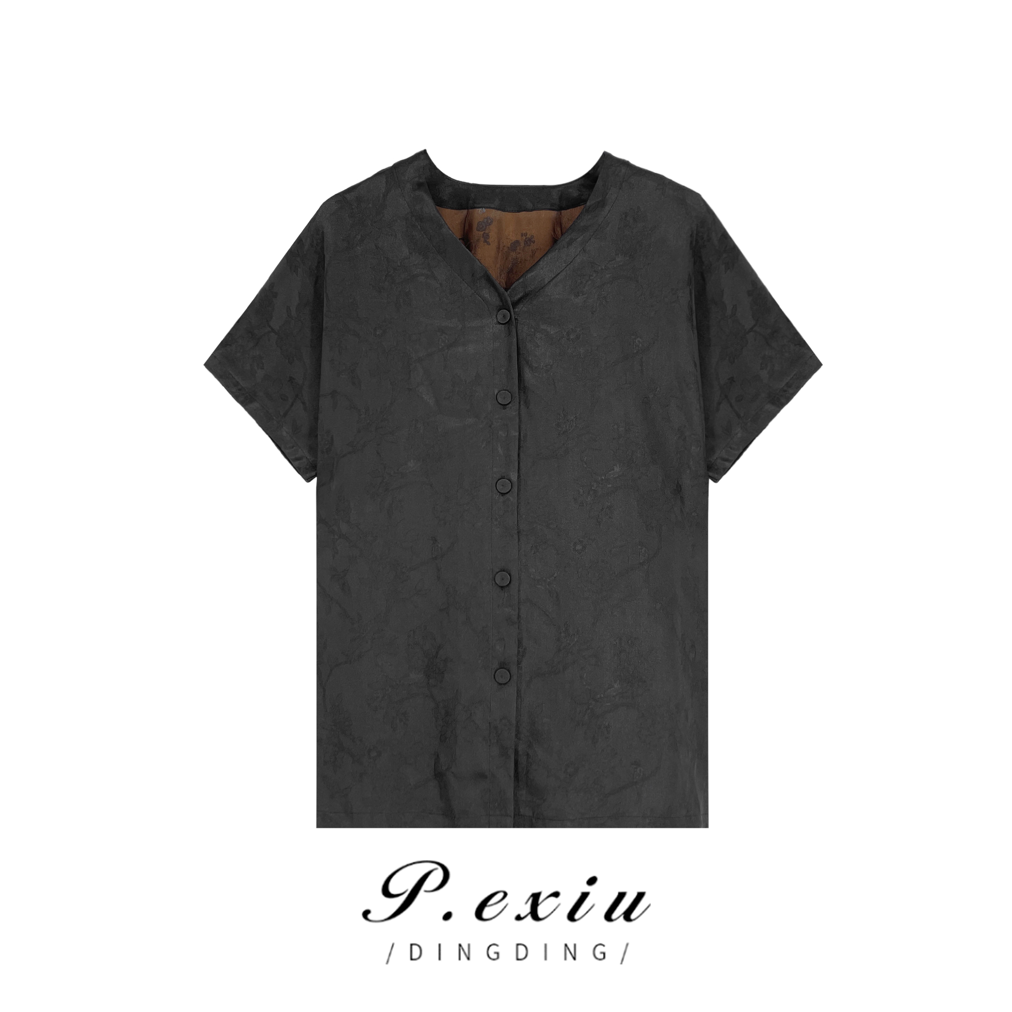 A007潘依绣丁丁宠粉【四时江南】香-云-纱-提花气质显瘦质感短袖衬衫 W-61398