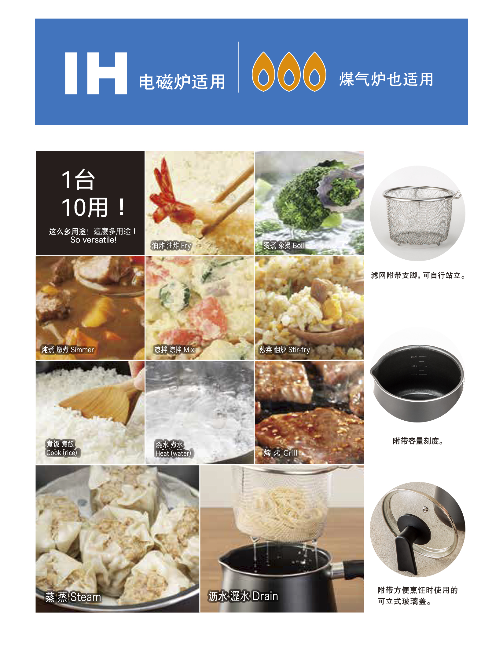 大容量烧水壶煮面蒸煎多功能电磁炉兼用1台10用锅