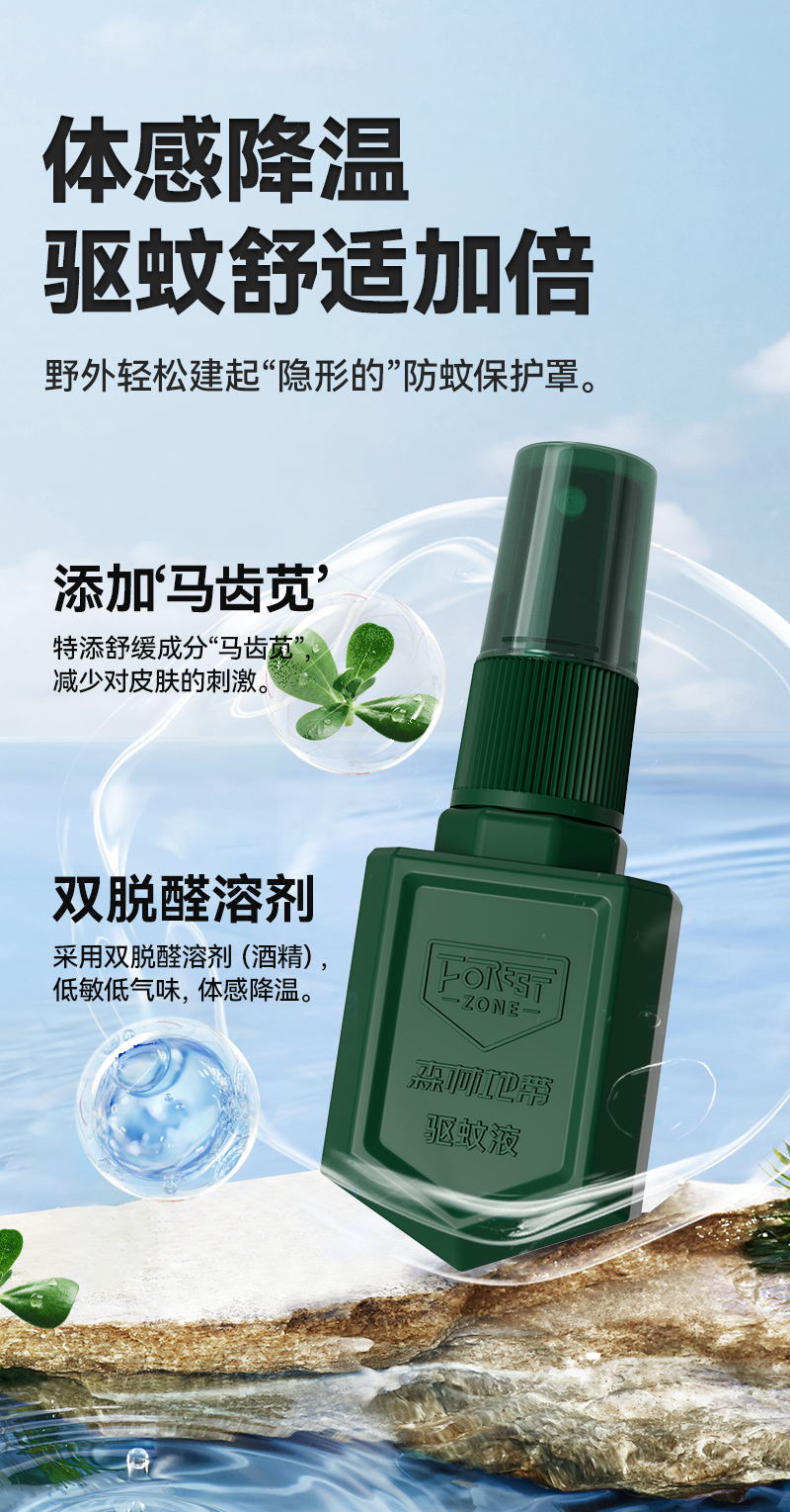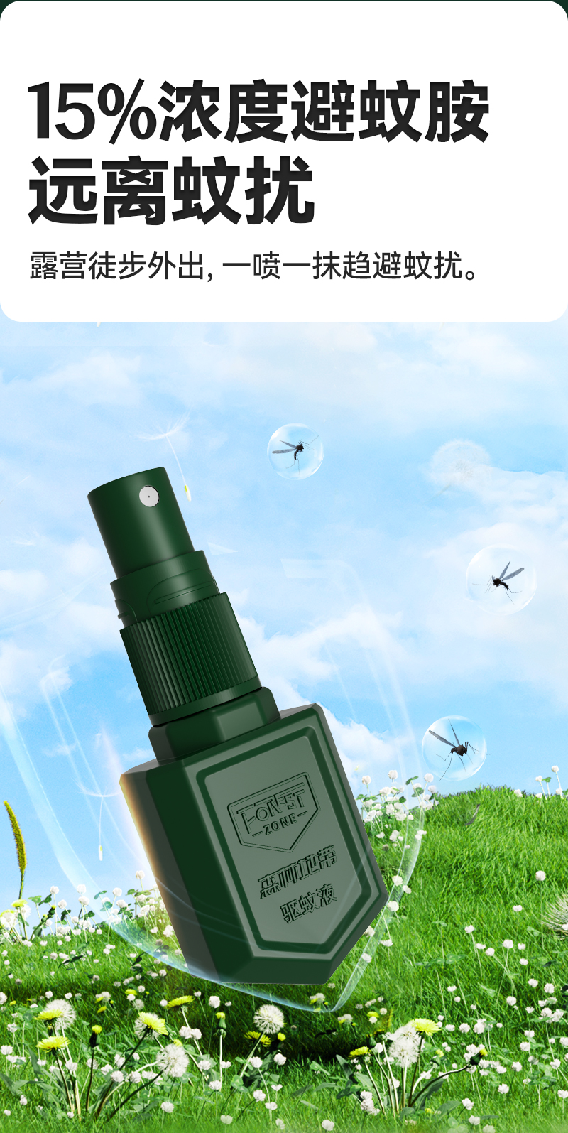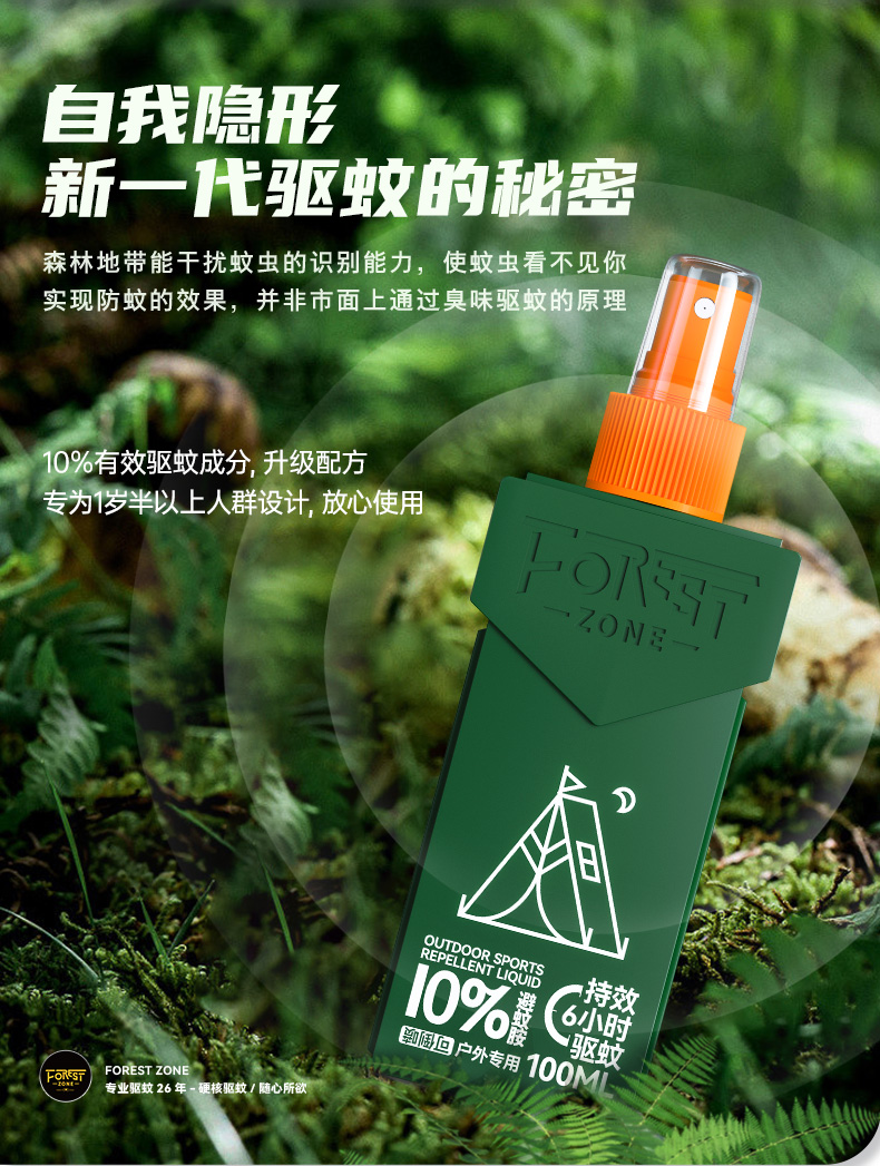森林地带驱蚊液(野趣款/探索款/乐野款/爆护便携款)独特贴心设计,驱蚊液可倒喷,一瓶解决全家出行防蚊问题