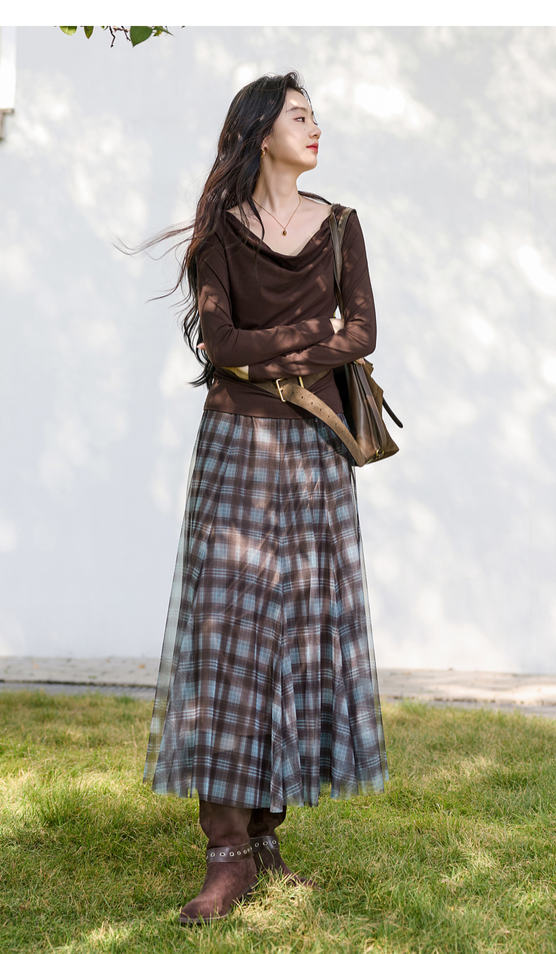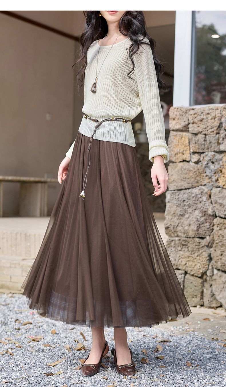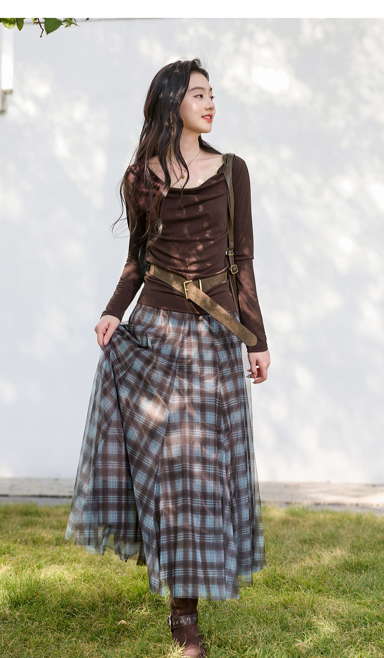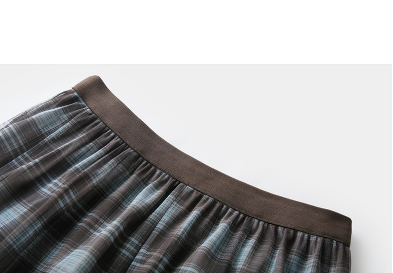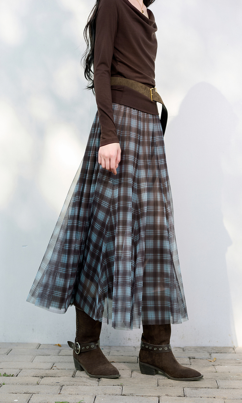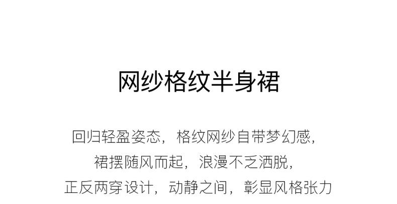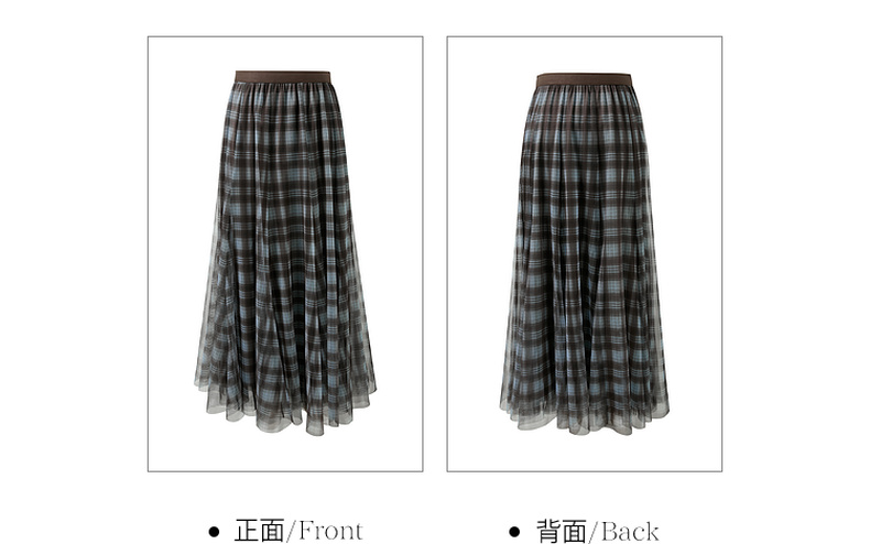 三彩2026春季新款两穿格纹网纱半身裙松紧腰A字裙长裙梦幻S