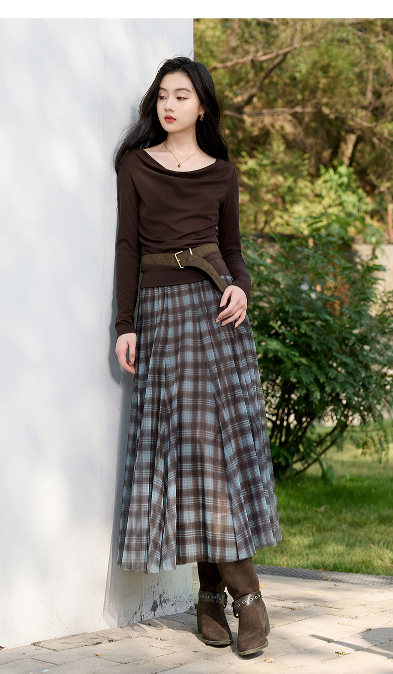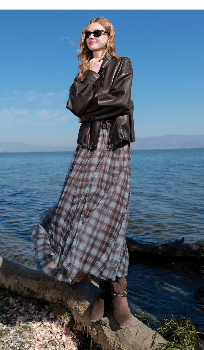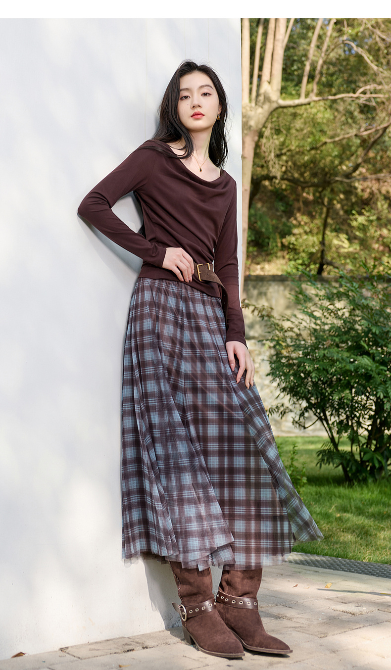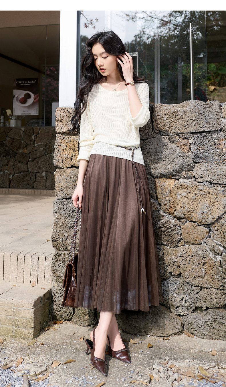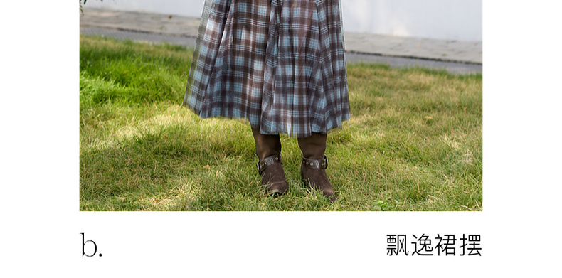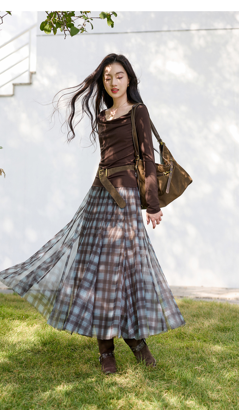 三彩2026春季新款两穿格纹网纱半身裙松紧腰A字裙长裙梦幻S