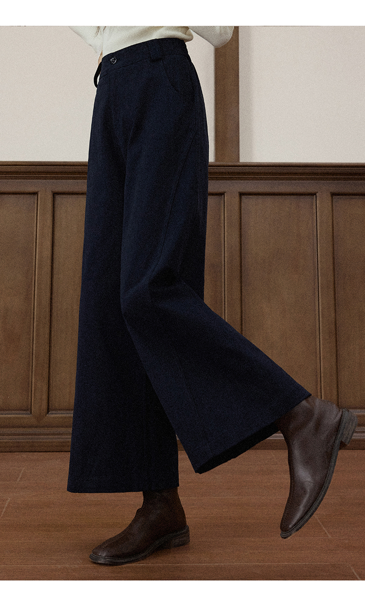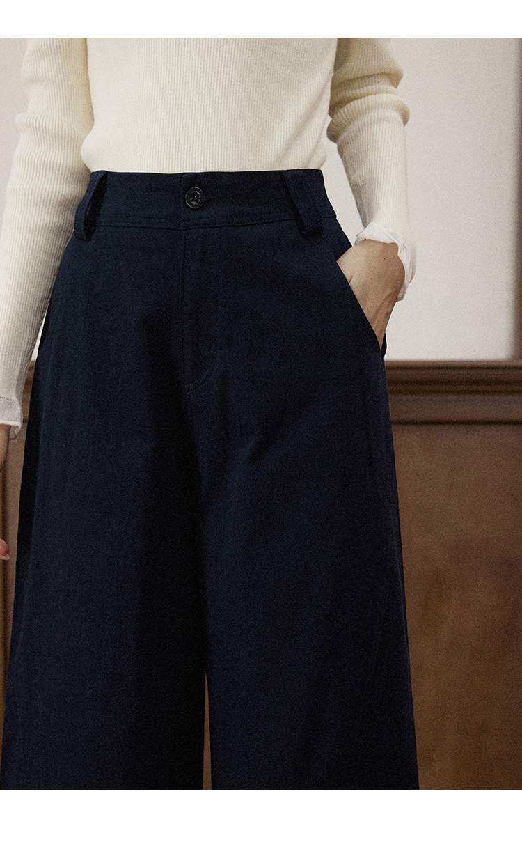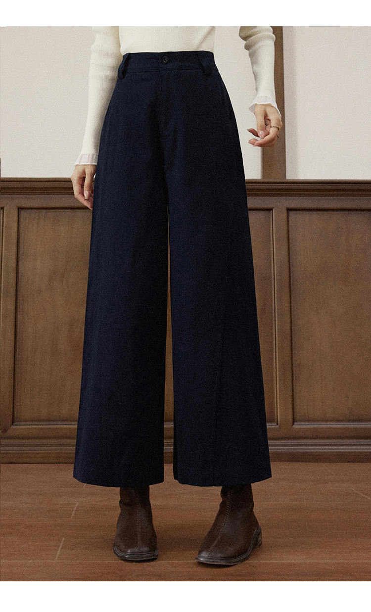 【6折秒杀】鹿向南「月下吟诗」藏蓝色高腰阔腿裤女秋冬季垂感宽松休闲直筒裤