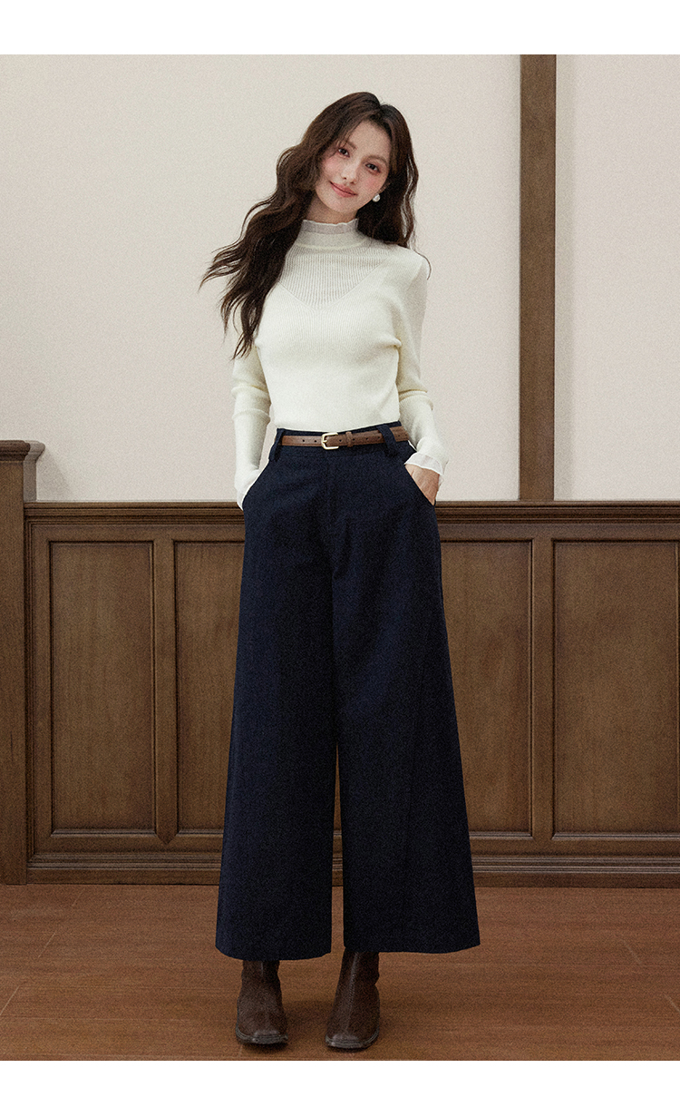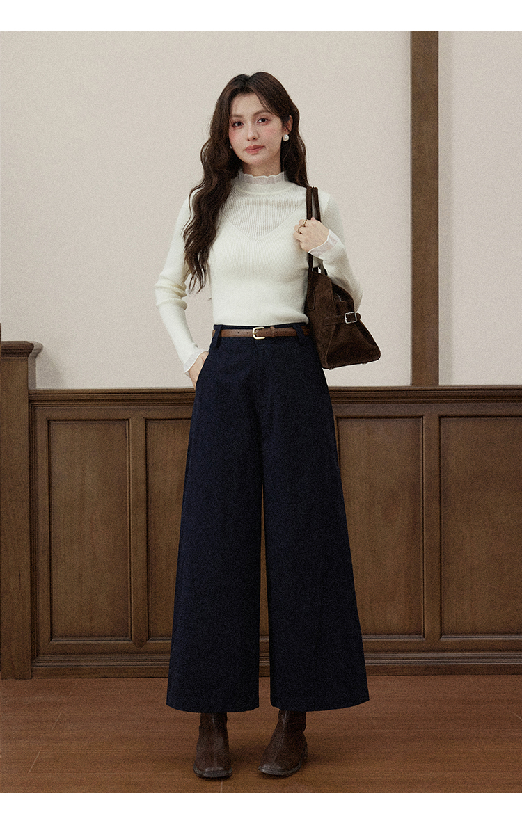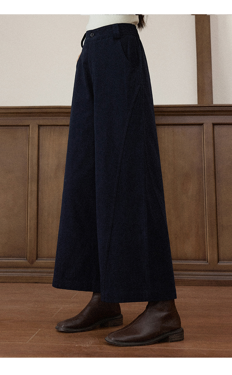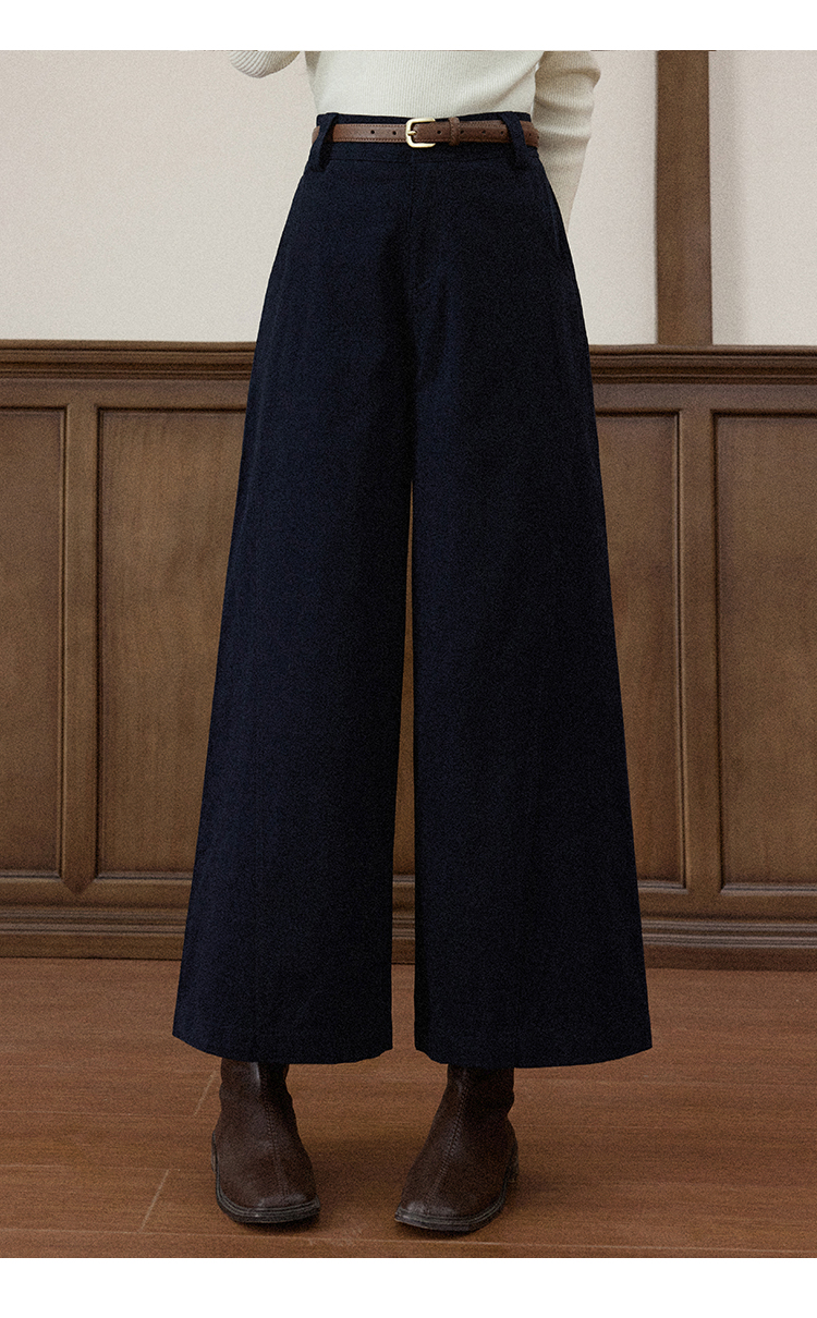 【6折秒杀】鹿向南「月下吟诗」藏蓝色高腰阔腿裤女秋冬季垂感宽松休闲直筒裤