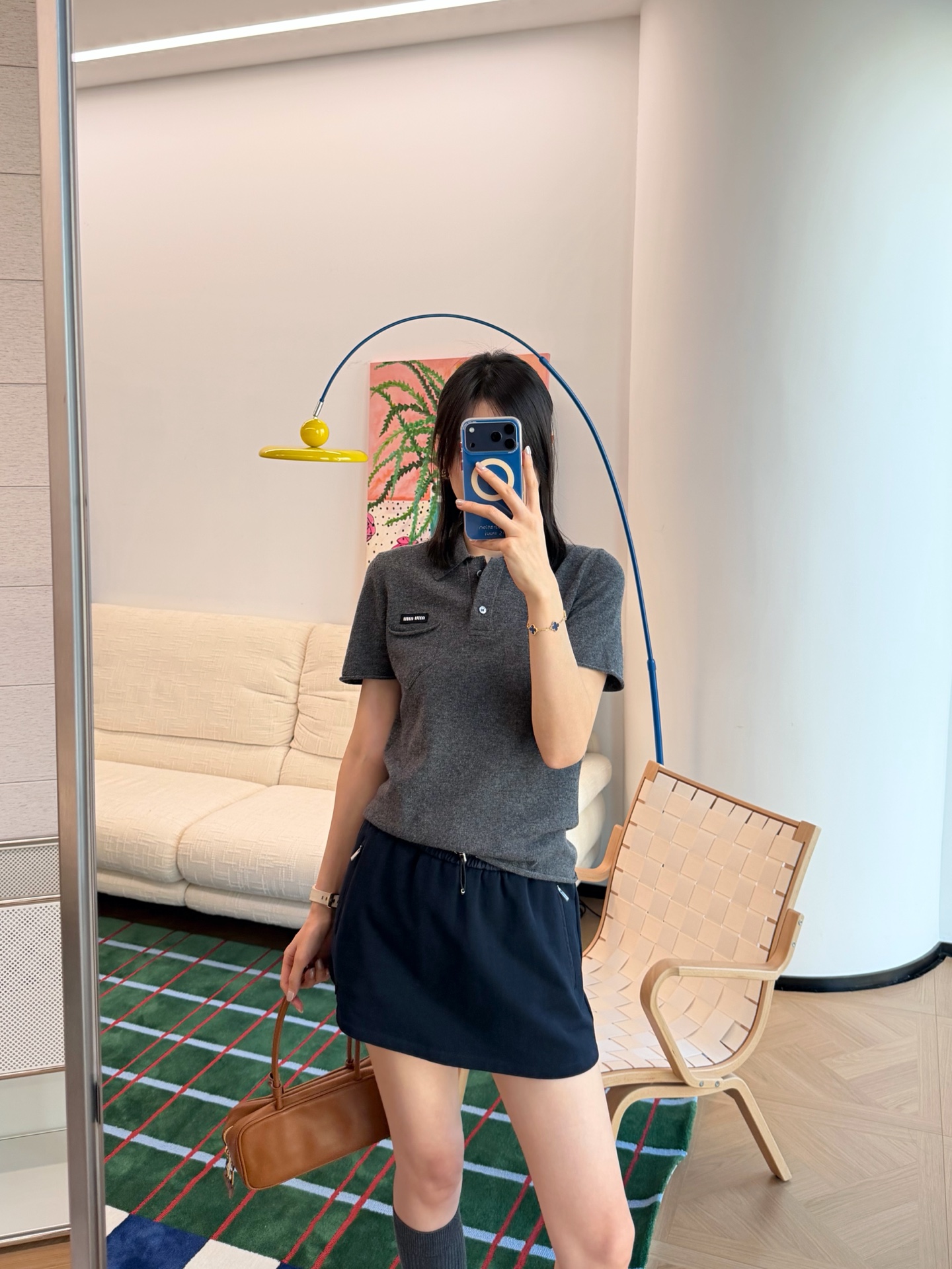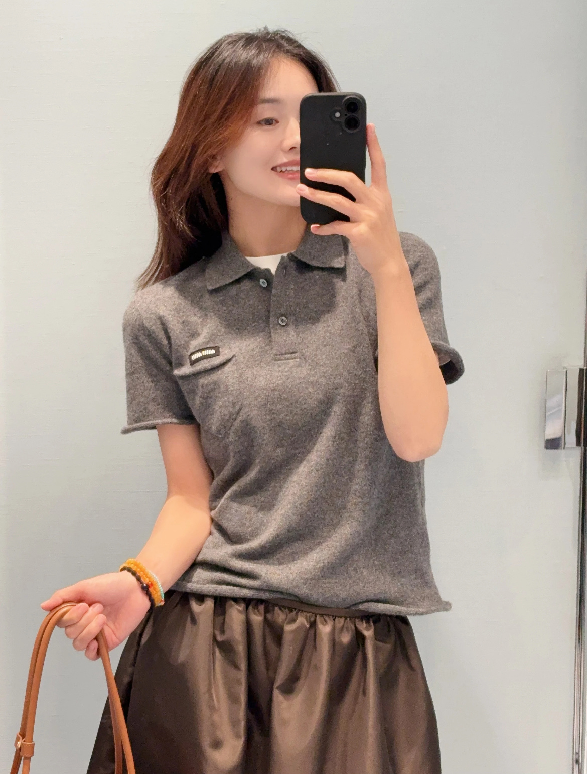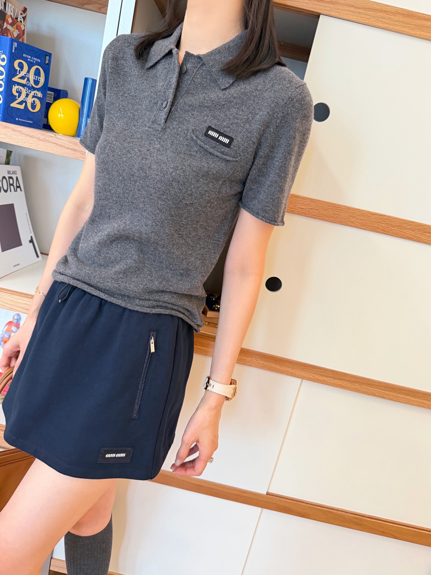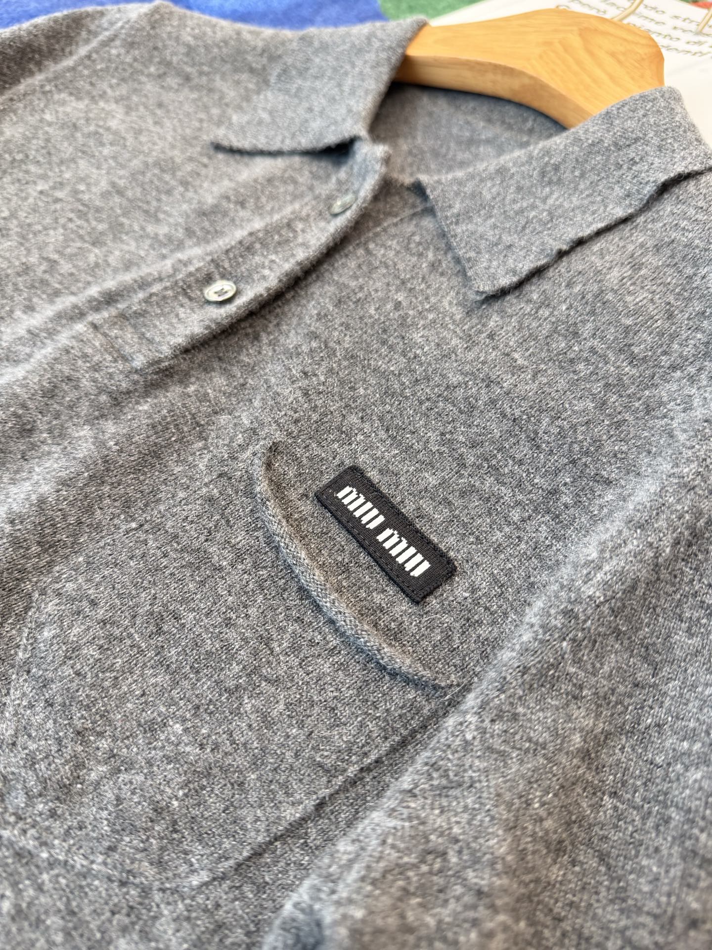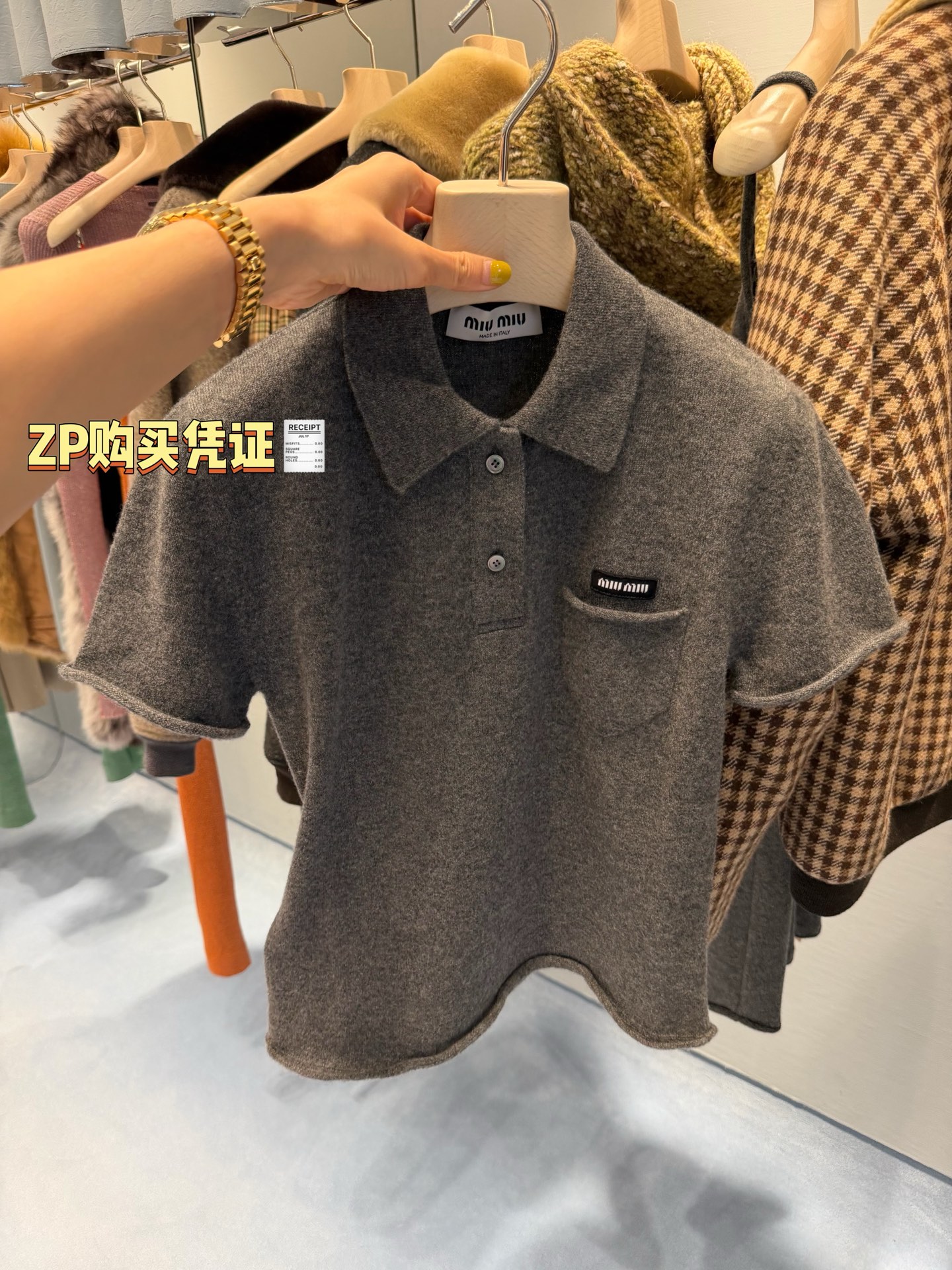 最新款 灰色针织polo衫 真的很百搭 妥妥的时髦精 简约的基调 单穿显瘦叠穿松弛