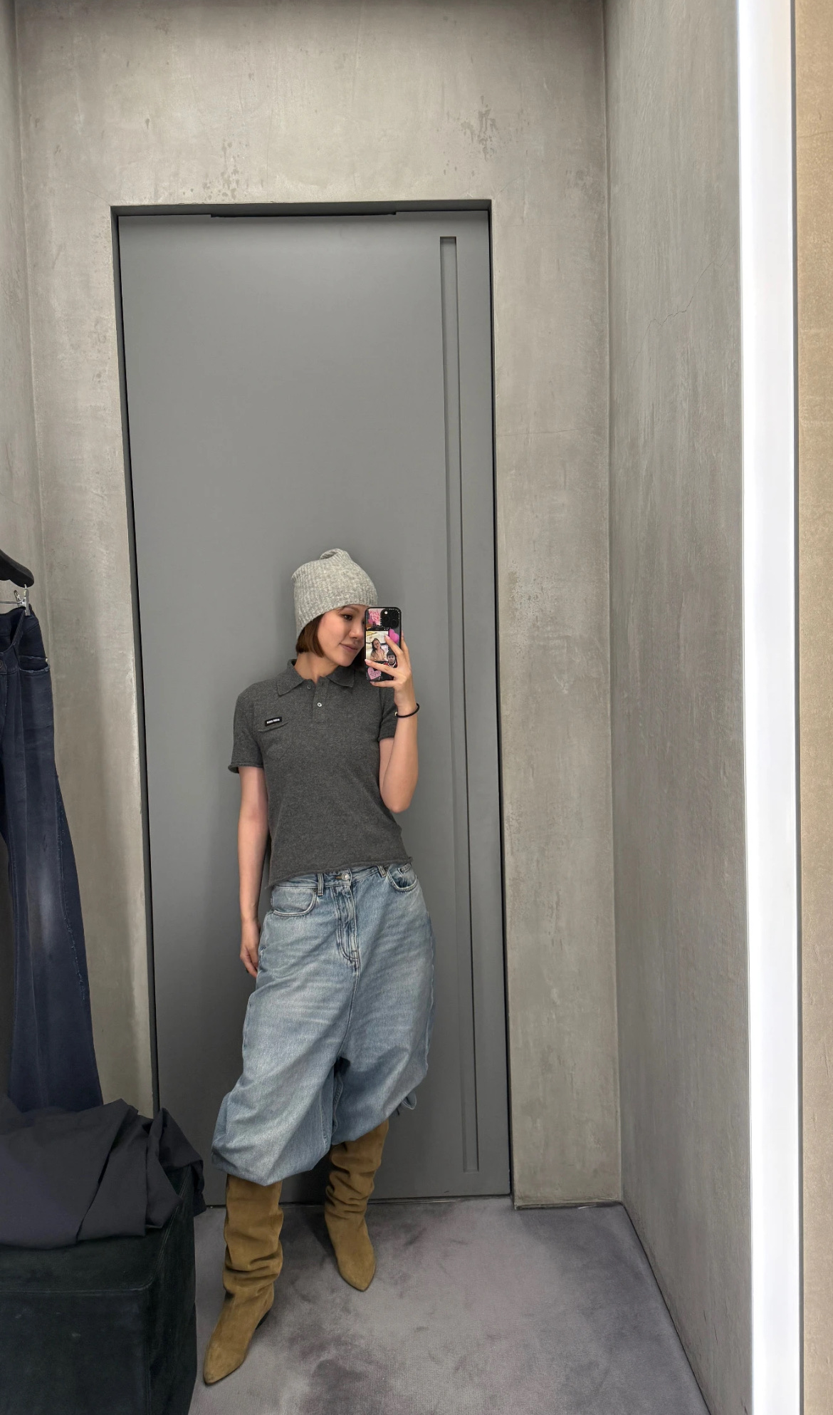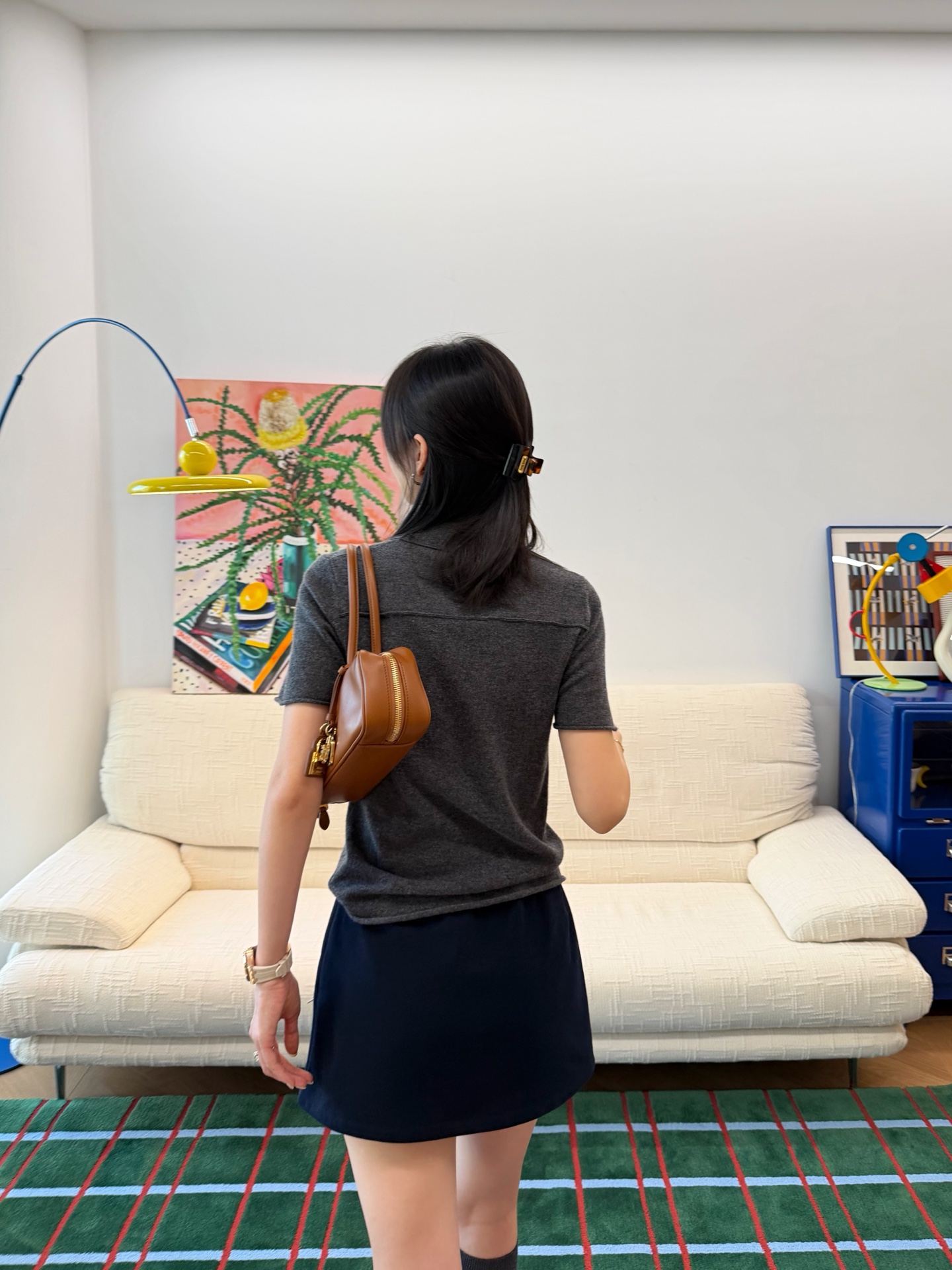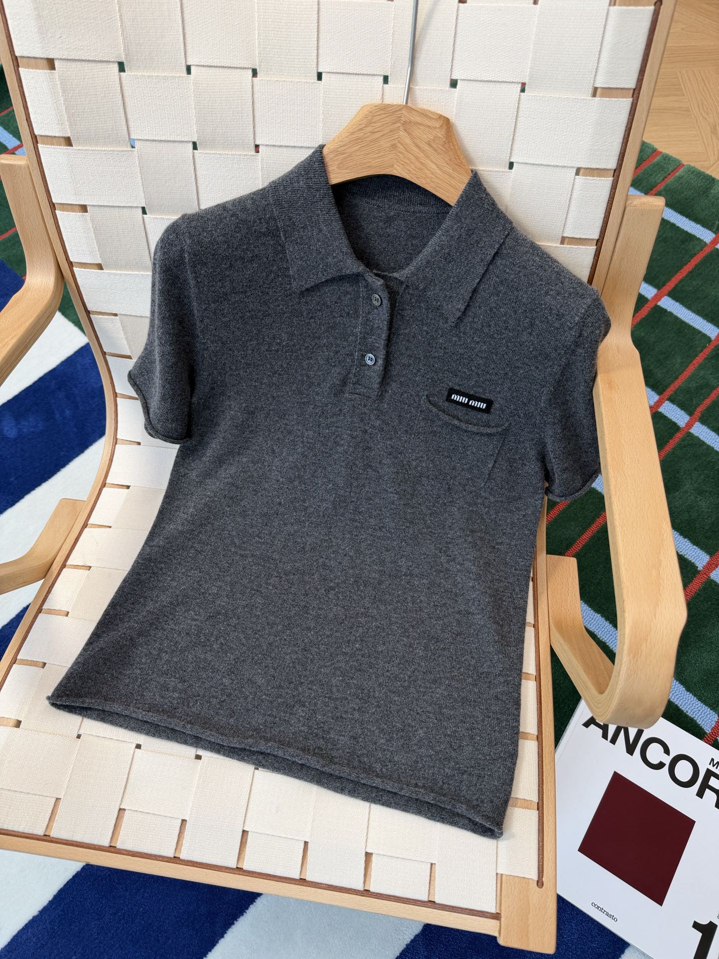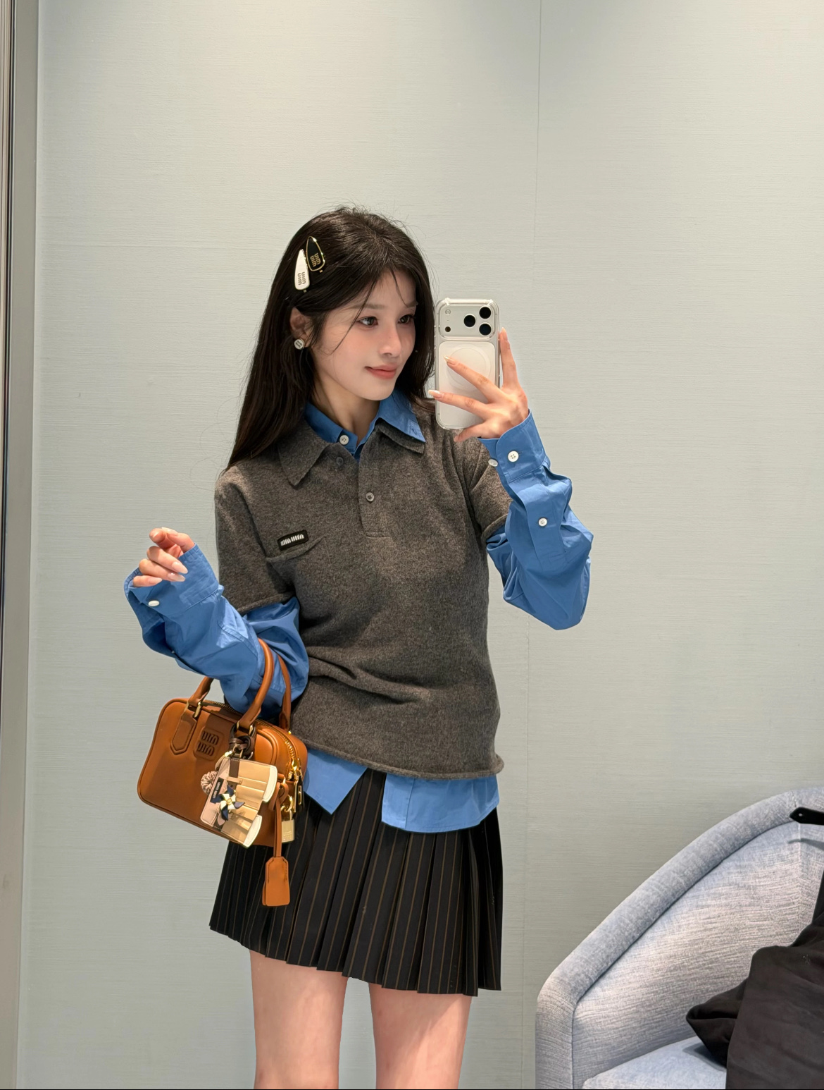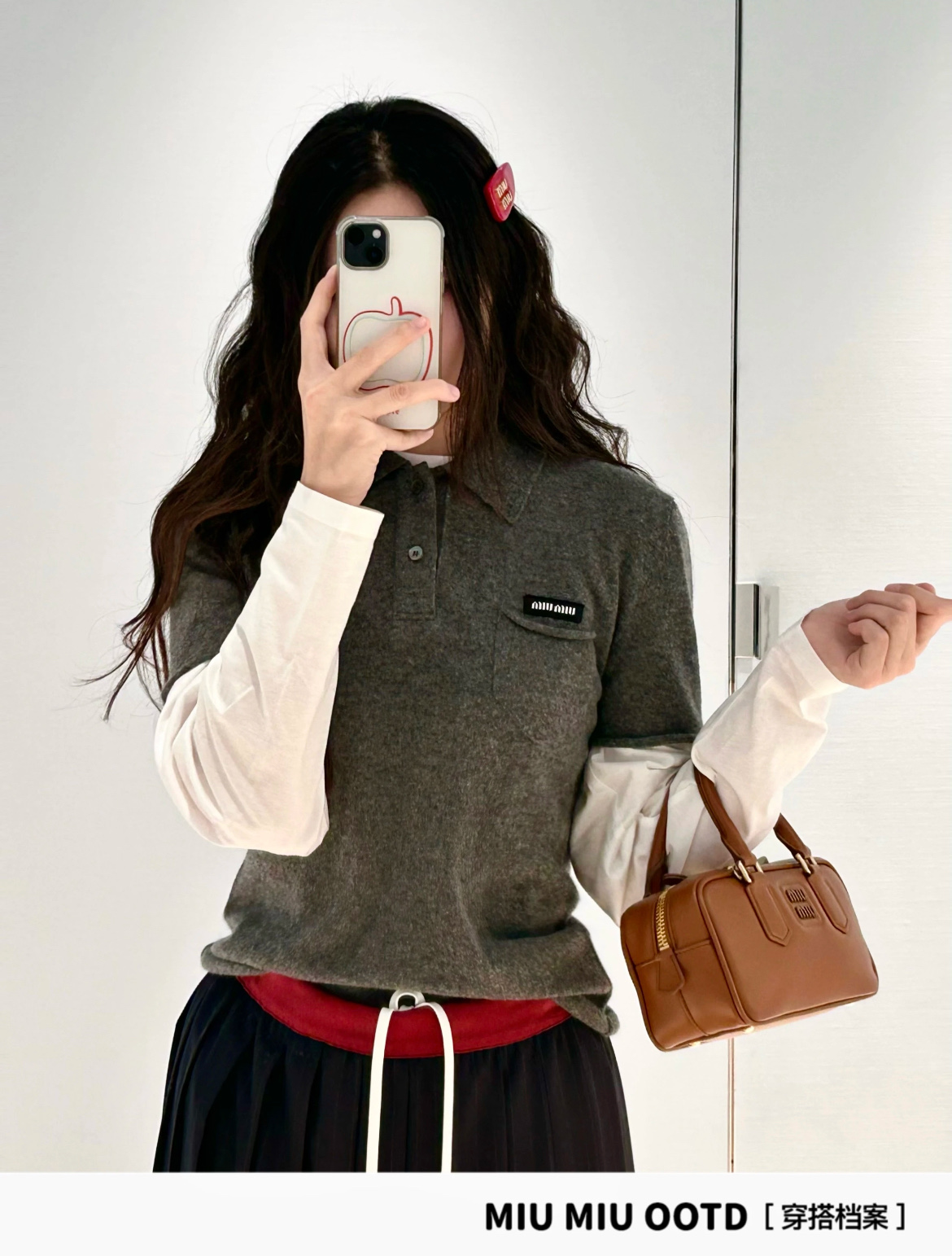 最新款 灰色针织polo衫 真的很百搭 妥妥的时髦精 简约的基调 单穿显瘦叠穿松弛
