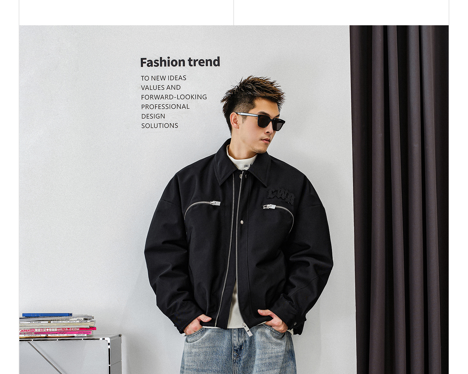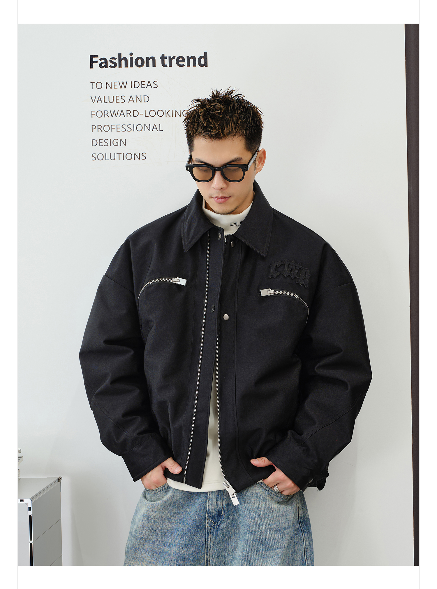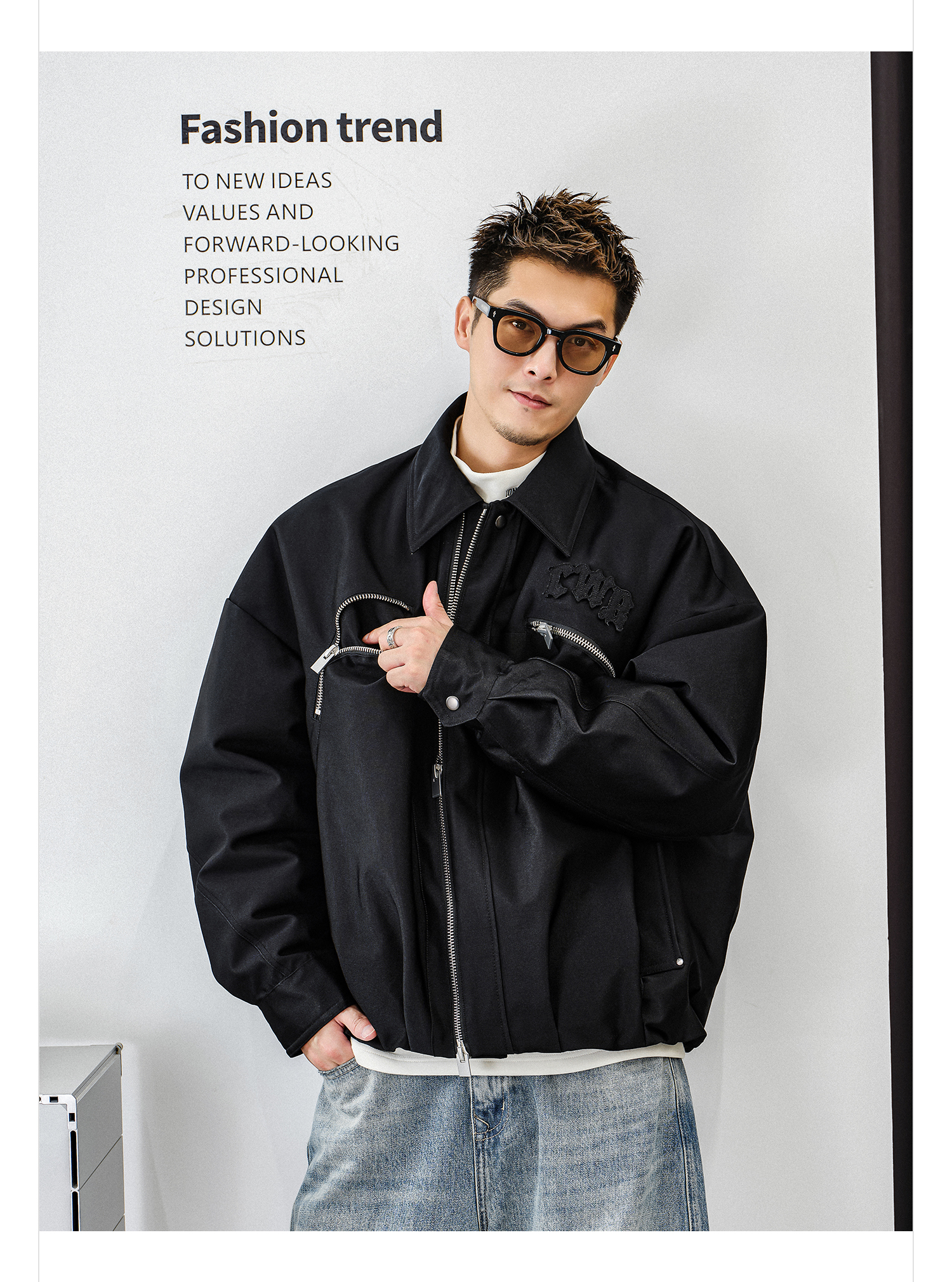 徐太浪【字母贴布 拉链口袋】翻领羽绒服男冬季男装防寒黑色外套