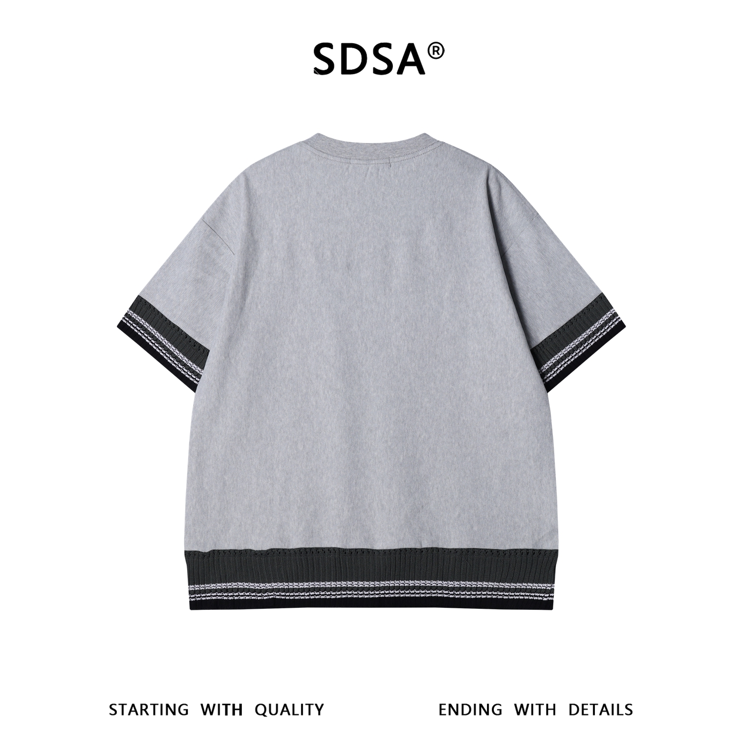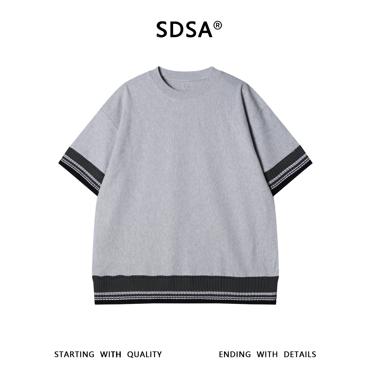 SDSA男装2026新款高贵轻潮牌拼接针织圆领短袖T恤百搭宽松上衣