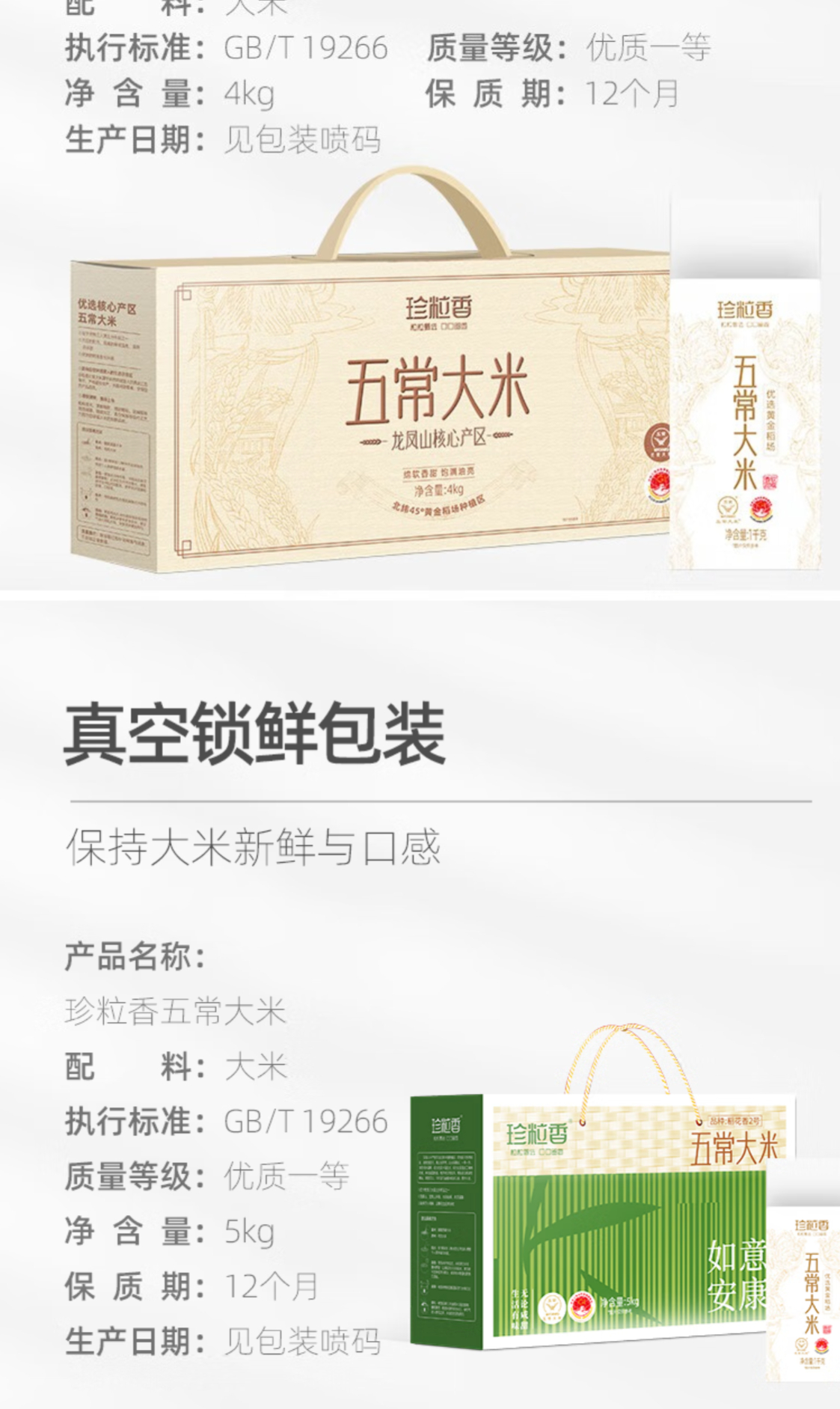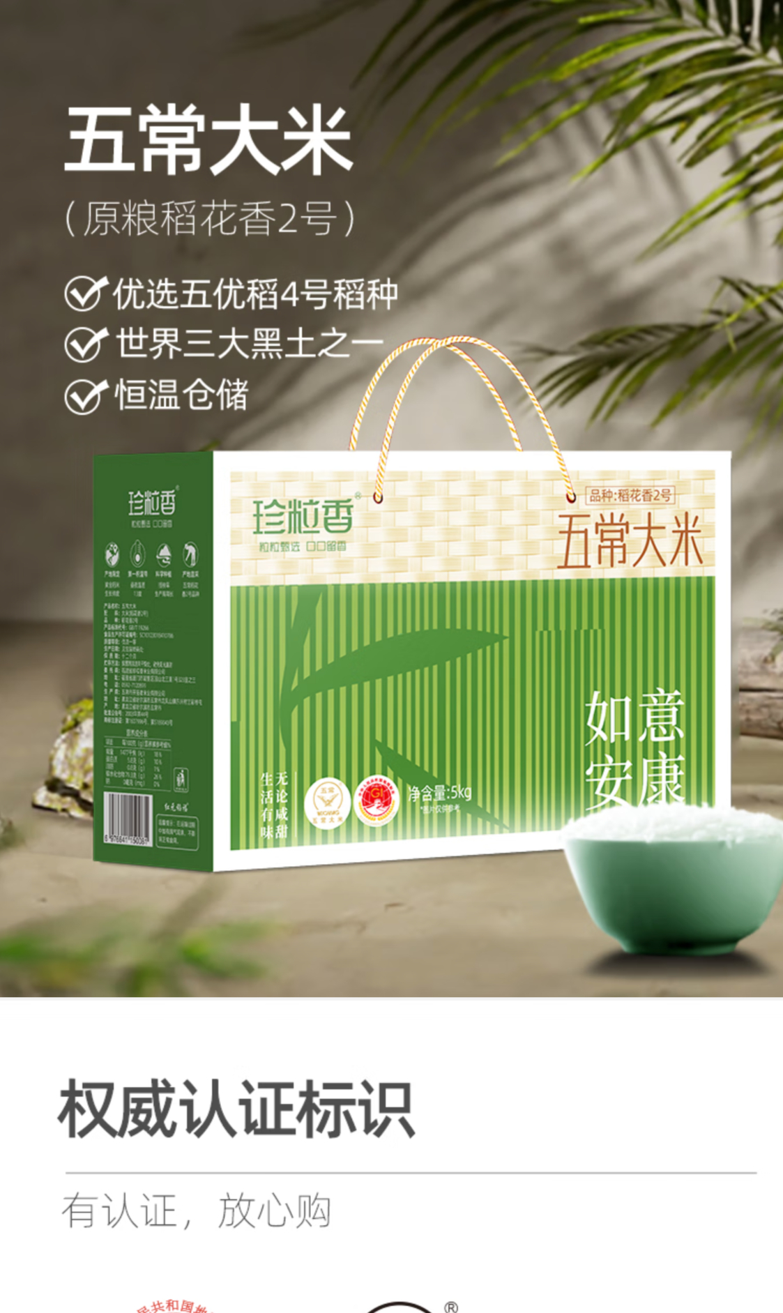 珍粒香五常大米原粮2号 端午如意安康经典礼盒装 5公斤 稻花香2号 - 珍粒香