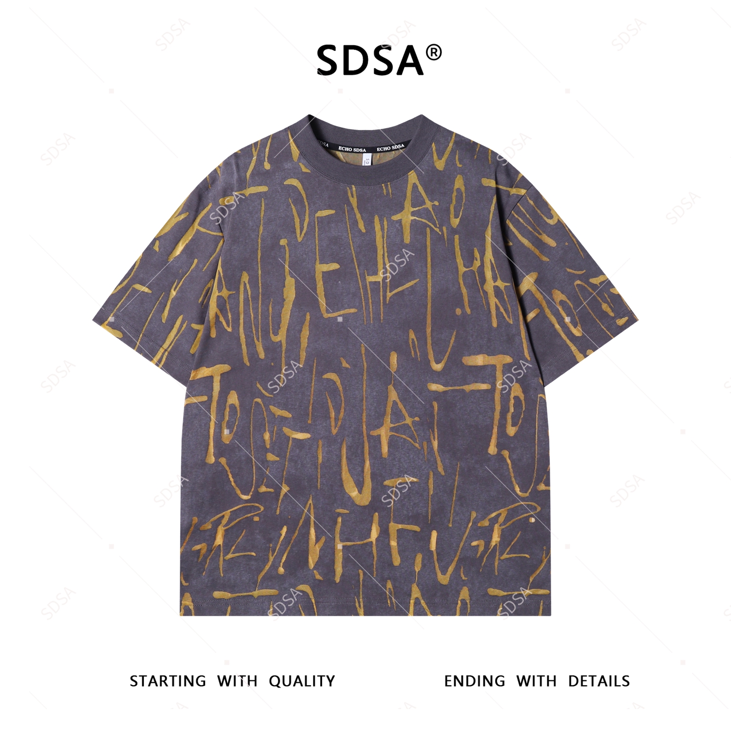T4216SDSA夏季高级感新款男士撞色割破设计圆领短袖T恤重磅圆领上衣潮