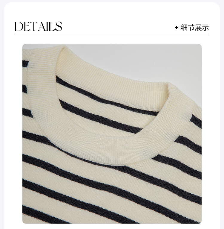 ROMI STUDIO复古做旧 简约百搭针织黑白条纹修身针织短袖 M3392