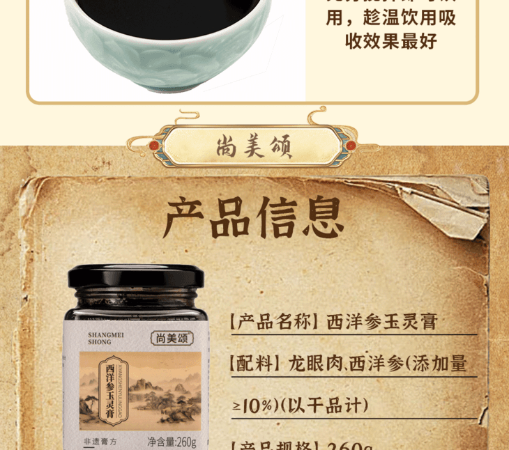 尚美颂西洋参膏玉灵膏桂圆蒸桂膏桂圆龙眼肉气血双养养生膏非遗膏