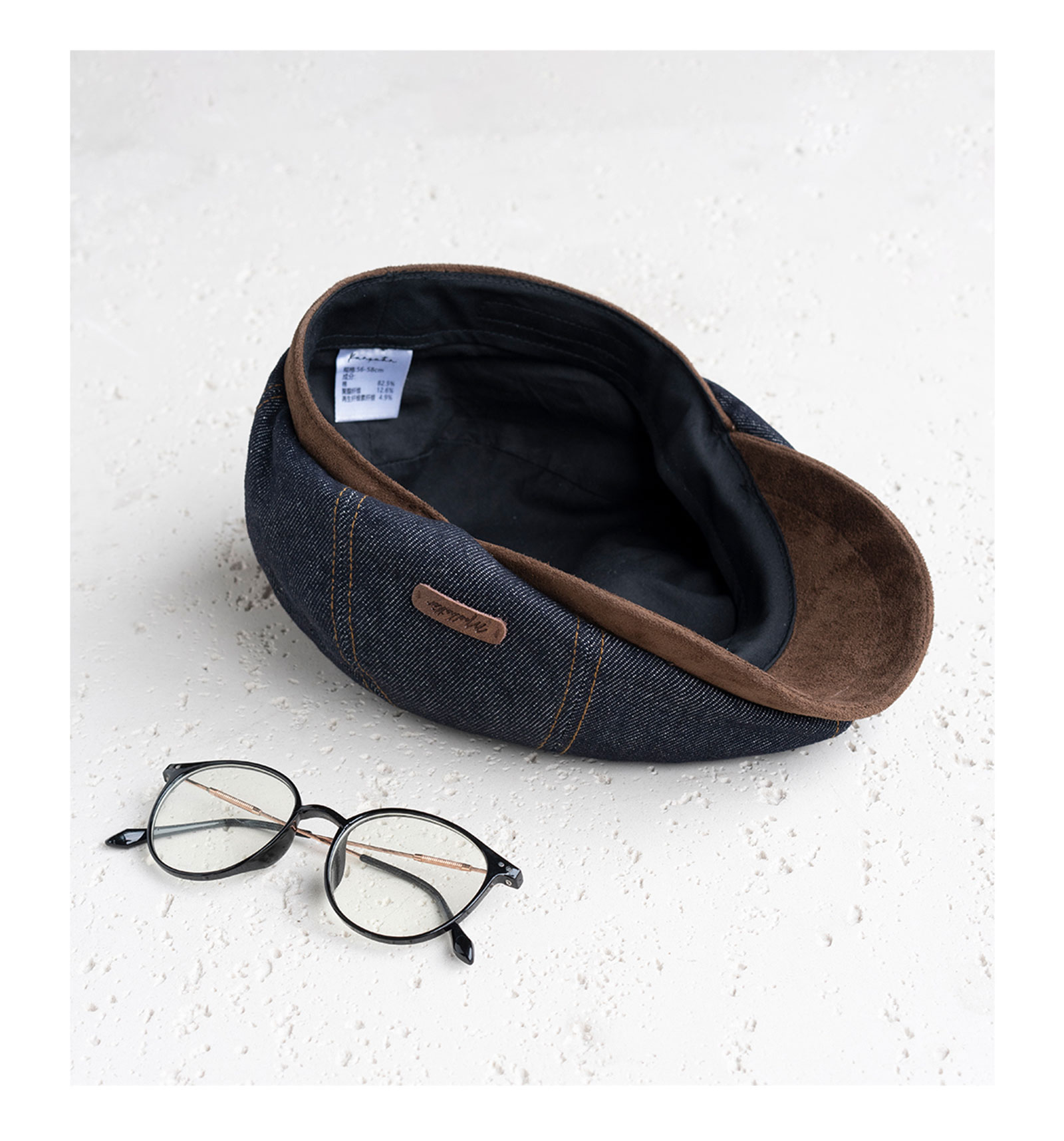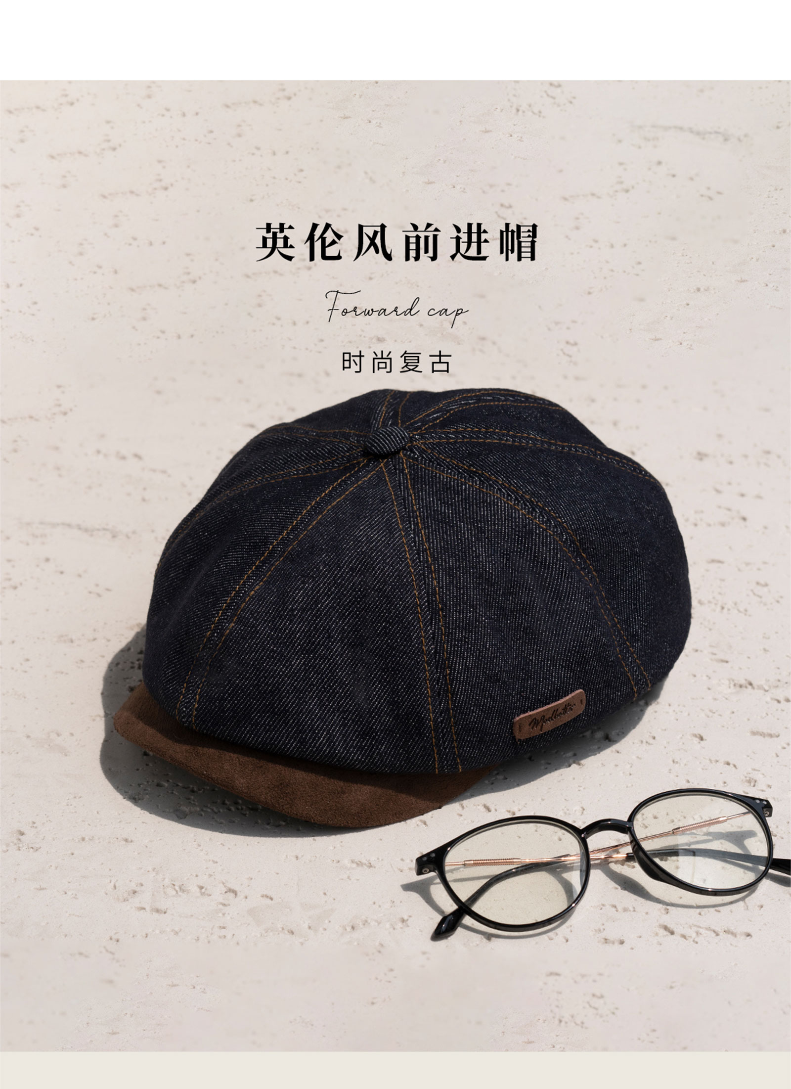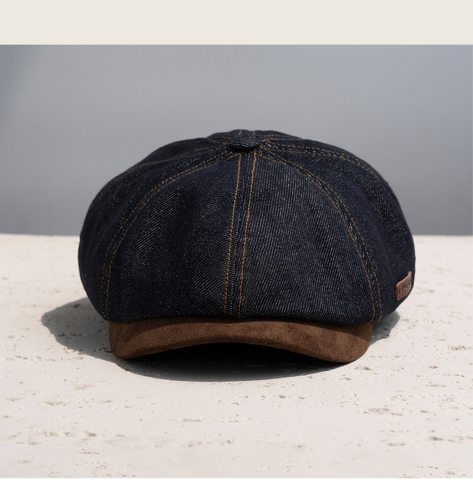疯帽子 25年秋新报童帽牛仔前进帽子 深蓝美式复古八角麂皮鸭舌帽男