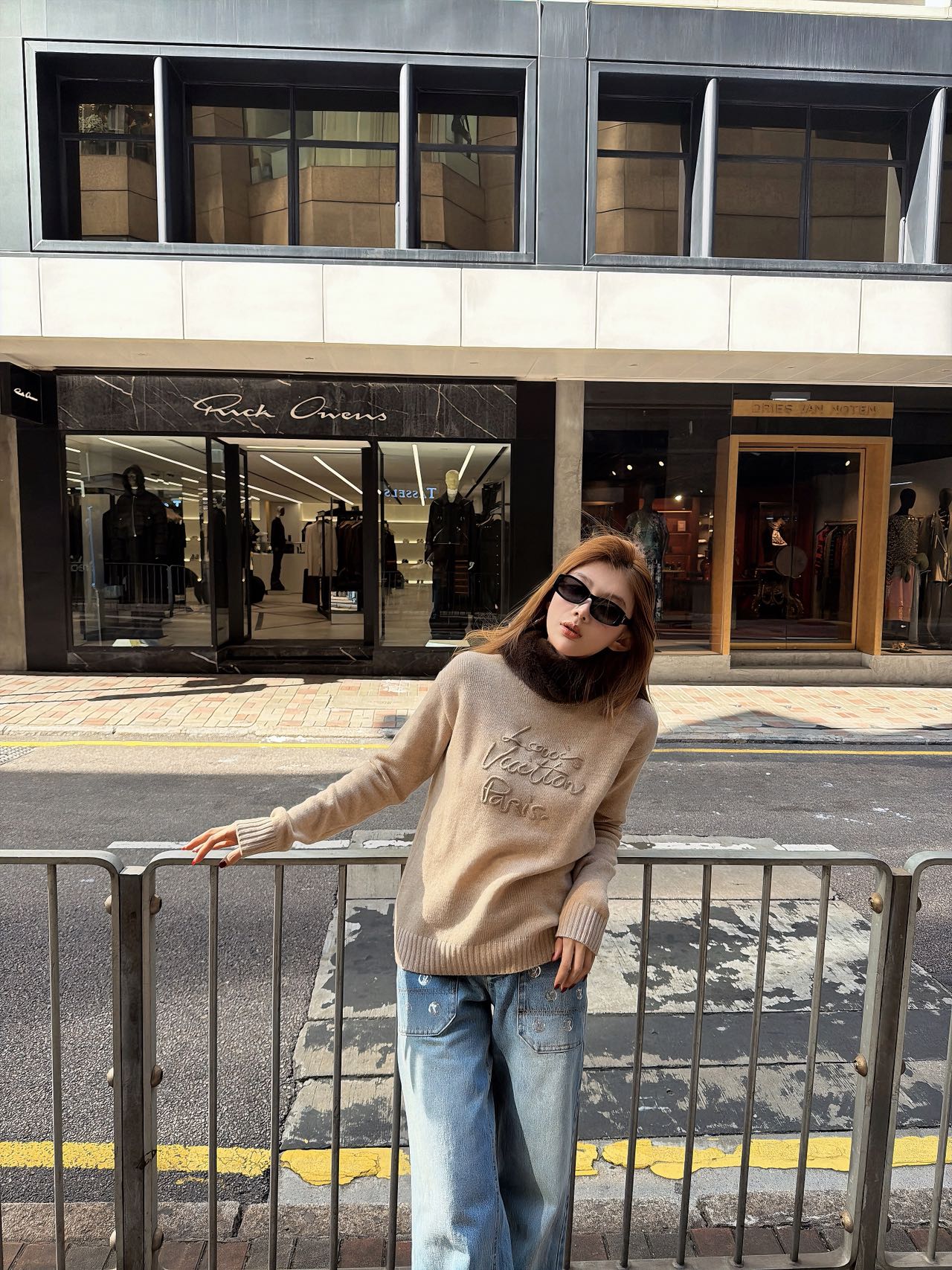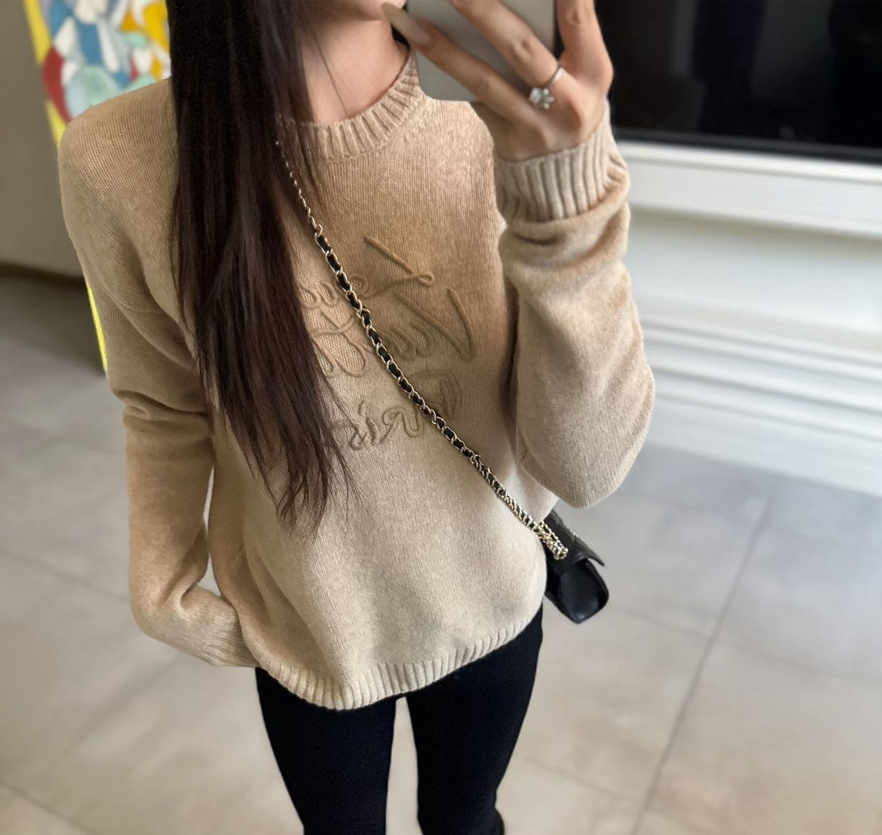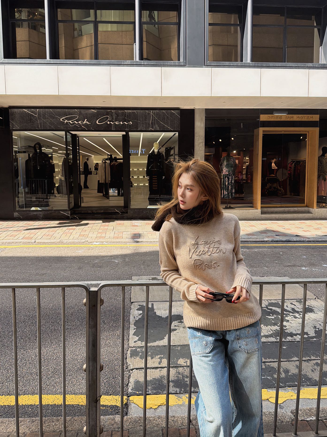 被小红书、抖音列为“LV入门级针织衫”,用户反馈其宽松版型遮肉显瘦,浅卡其色为百搭色,可搭配牛仔、西装裤打造休闲/通勤造型。