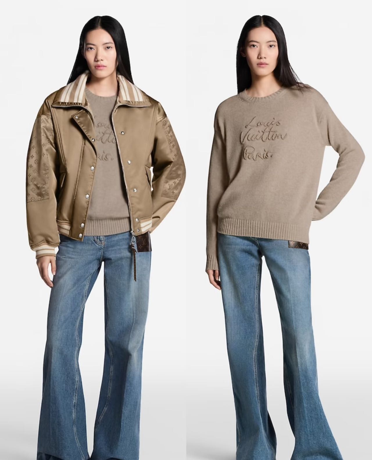 搭配LV SS26滑雪系列牛仔长裤为官方推荐穿搭组合,浮雕Logo与牛仔的亮片元素形成质感对比,是品牌2026春夏主推的搭配公式。