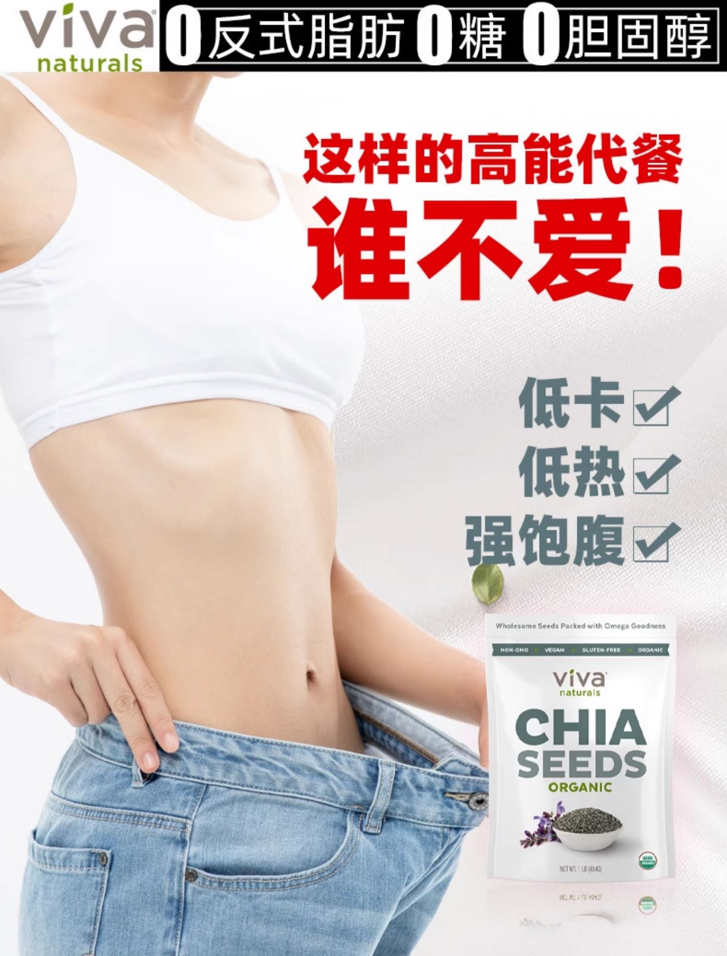 Viva美国原装进口天然有机墨西哥奇亚籽chia即食代餐饱腹冲饮454g