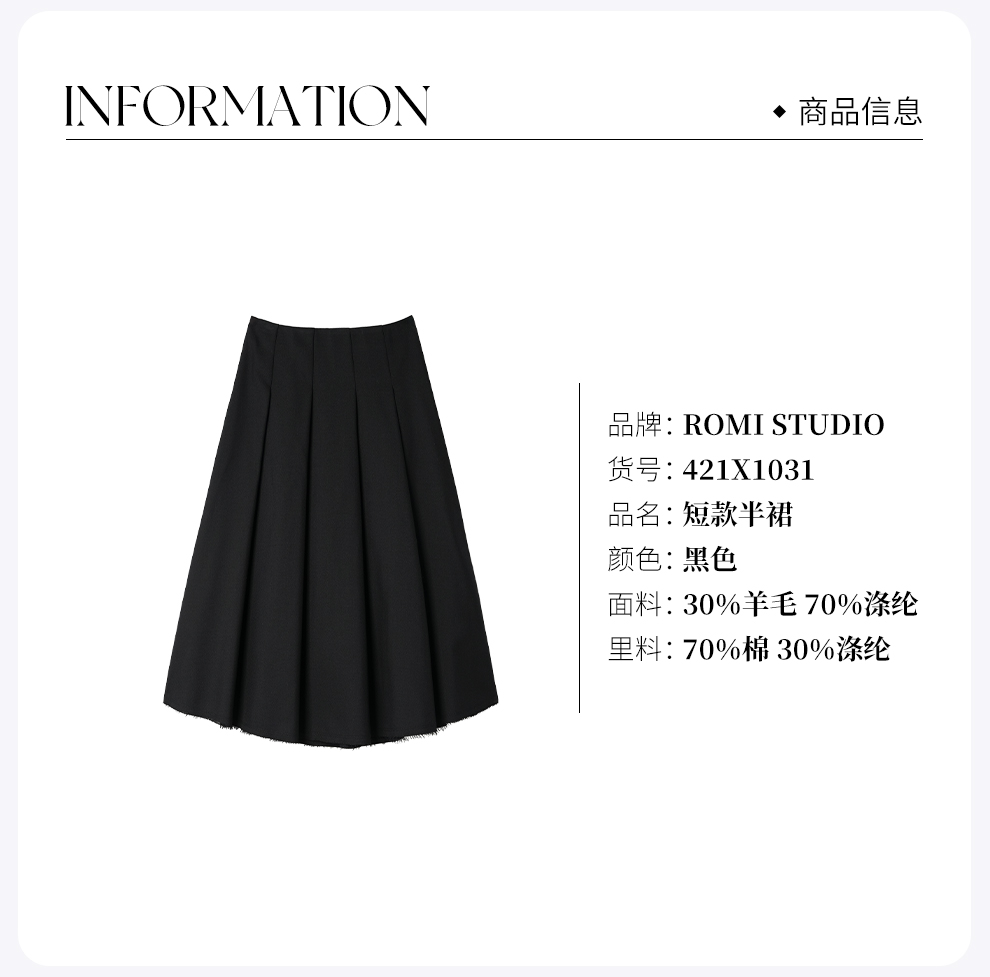 ROMI STUDIO“法式优雅”澳洲进口美利奴羊毛斜纹A字伞半裙421X1031