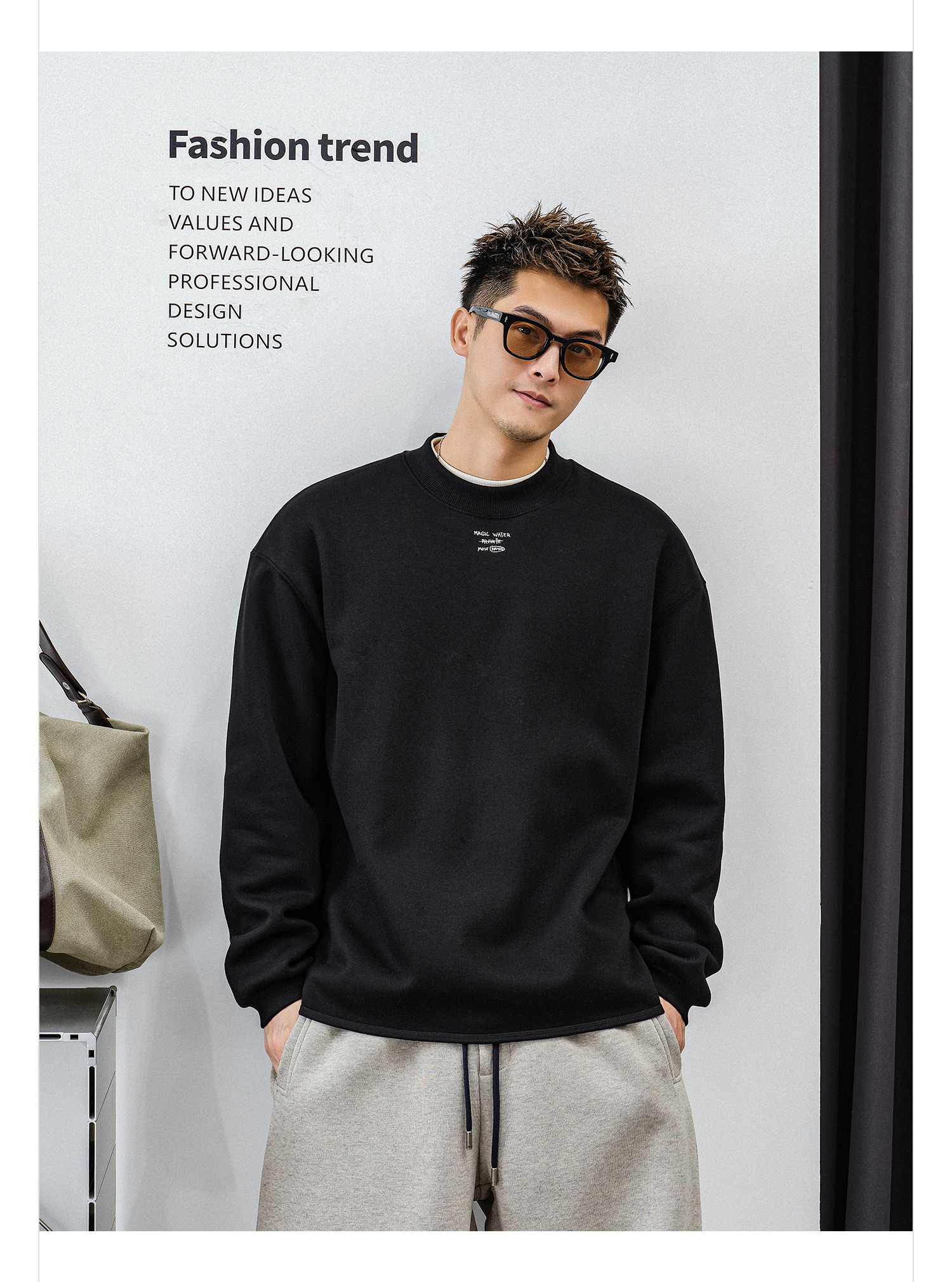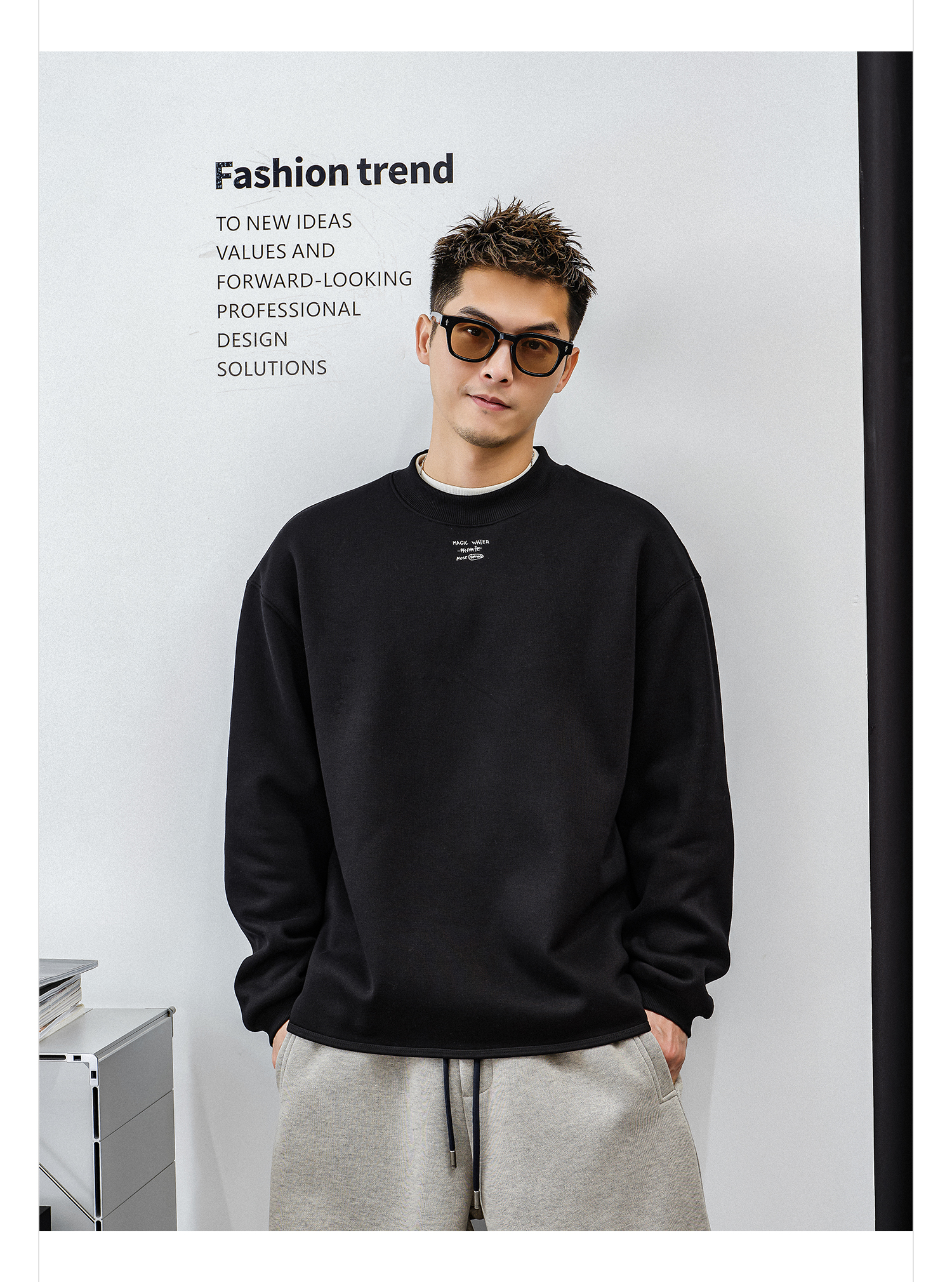 徐太浪【简约字母 通勤休闲】加绒卫衣男秋冬2025新款内搭打底衫