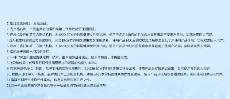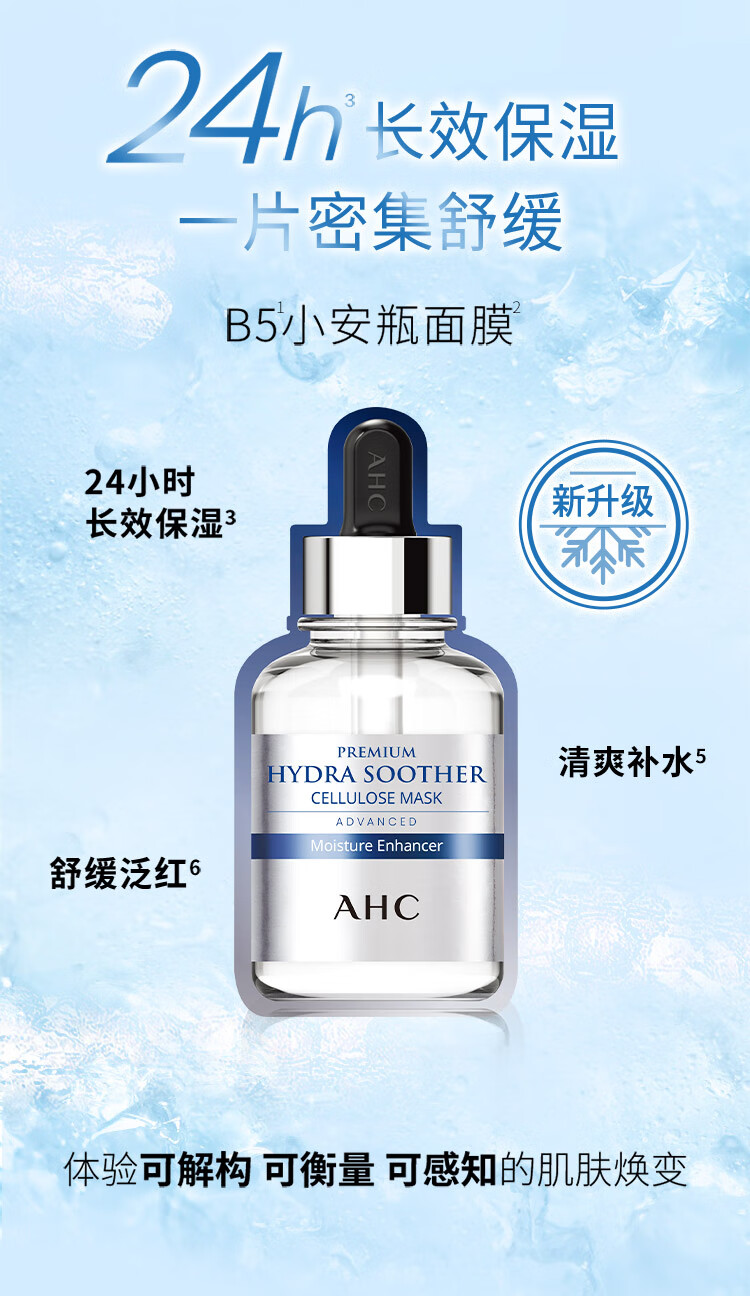 【保税仓】AHC三代高浓度B5纤维素补水面膜27ml*5片/盒
