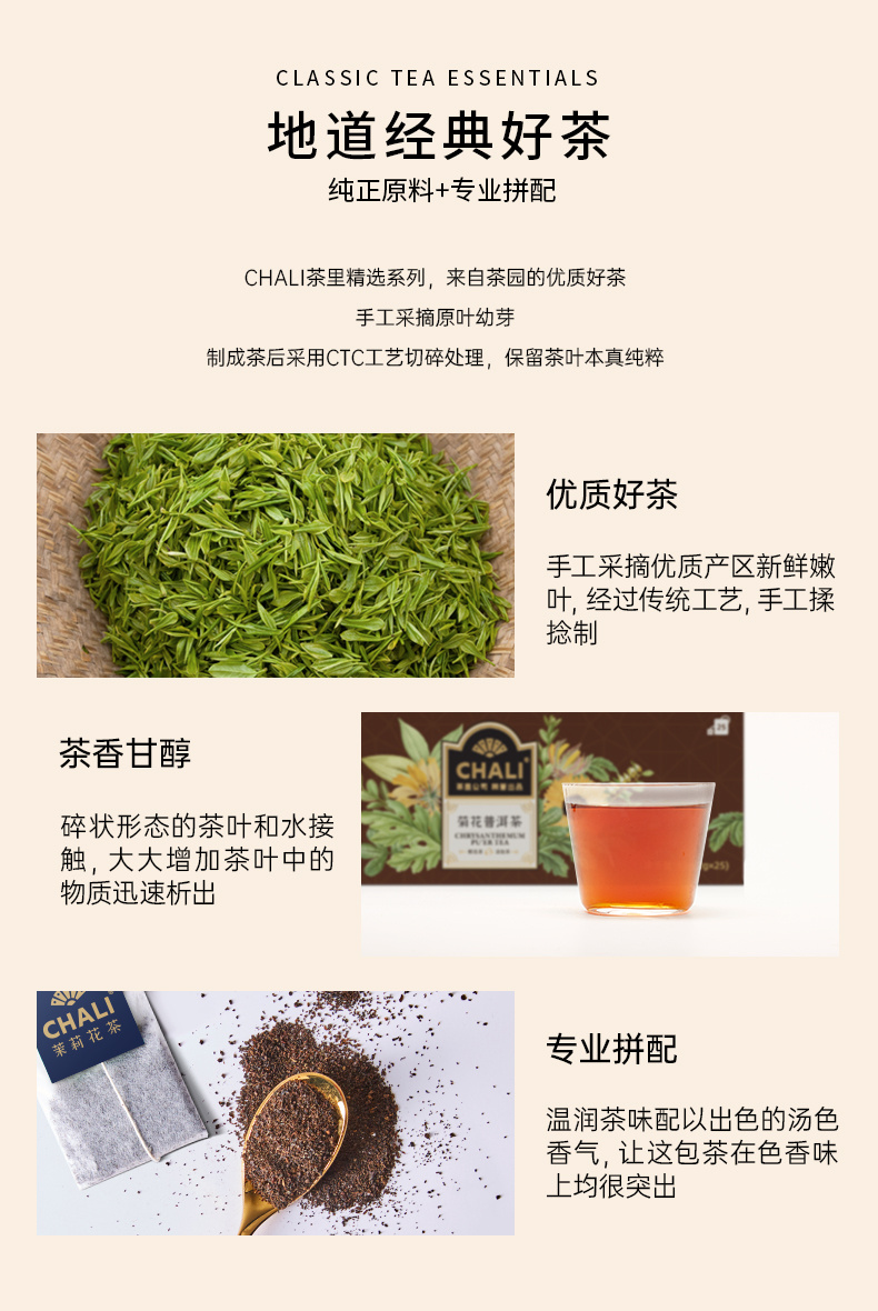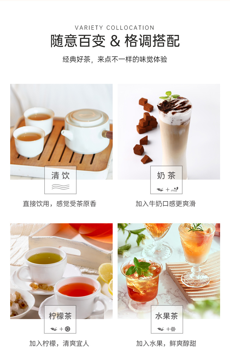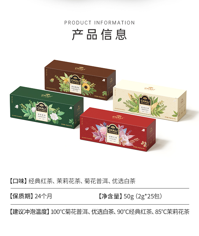 【口味】:经典红茶、茉莉花茶、菊花普洱、优选白茶