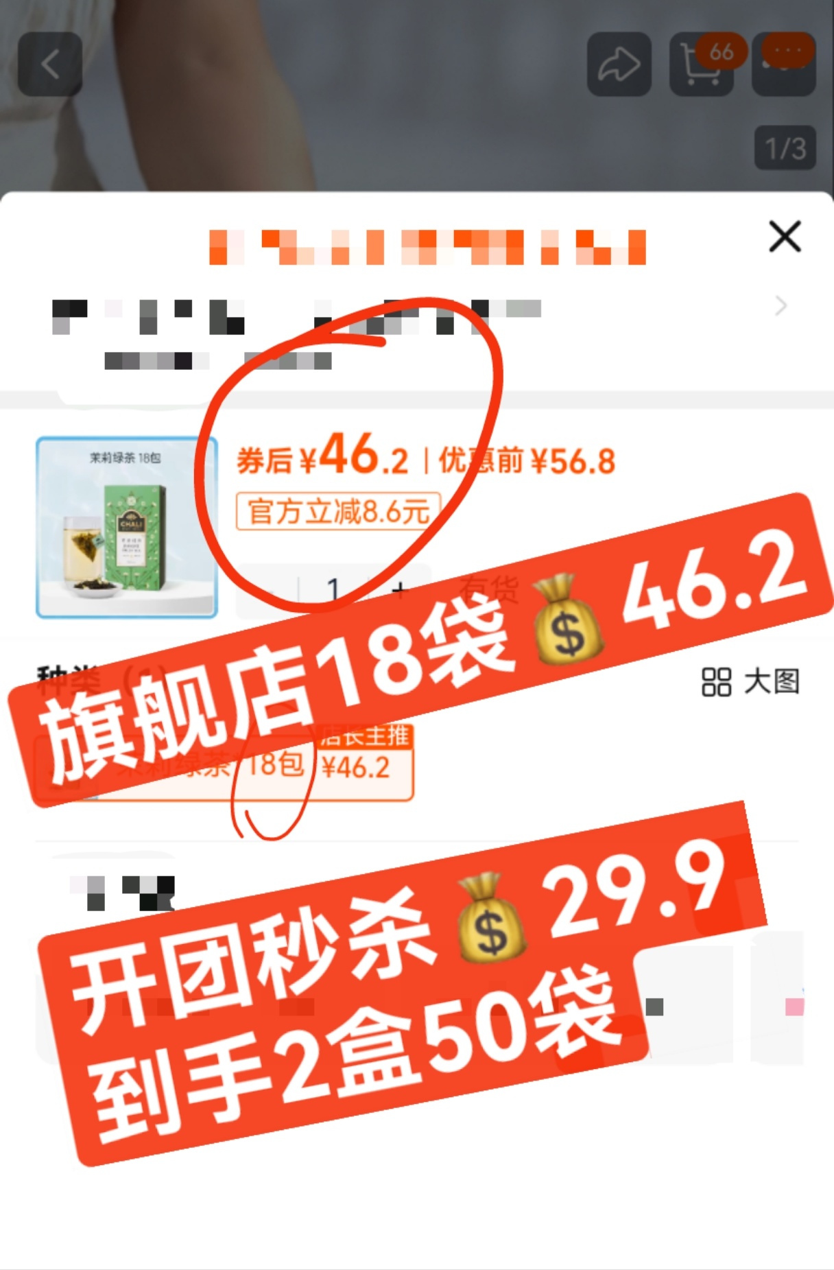 规格八:茉莉花茶50g (2g*25包)*1盒+茉莉花茶50g (2g*25包)*1盒