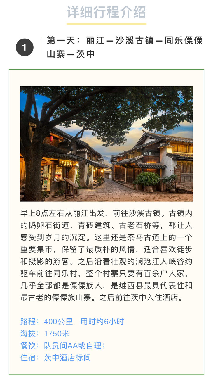 行程第一天,早上【丽江古城南门集合】,一般集合时间为早上8点左右。