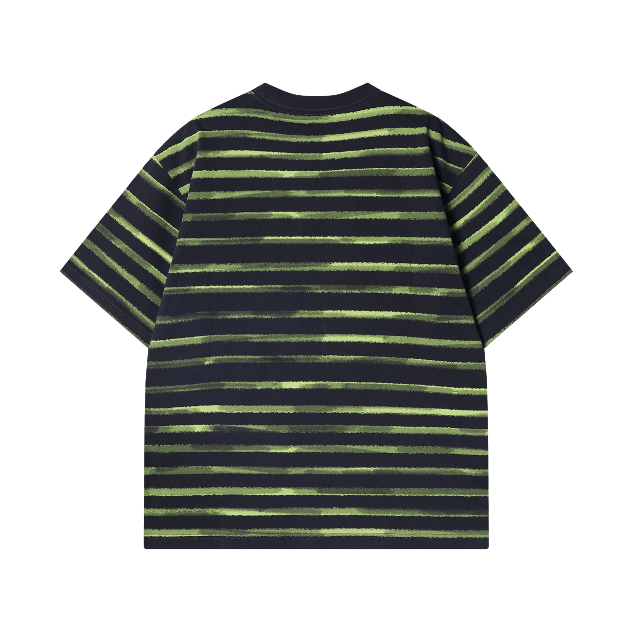 T3242夏季高级感新款港风撞色条纹短袖T恤痞帅百搭复古简约套头上衣