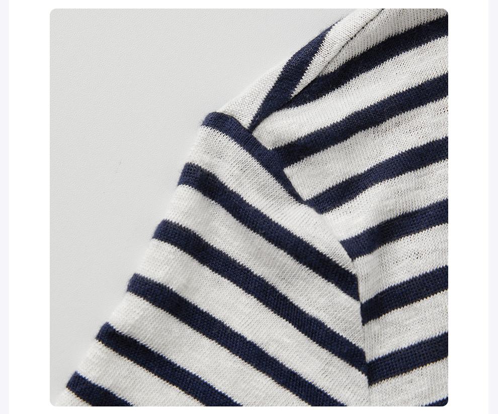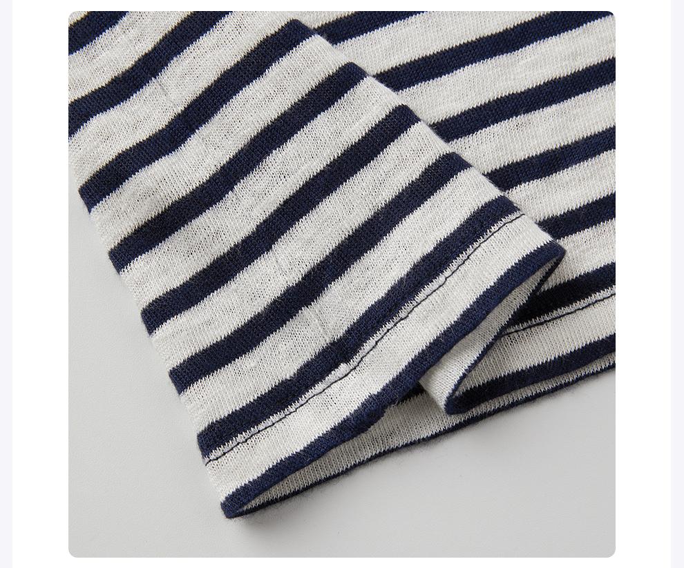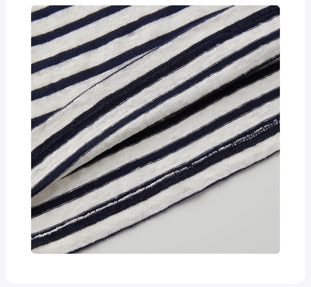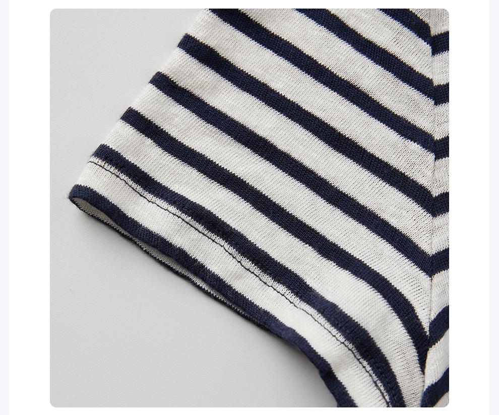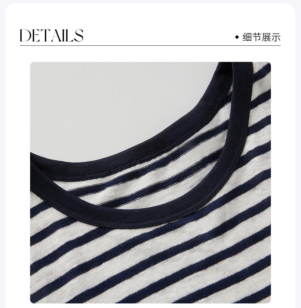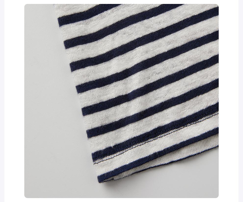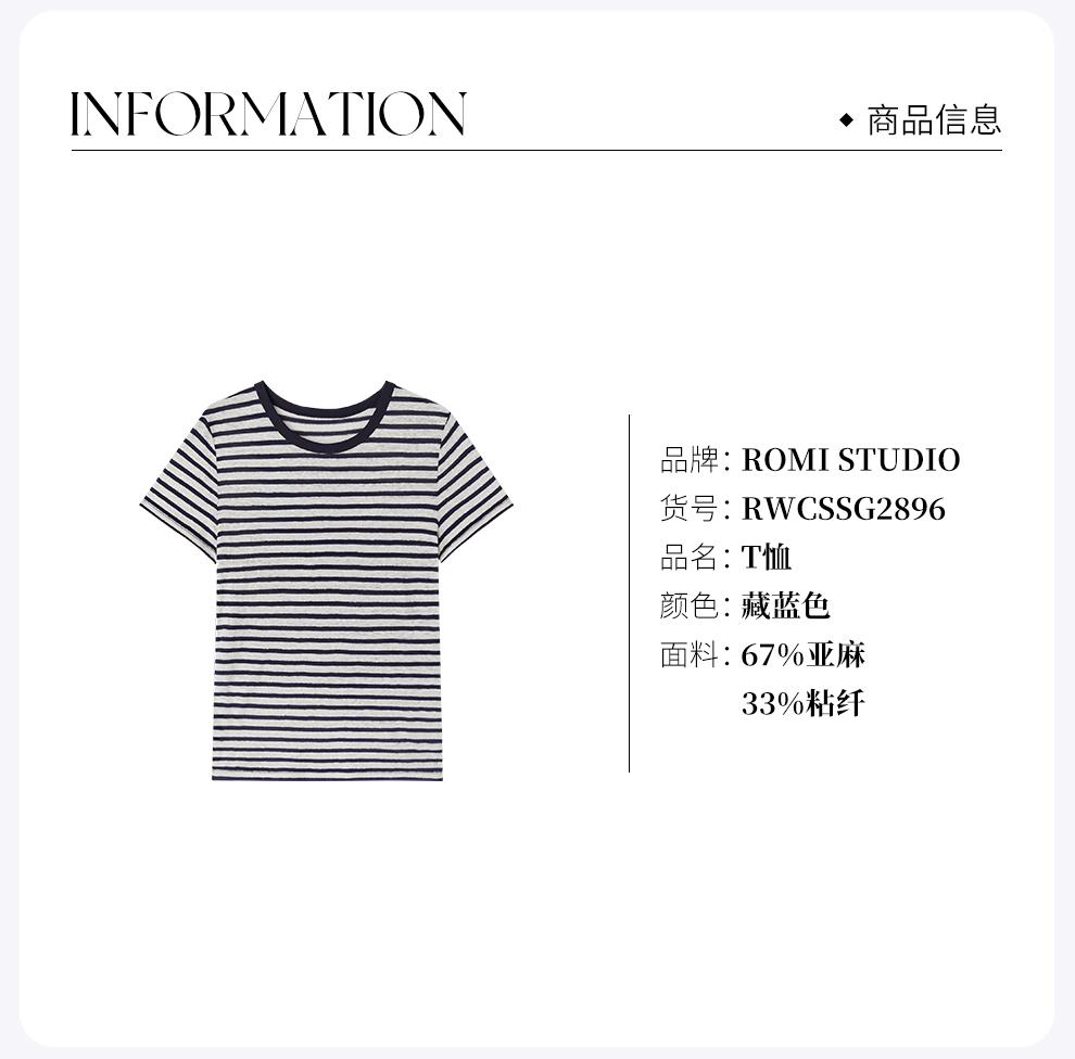 ROMI STUDIO经典复古进口亚麻混纺 蓝白条纹短袖T恤 RWCSSG2896(现货)