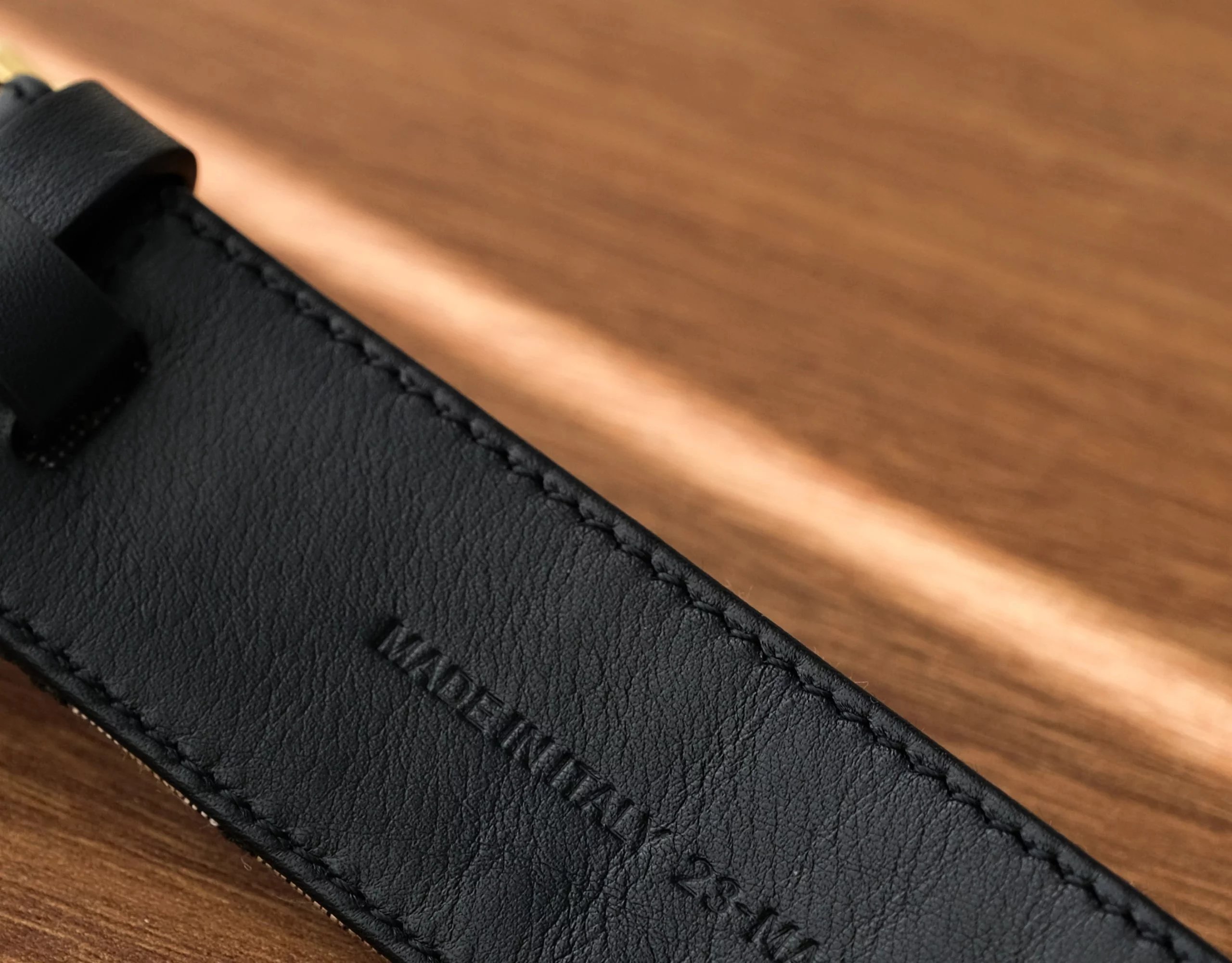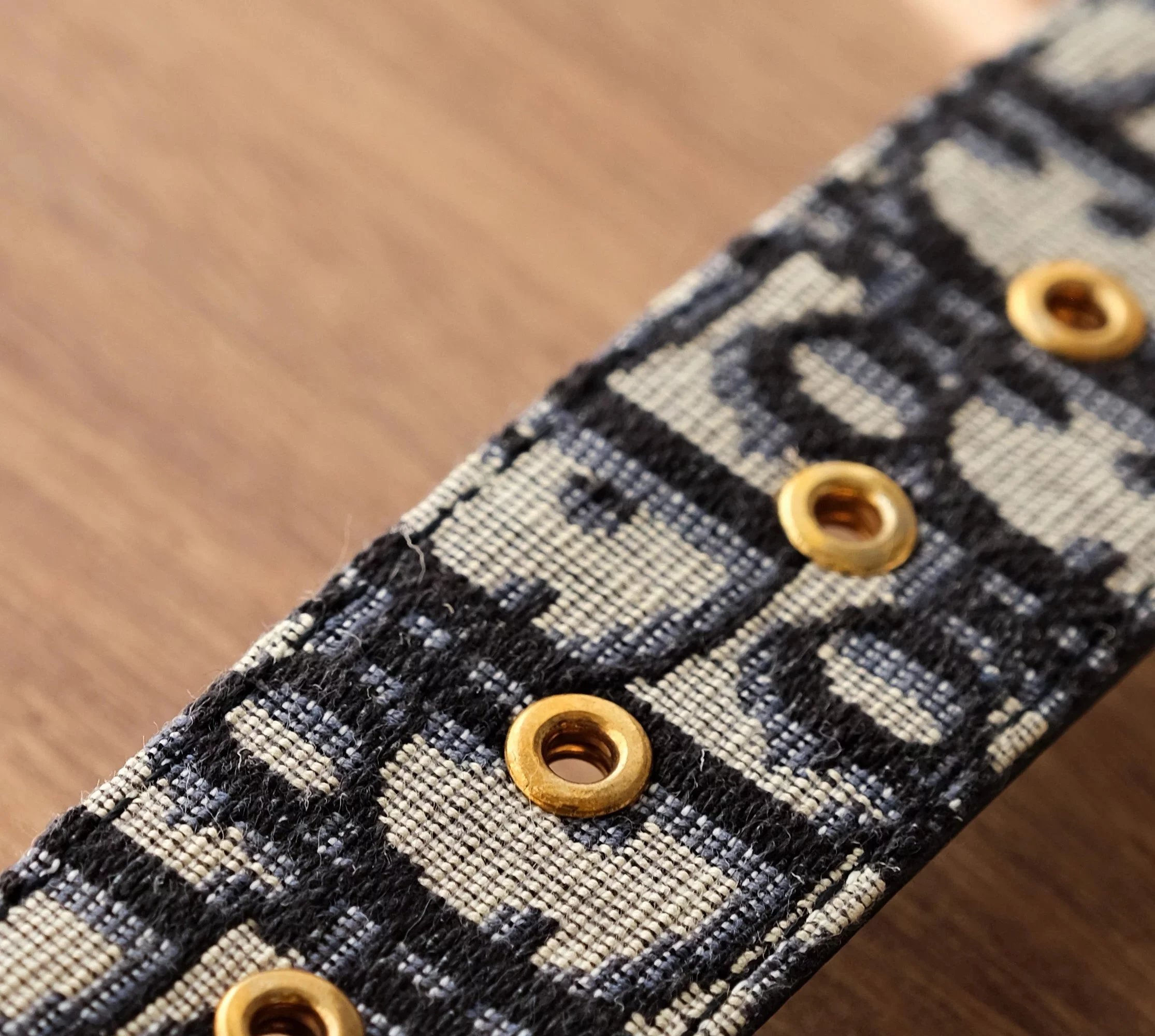采用意大利牛皮搭配花纹纺织布工艺,完美结合今年最流行的纺布1og0图案裙带腰饰,时尚百搭,宽度 3.5cm