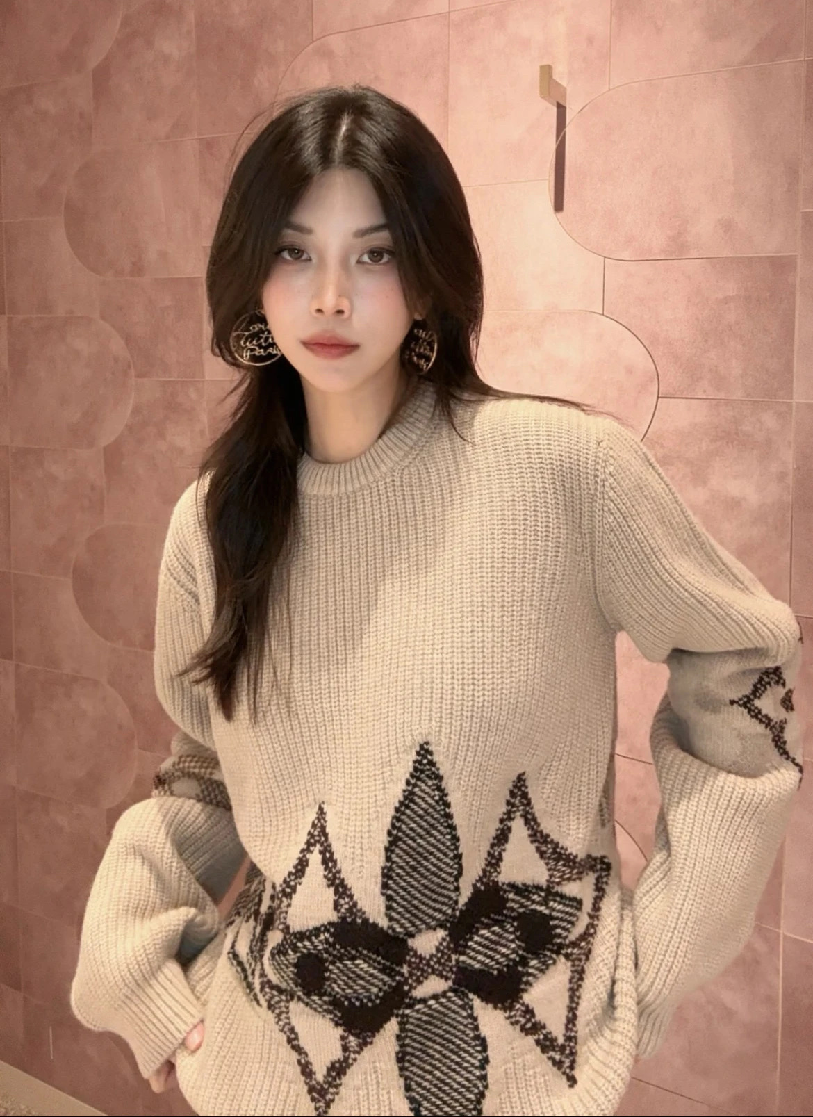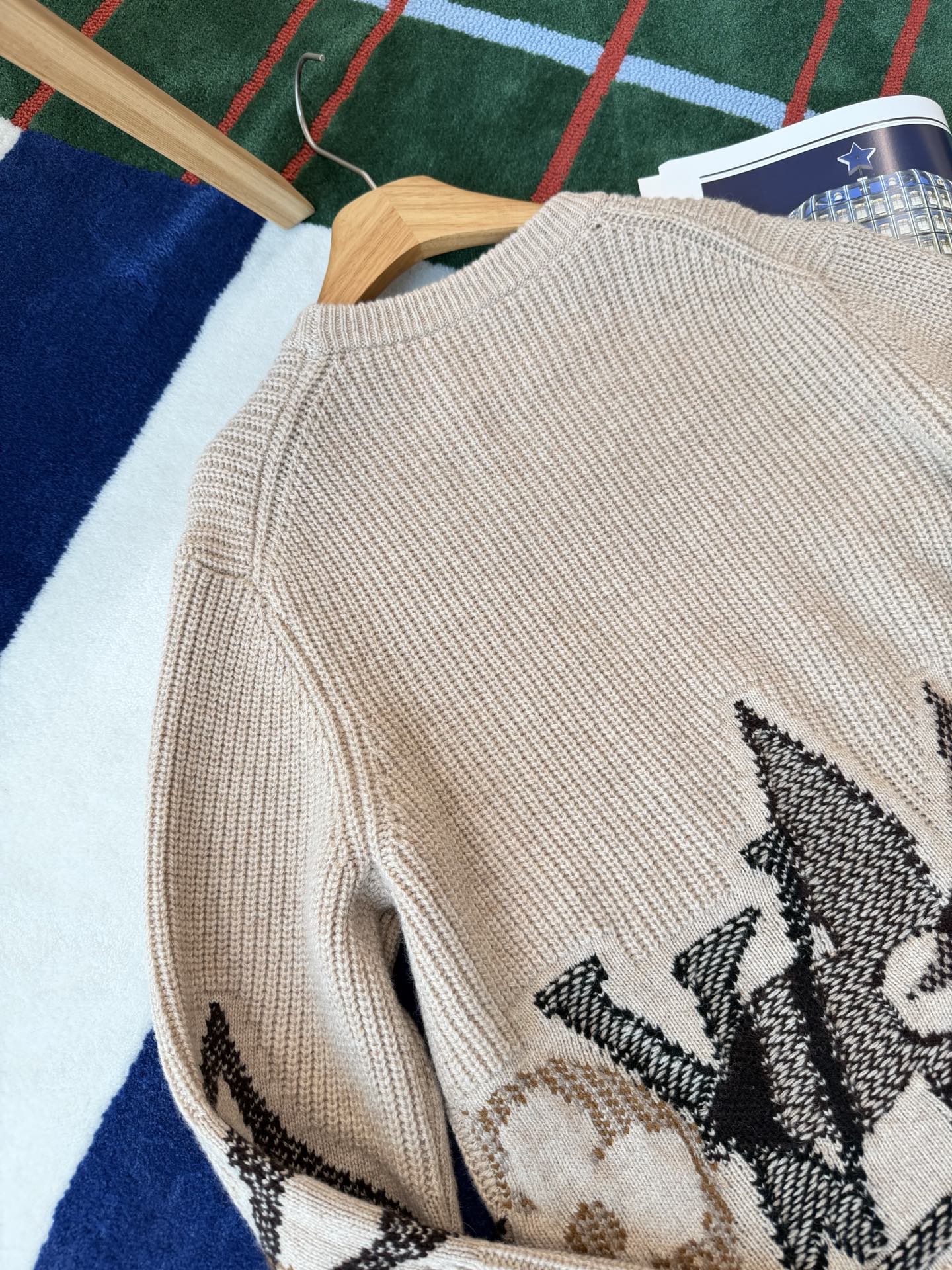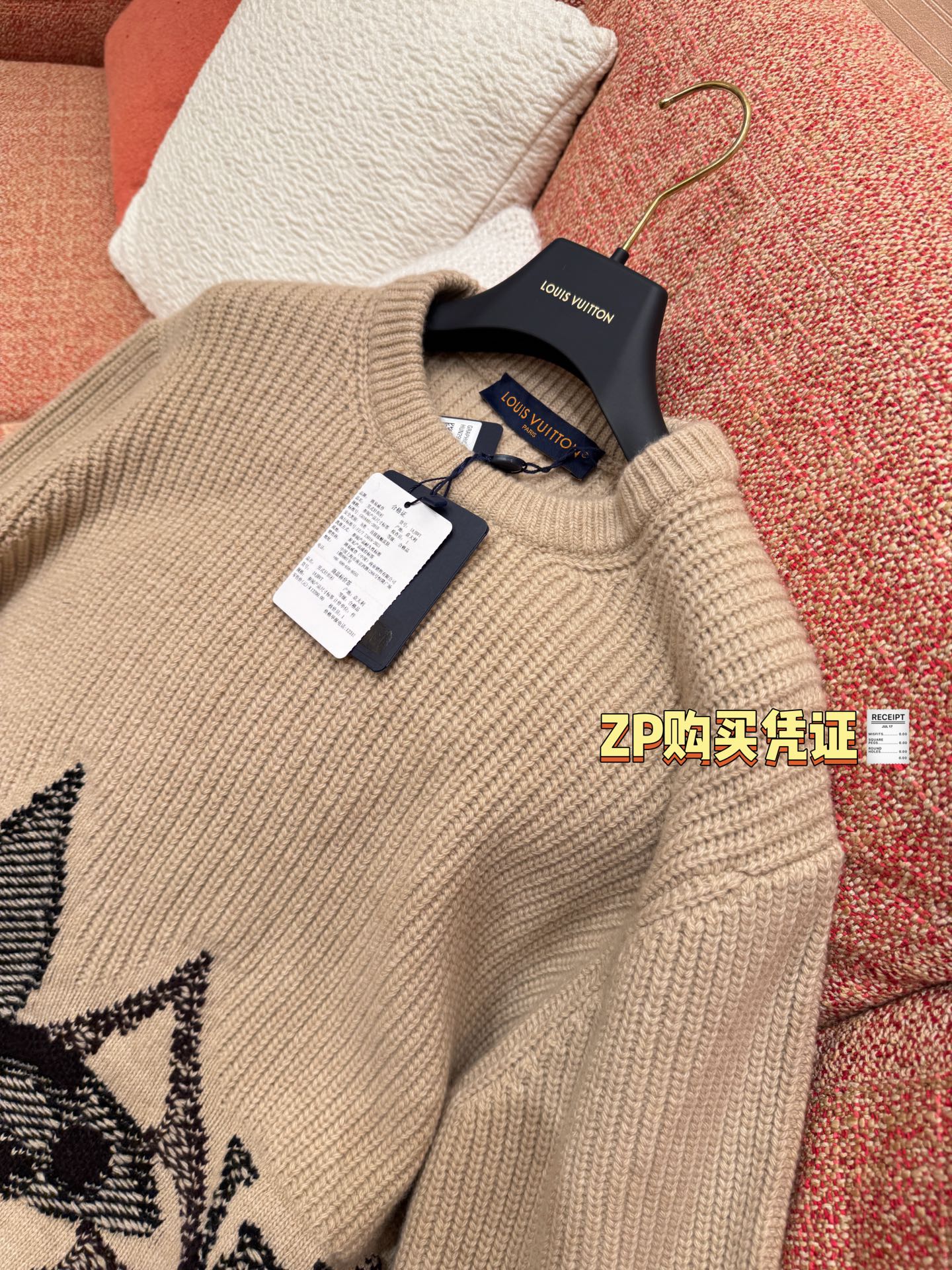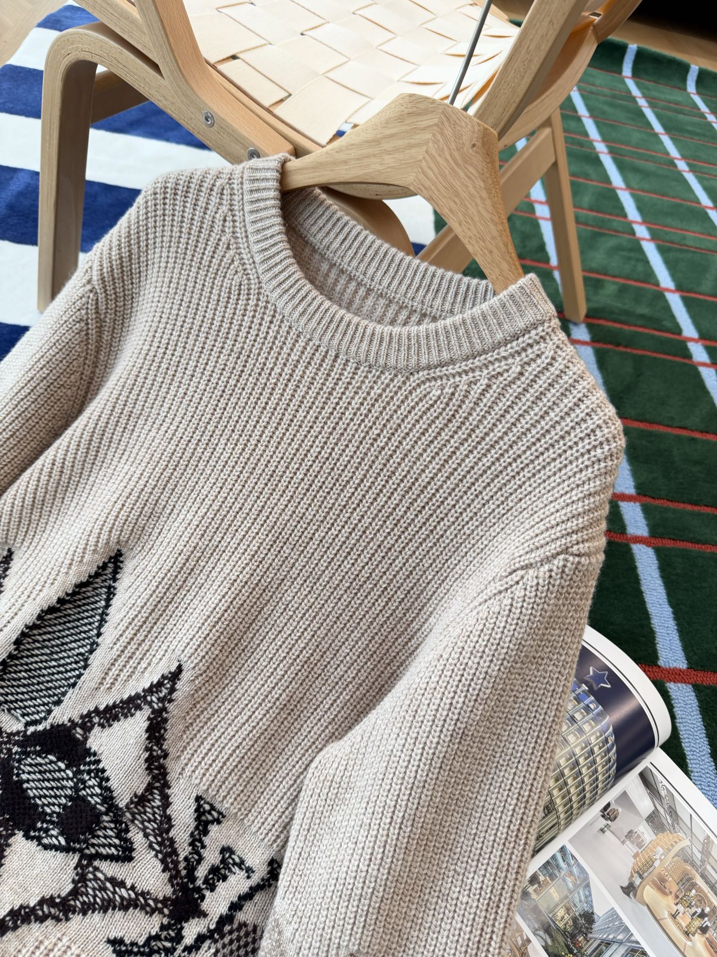 最新款🆕 本款卡其色粗针织圆领衫取材负责任采购的细腻绵羊毛,醒目绽放 Monogram 花卉,撞色纹理缝线塑就交叠标识图案,极简休闲,酷感日常风格〰️低调奢华,轻松穿出时髦高级感,让整体效果更加时尚精致,品质真的不吹不擂‼️定制定染纱线,色彩相当高级,厚实而柔软✨完美零色差,穿起来完全不会扎,宽松版型,必入的宝藏单品🥳🉑情侣款,码数SML
