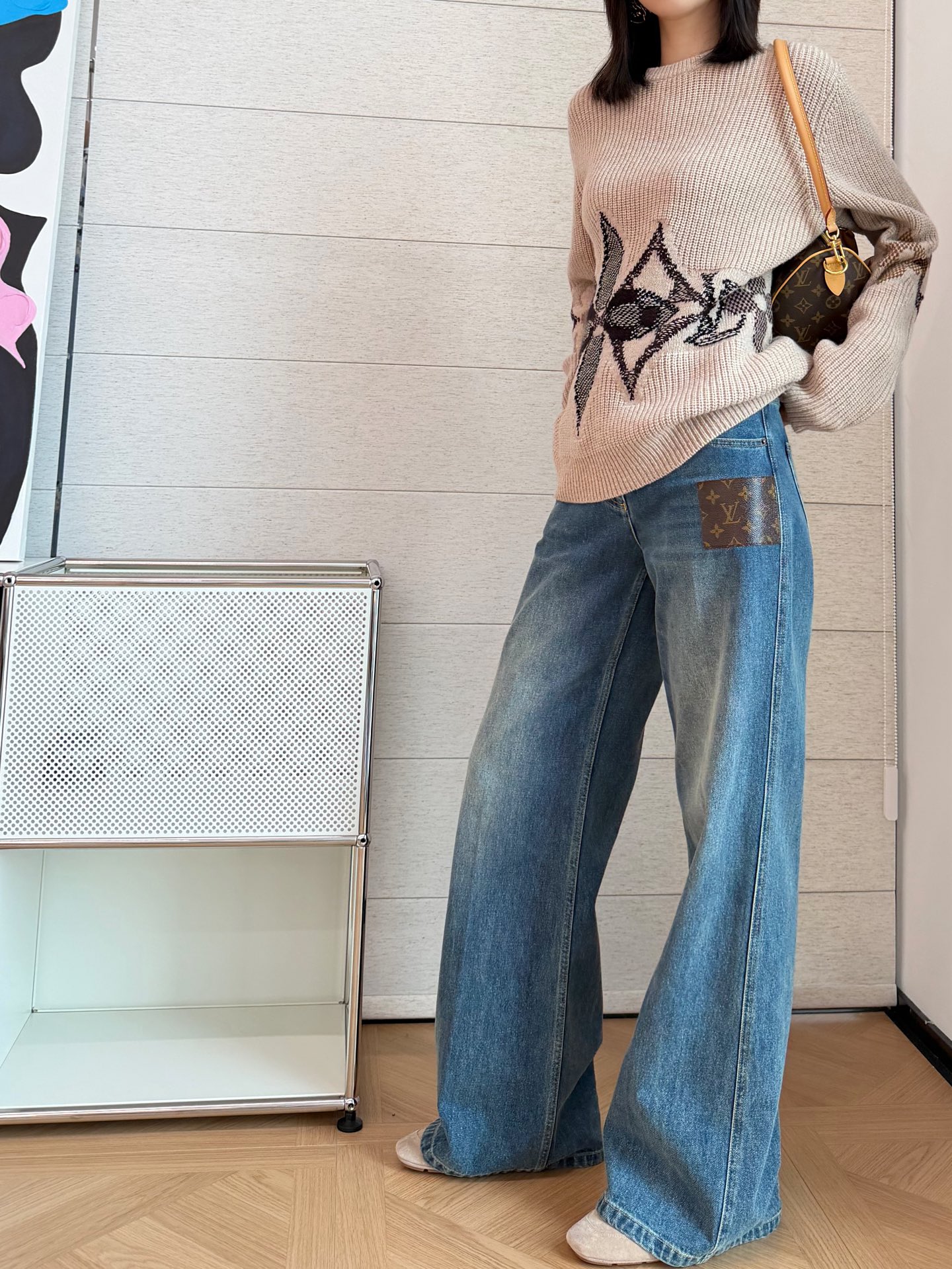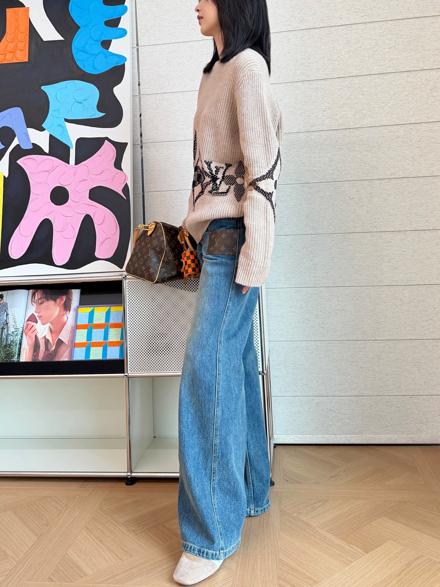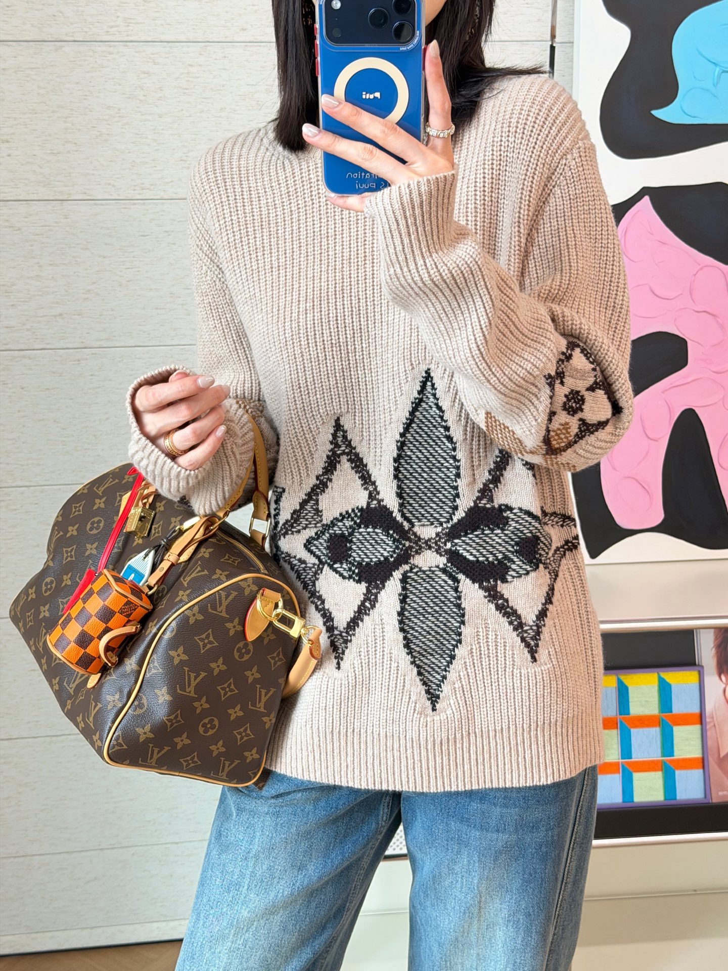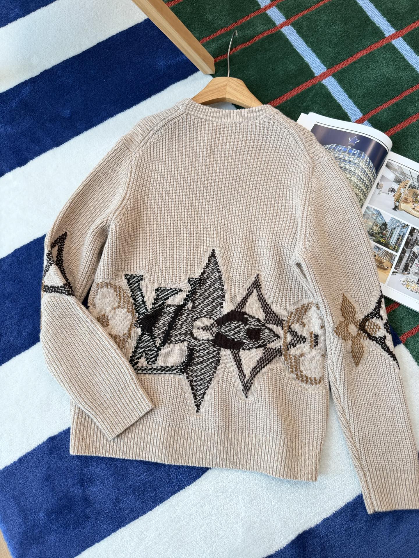 最新款🆕 本款卡其色粗针织圆领衫取材负责任采购的细腻绵羊毛,醒目绽放 Monogram 花卉,撞色纹理缝线塑就交叠标识图案,极简休闲,酷感日常风格〰️低调奢华,轻松穿出时髦高级感,让整体效果更加时尚精致,品质真的不吹不擂‼️定制定染纱线,色彩相当高级,厚实而柔软✨完美零色差,穿起来完全不会扎,宽松版型,必入的宝藏单品🥳🉑情侣款,码数SML