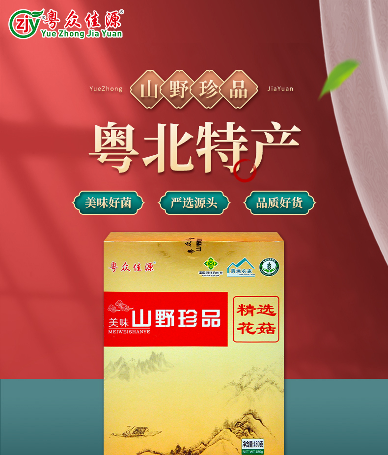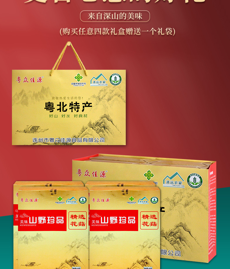 广东清远连州市粤众佳源精选花菇礼盒180g/盒