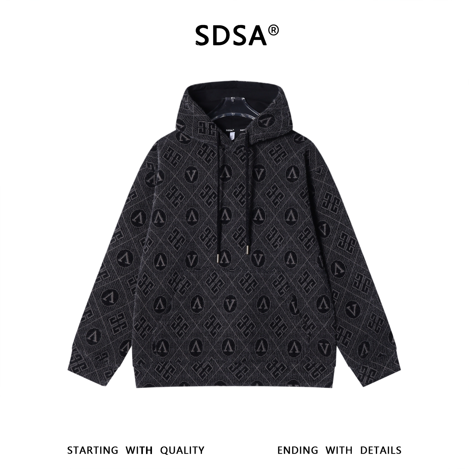 WY1469SDSA男士秋冬新款痞帅男装潮牌设计感绒毛菱形格字母连帽卫衣百搭