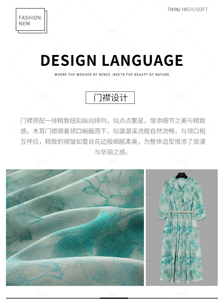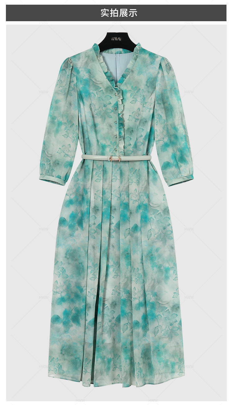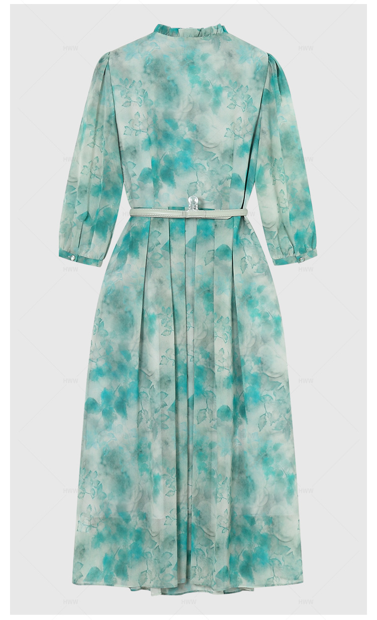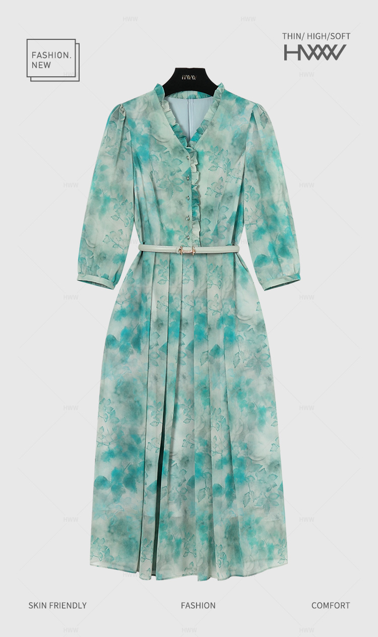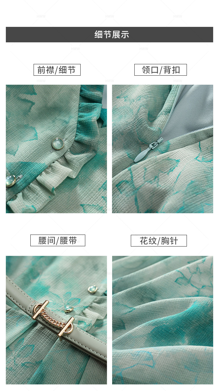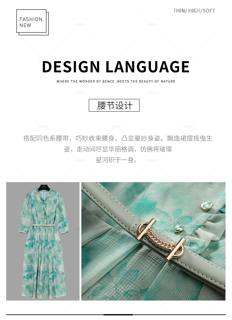 【赫尔温】设计师款鹦歌绿时尚收腰显瘦连衣裙DHZFF50849