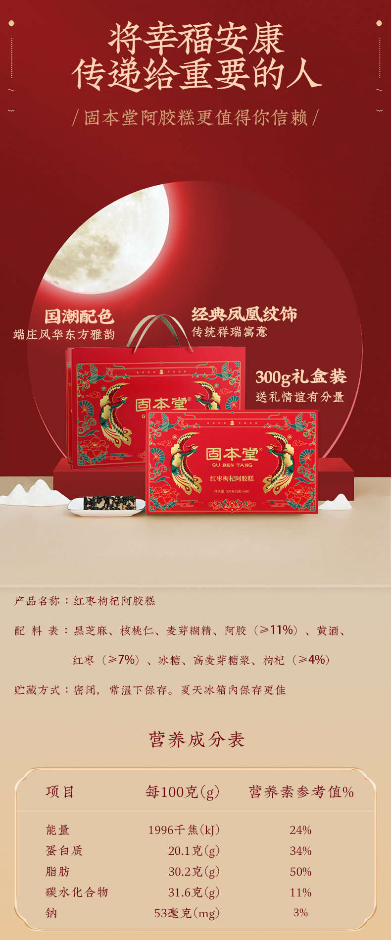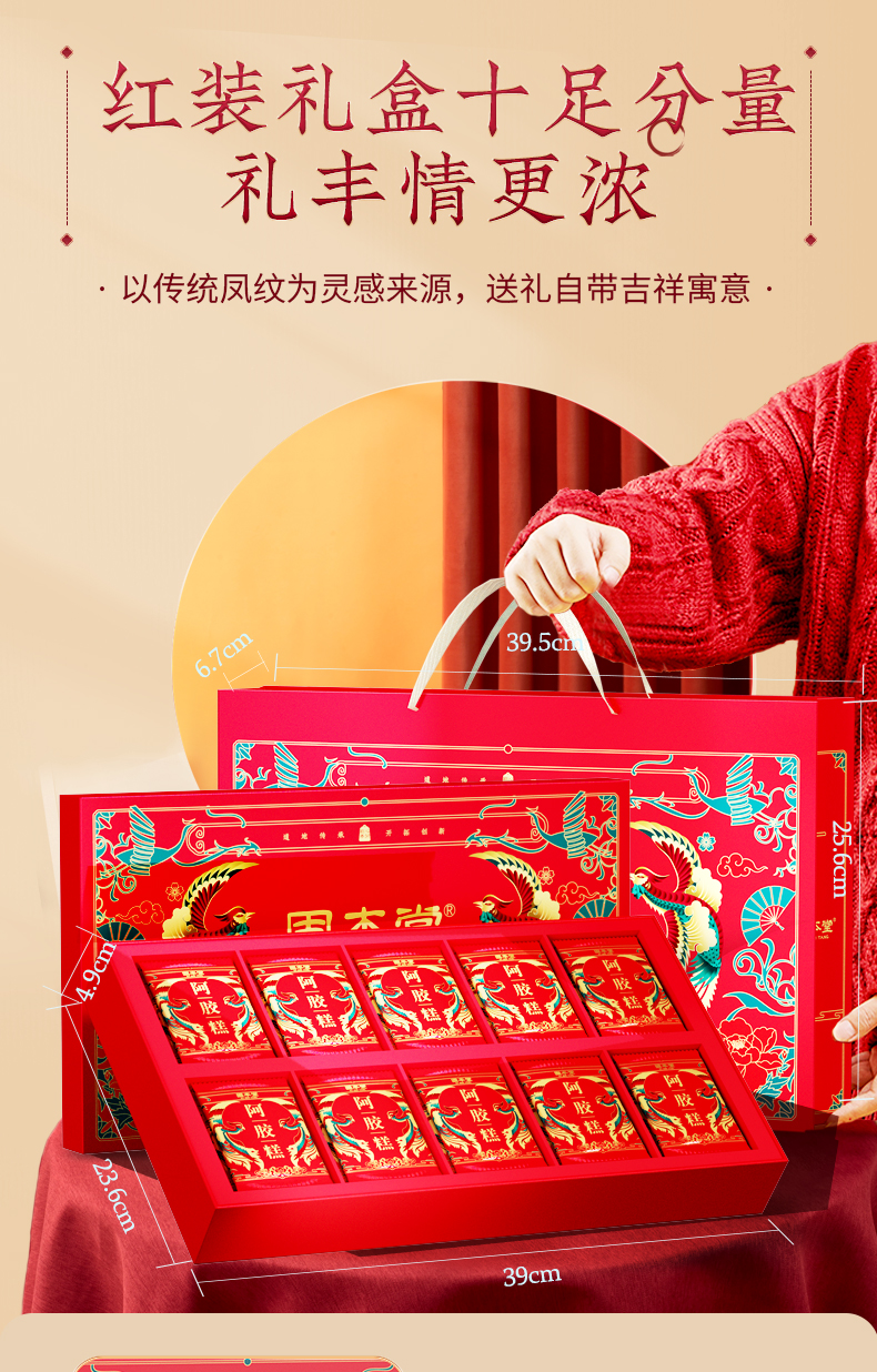 红枣枸杞阿胶糕礼盒300g 即食阿胶糕送礼长辈父母家长女人营养品礼品食品礼盒 【固本堂】