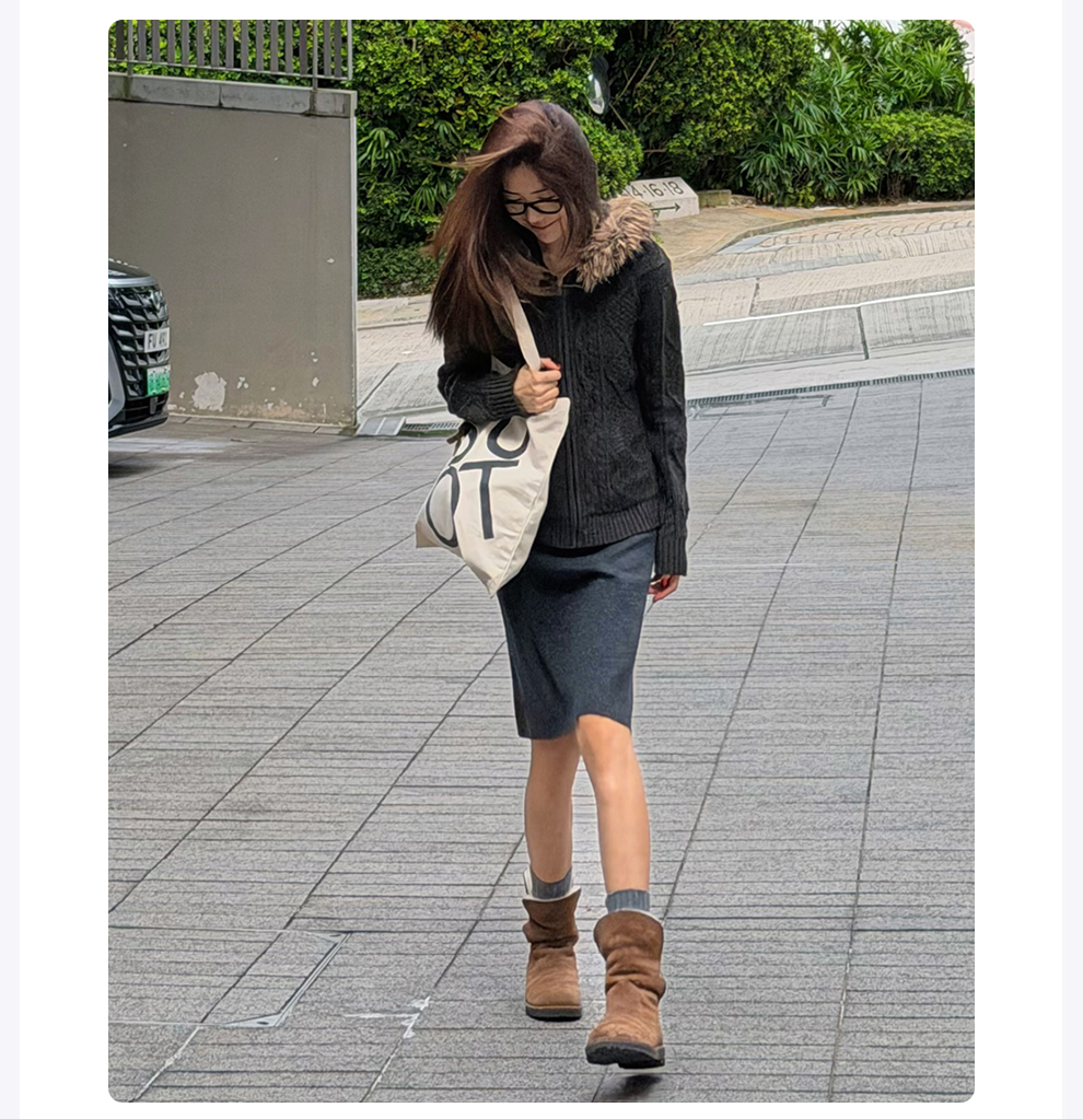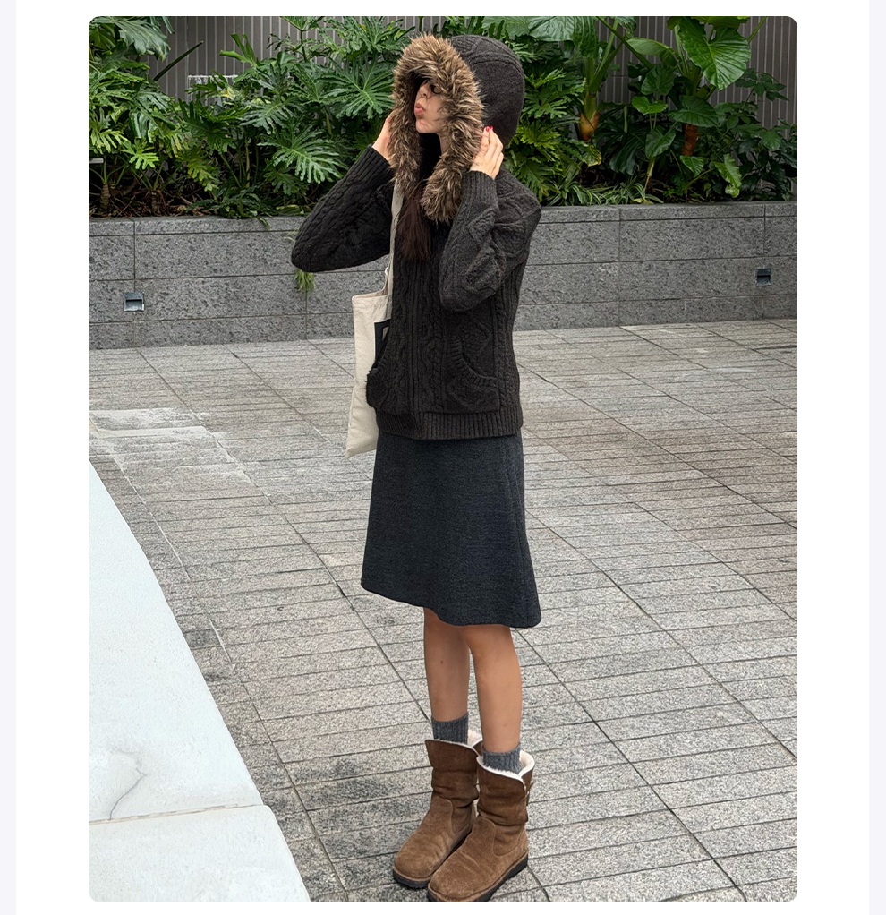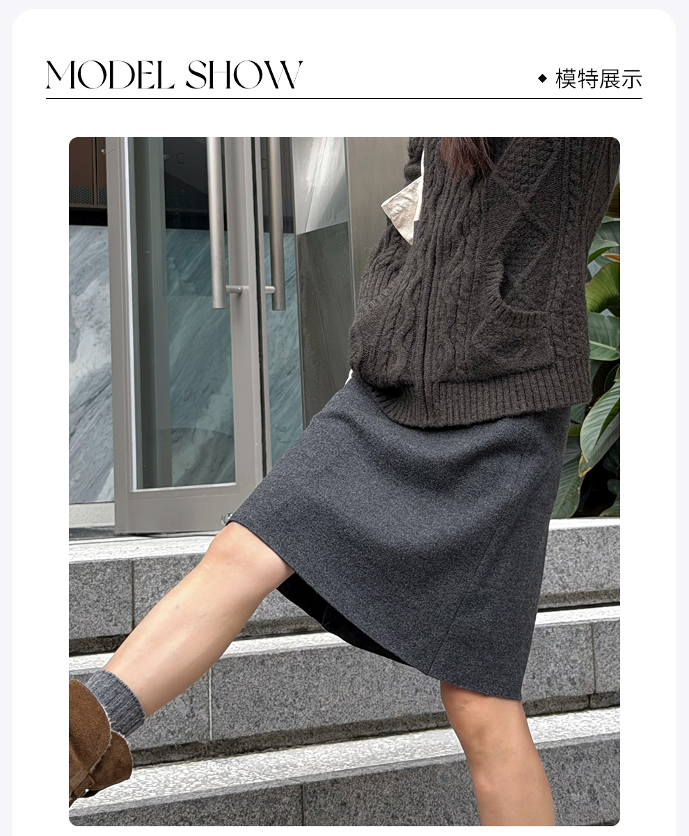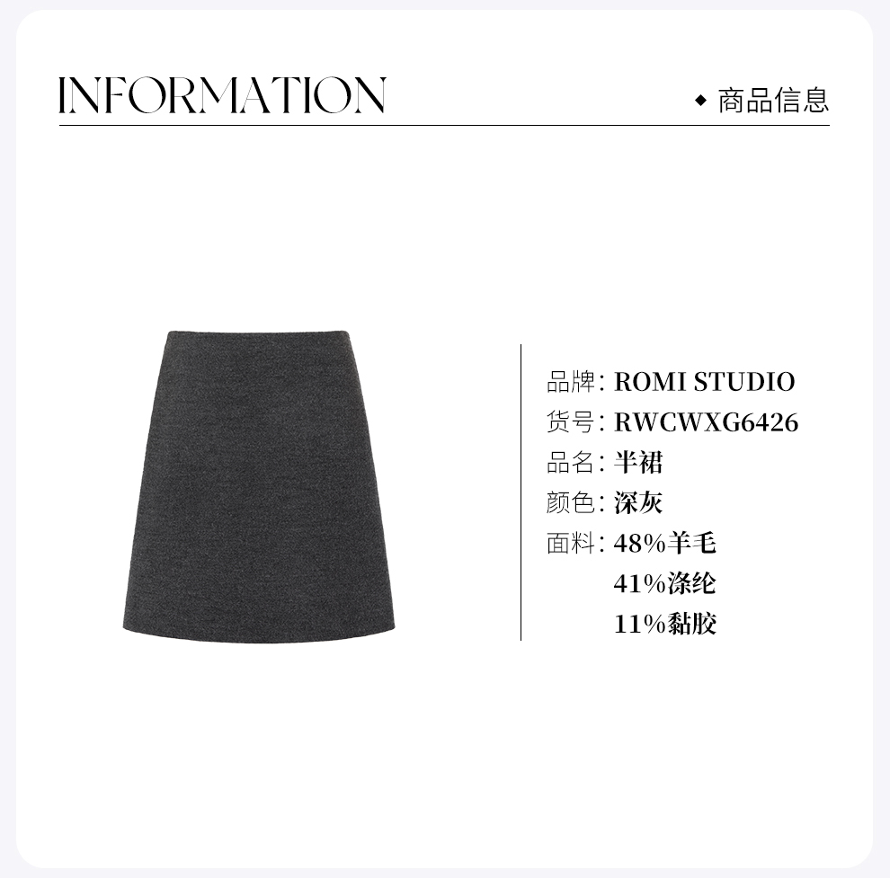 ROMI STUDIO“简约老钱”羊毛混纺柔韧织带微A半身裙 RWCWXG6426