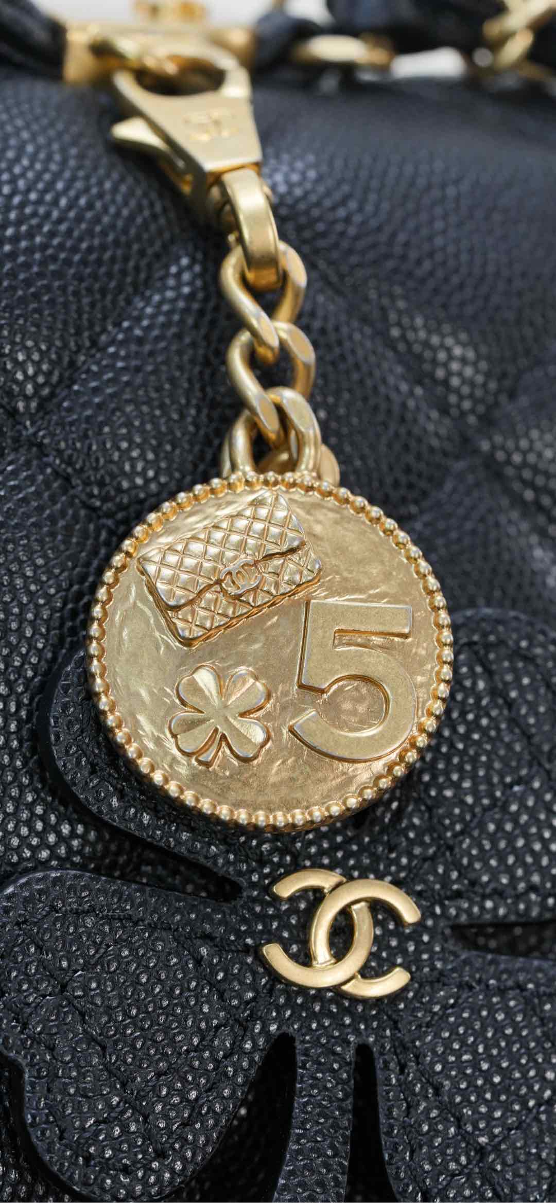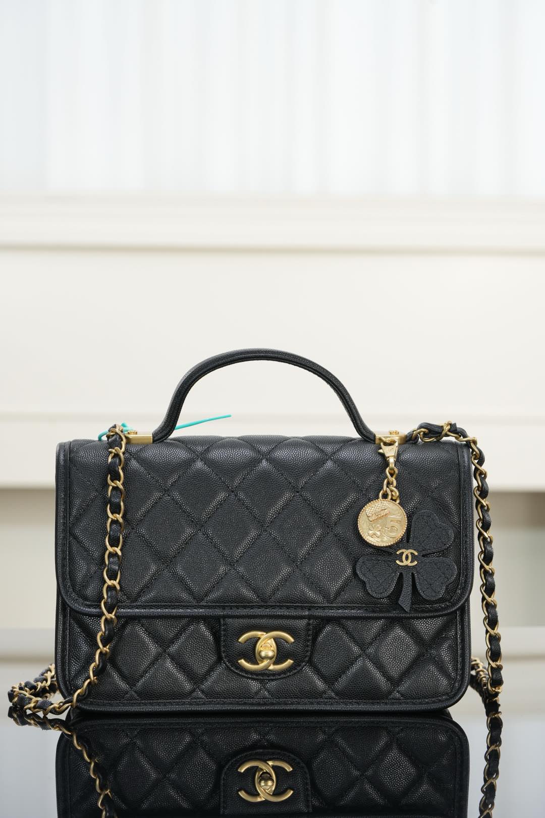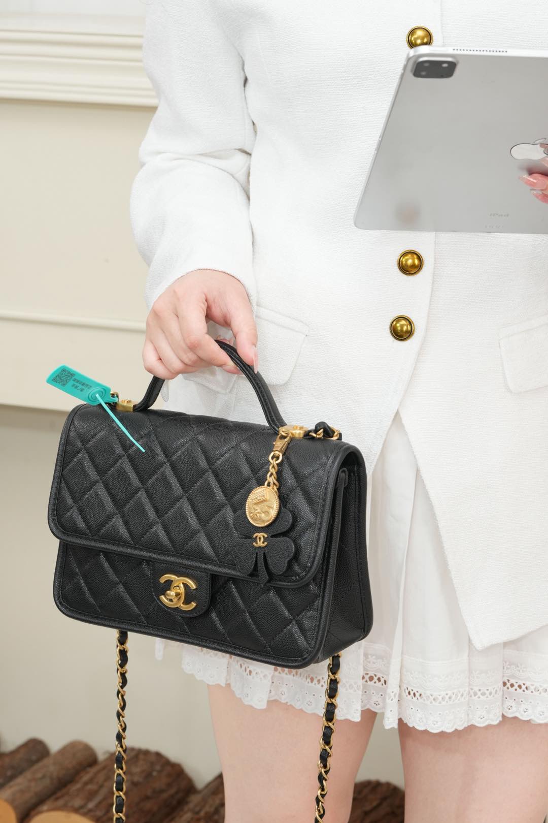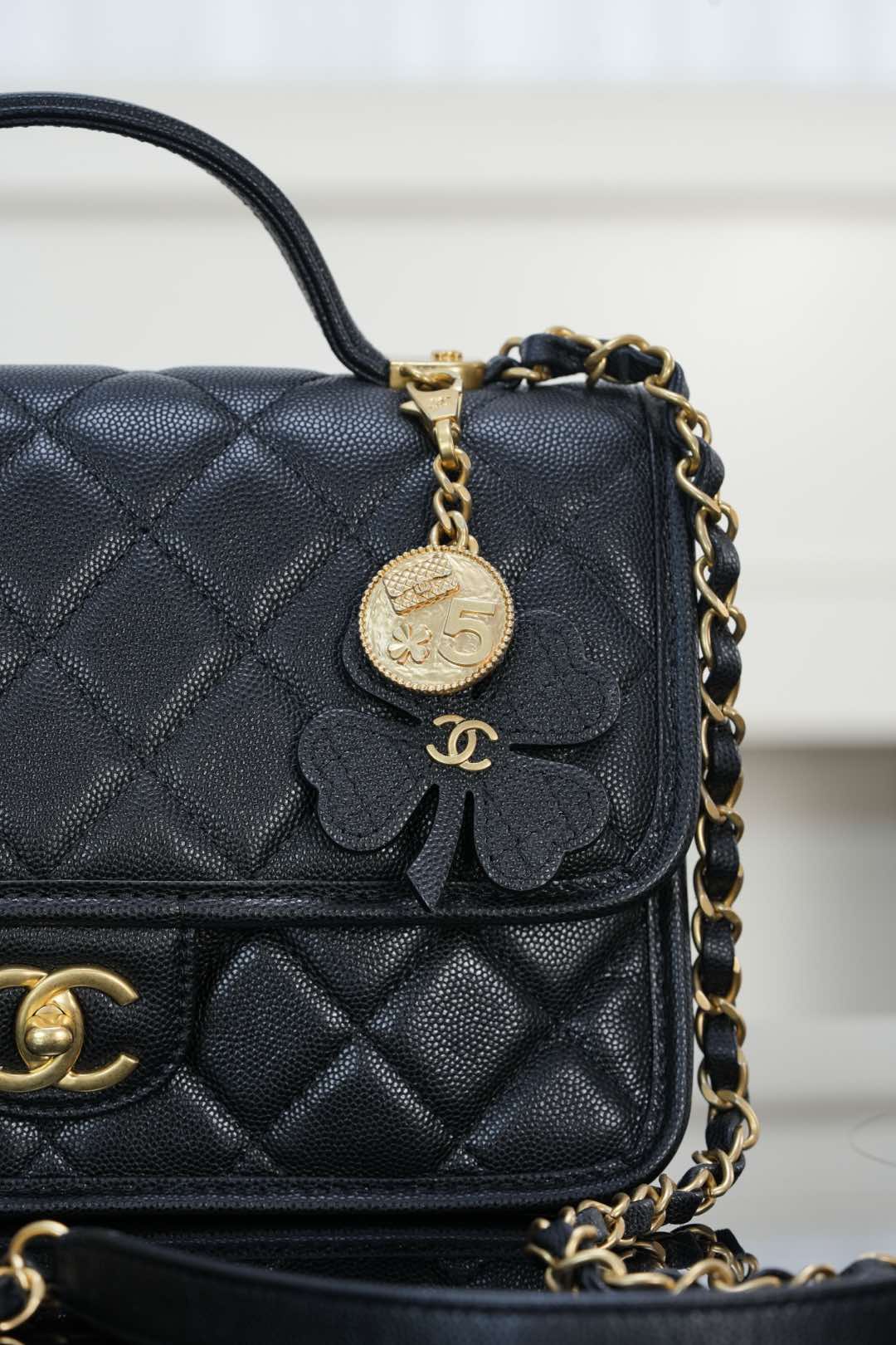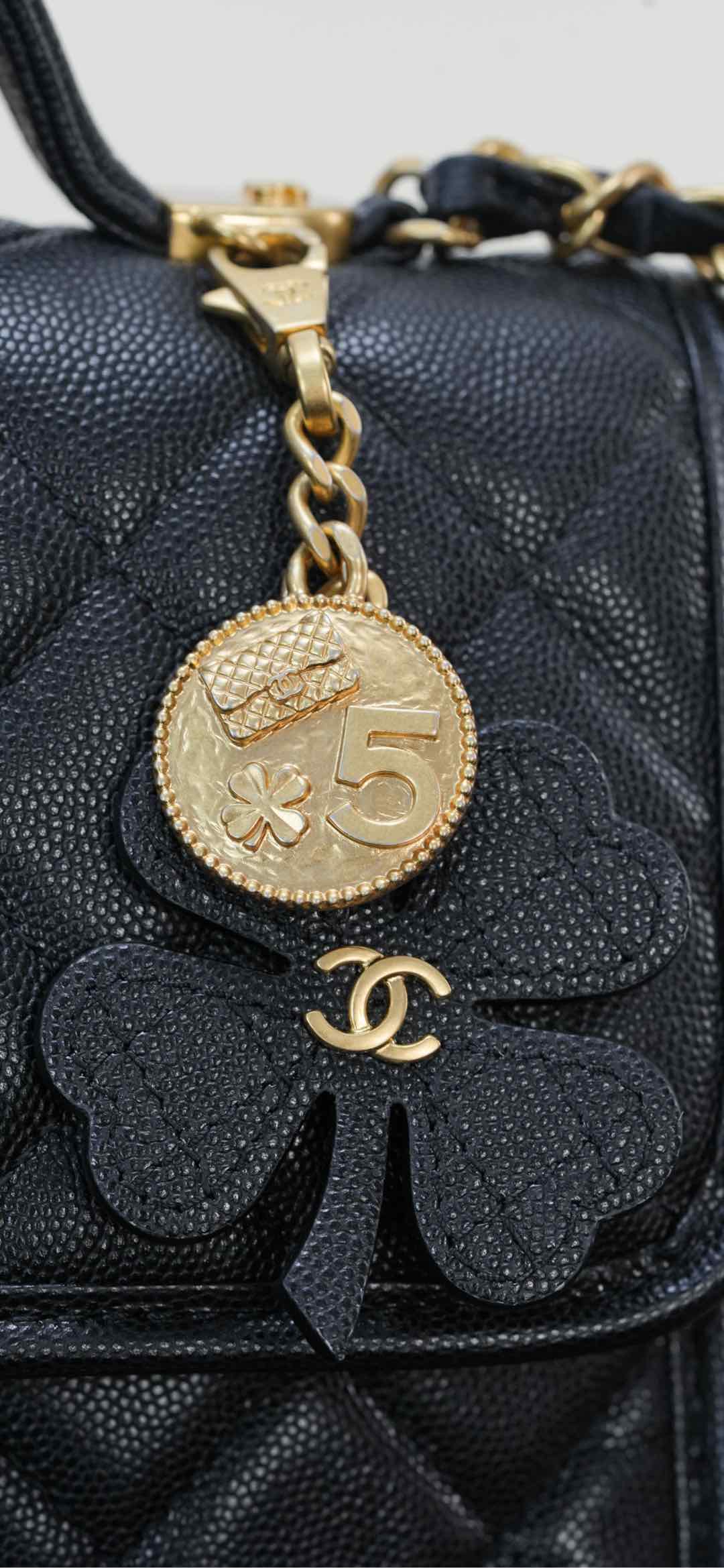 标志性金币挂件上集齐菱格包、5️⃣号香水符号、双𝐂经典元素💣 加上四叶草点缀 灵动俏皮感十足 👏🏻 自带手柄🉑手提;链条可单肩🉑斜跨、也可以单独拆卸直接当手提包👜使用!其实拿捏氛围感好吗✔️