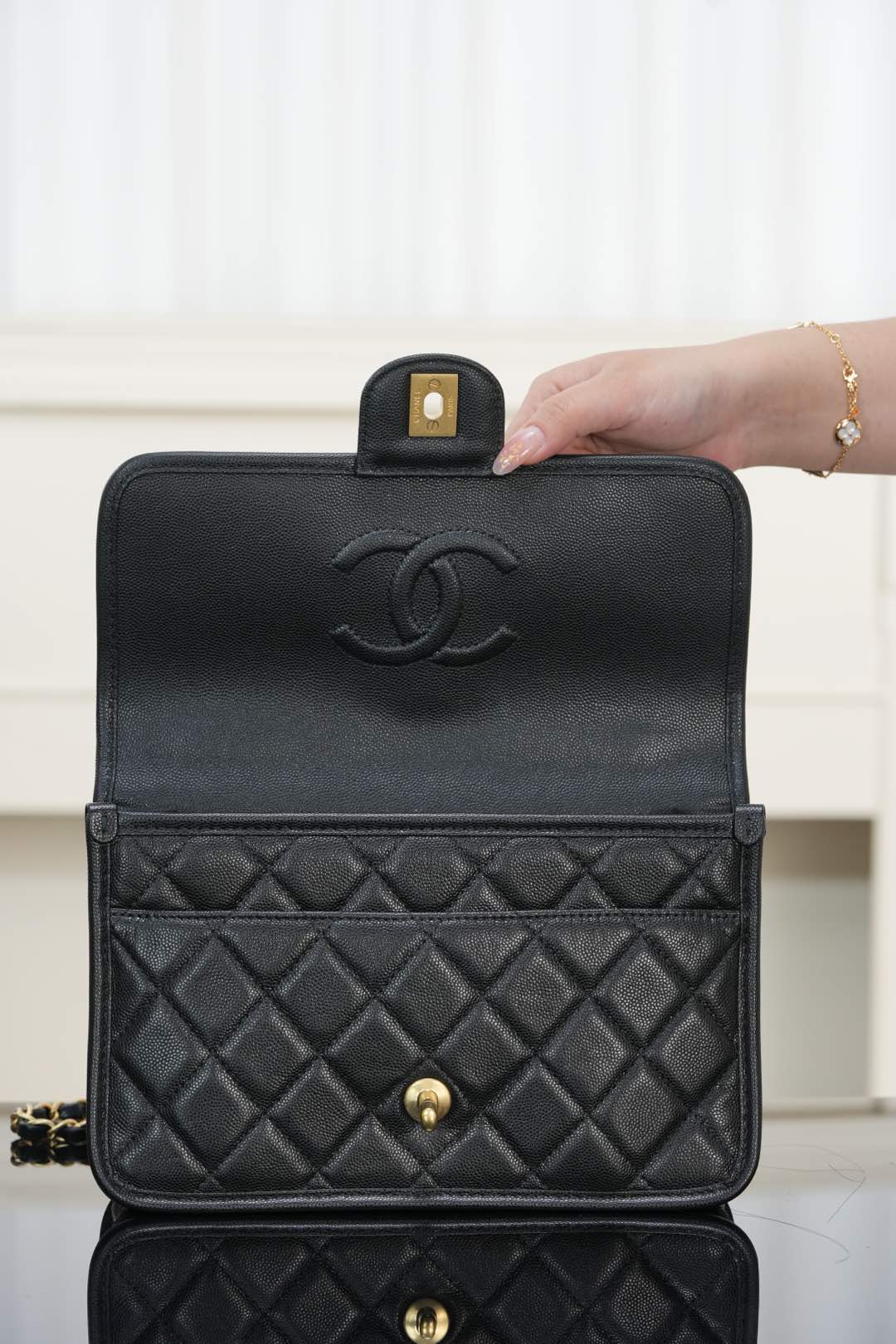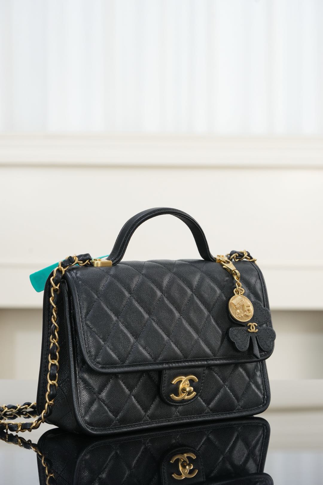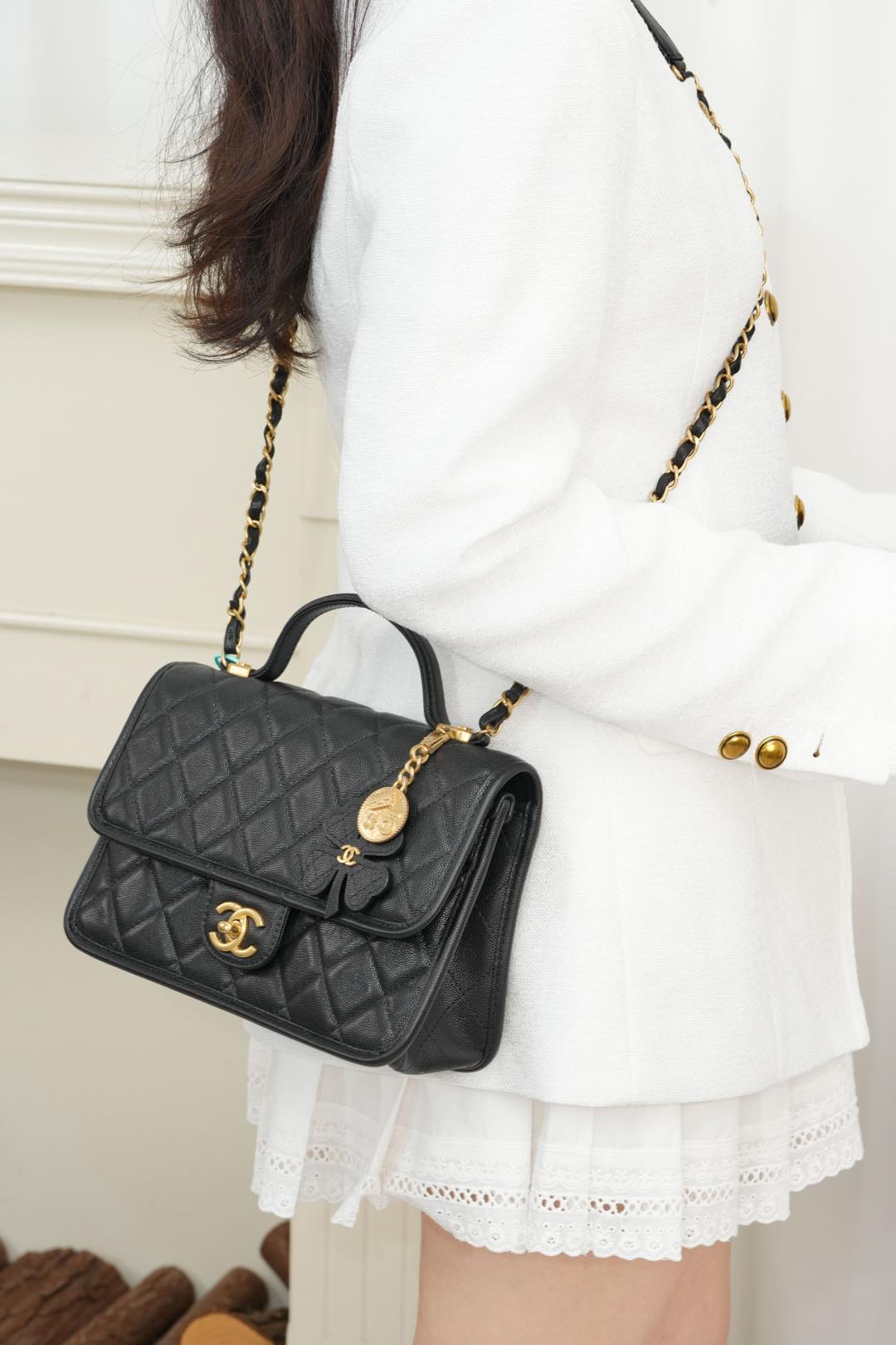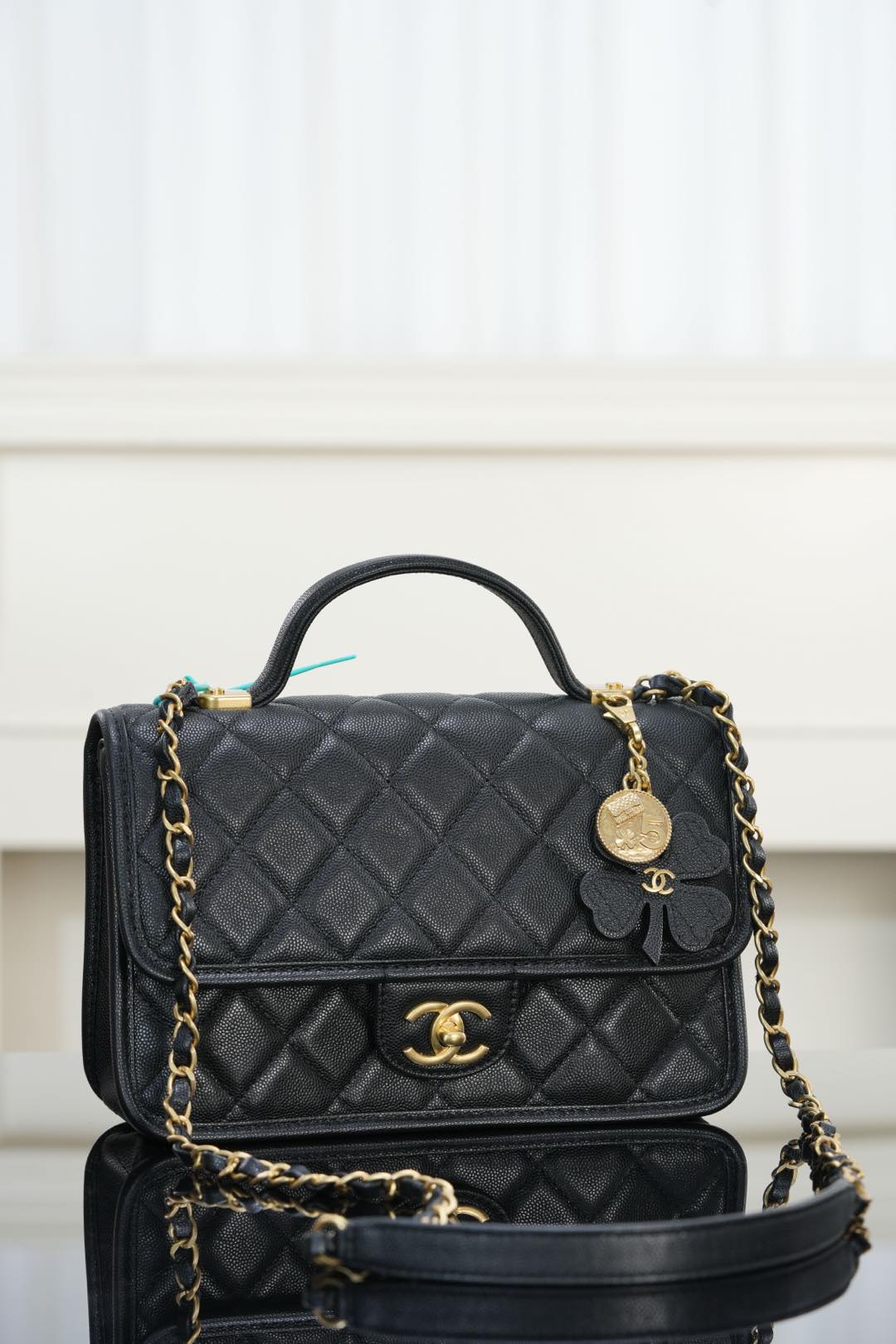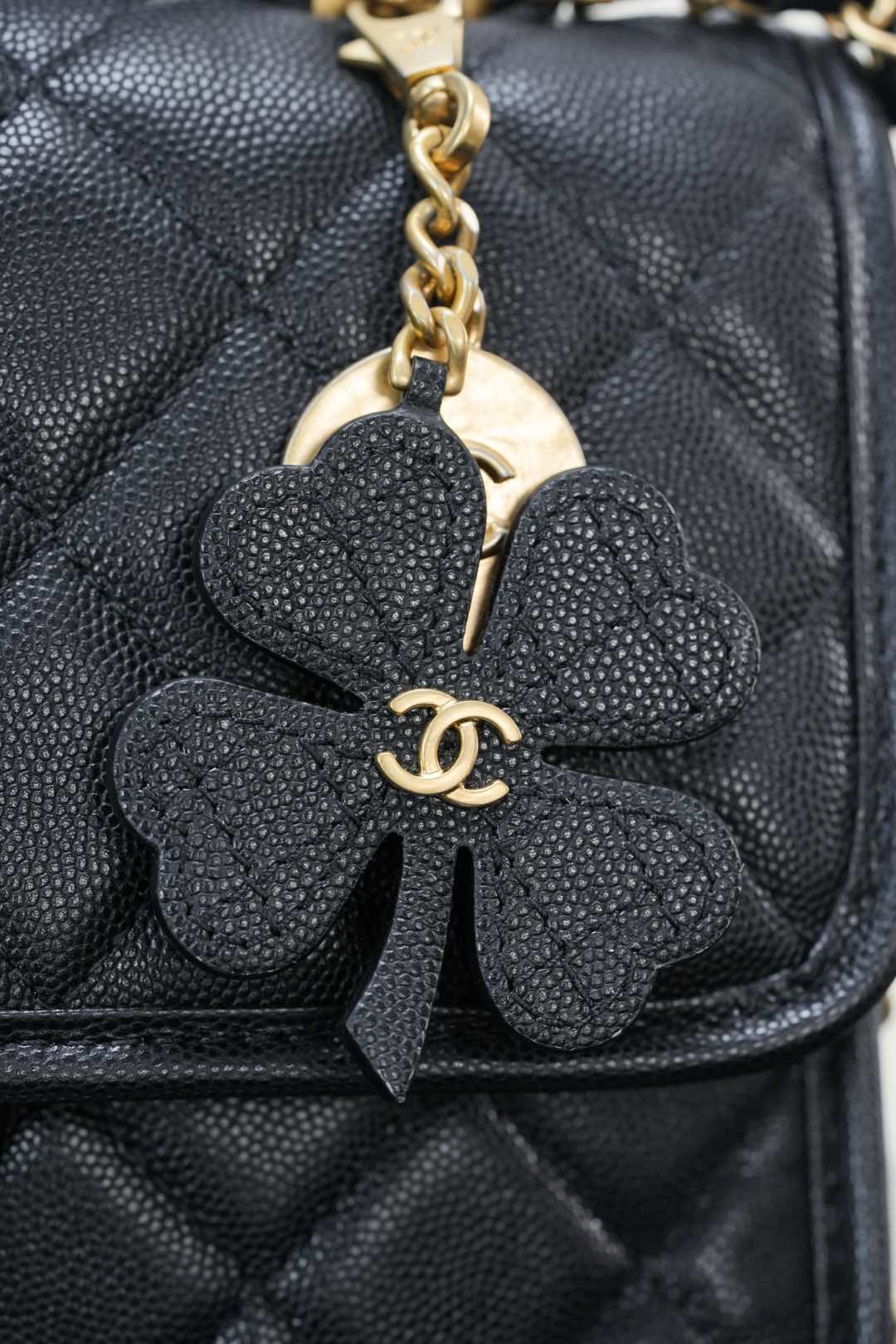 标志性金币挂件上集齐菱格包、5️⃣号香水符号、双𝐂经典元素💣 加上四叶草点缀 灵动俏皮感十足 👏🏻 自带手柄🉑手提;链条可单肩🉑斜跨、也可以单独拆卸直接当手提包👜使用!其实拿捏氛围感好吗✔️