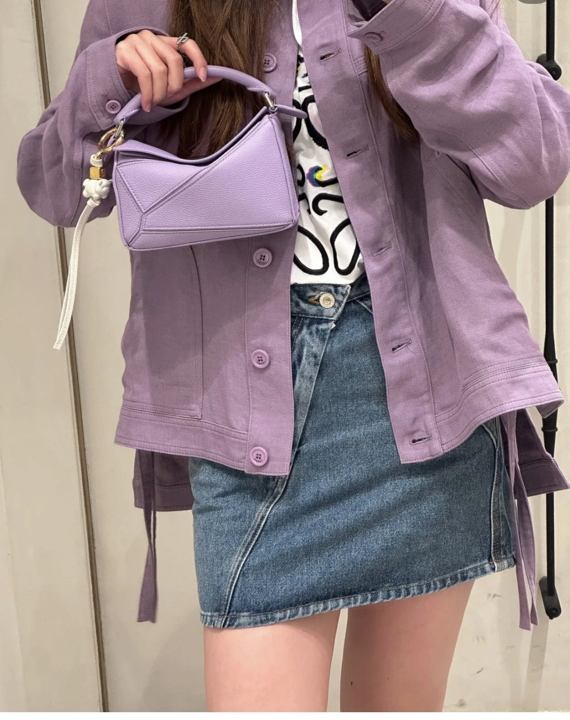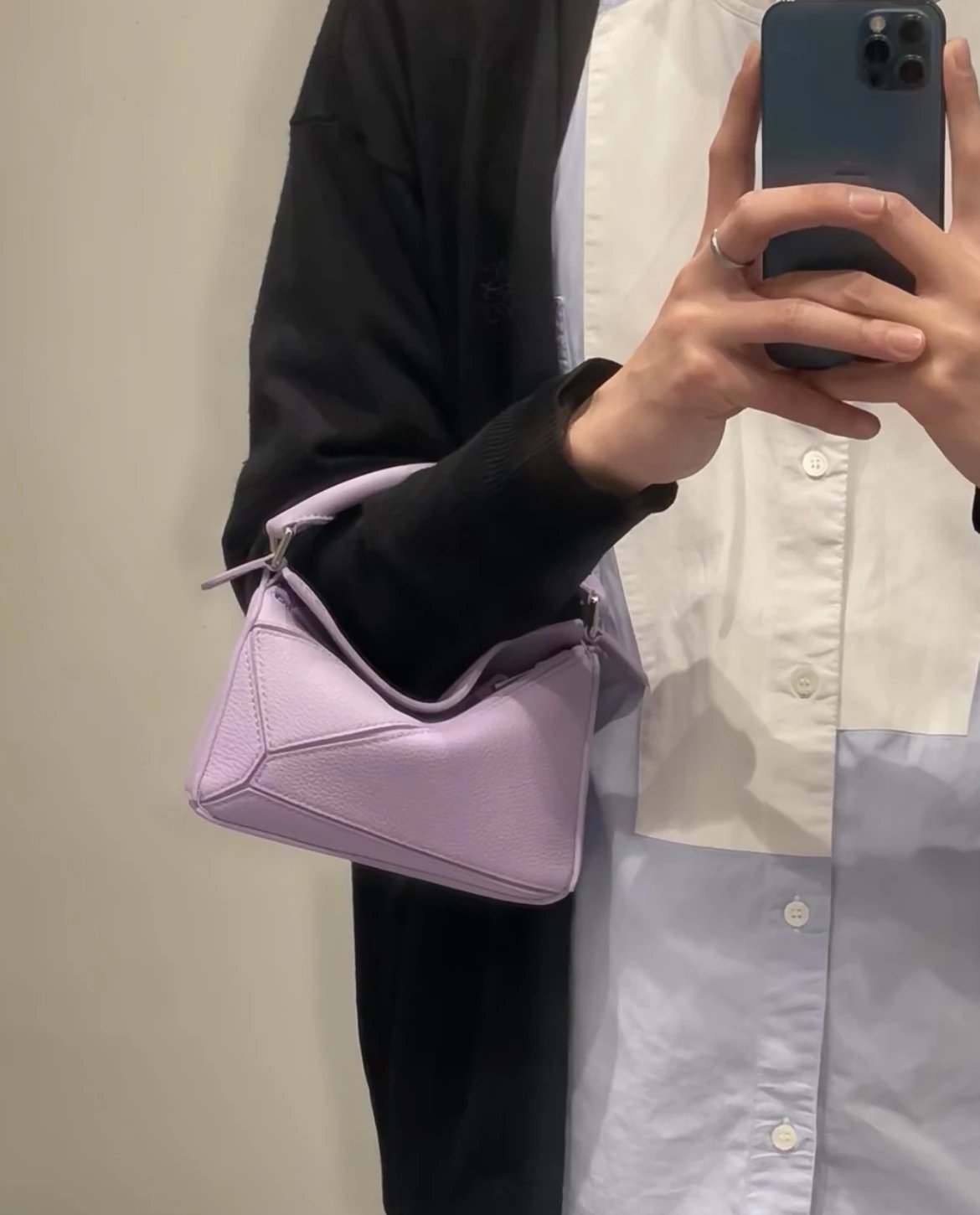 puzzle荔枝皮家族再添一员 啊 春天的颜色呀 简约大气的几何设计可甜可盐定制荔面牛皮 棉麻内衬 mini号小身材大容量手机口红,粉饼统统进来 毫无压力哈size:18*11*7.5cm