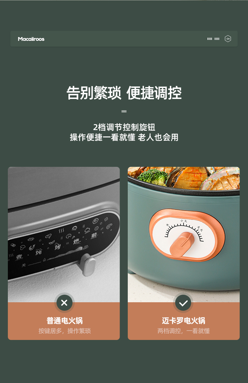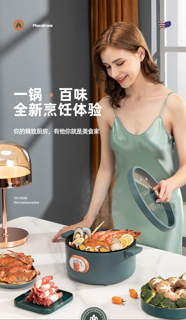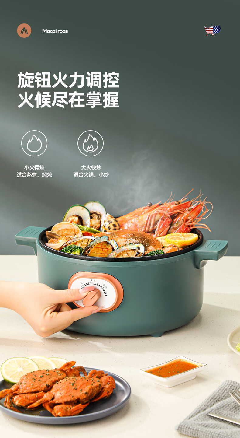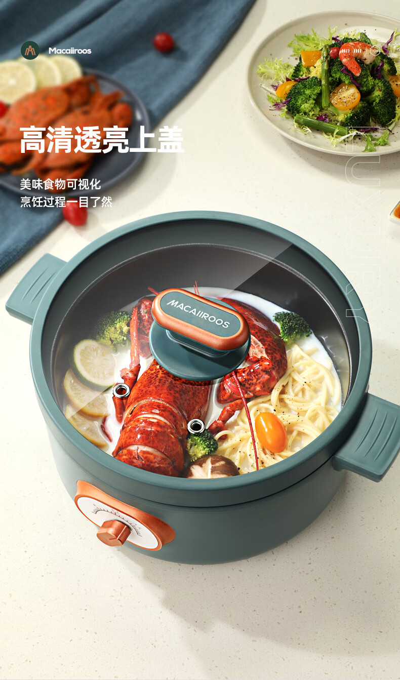 迈卡罗 (MACAIIROOS)电火锅多功能电热锅多用途锅宿舍小锅电炒锅不粘锅电煮锅煮面炒煮小火锅 MC-HG316