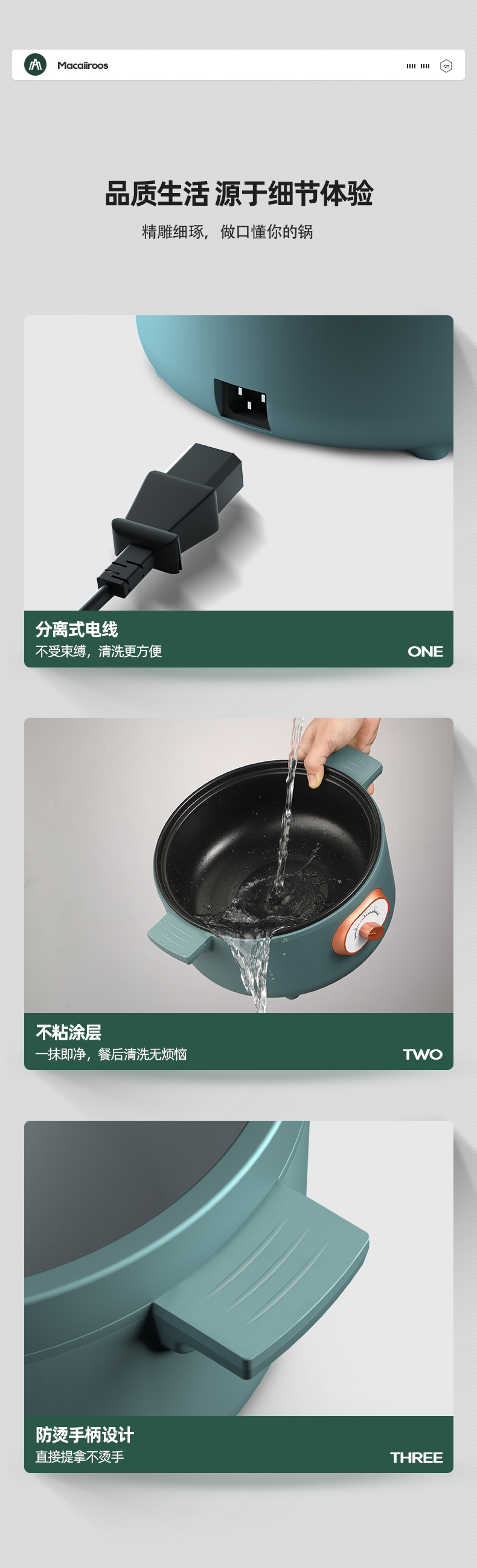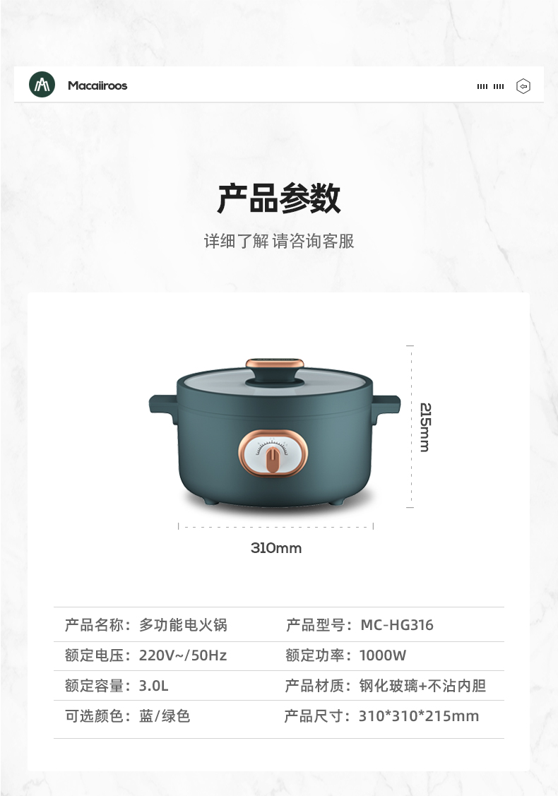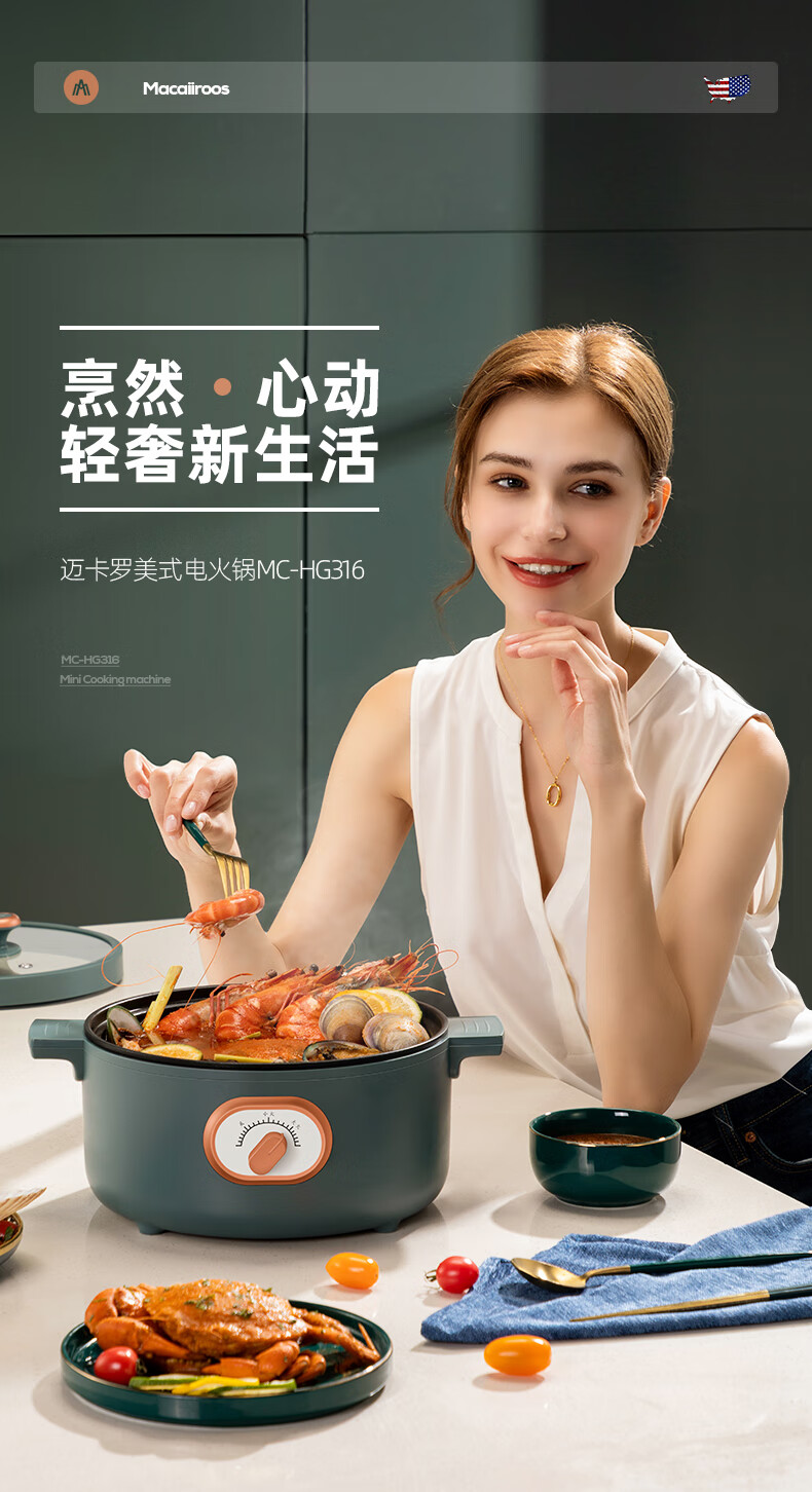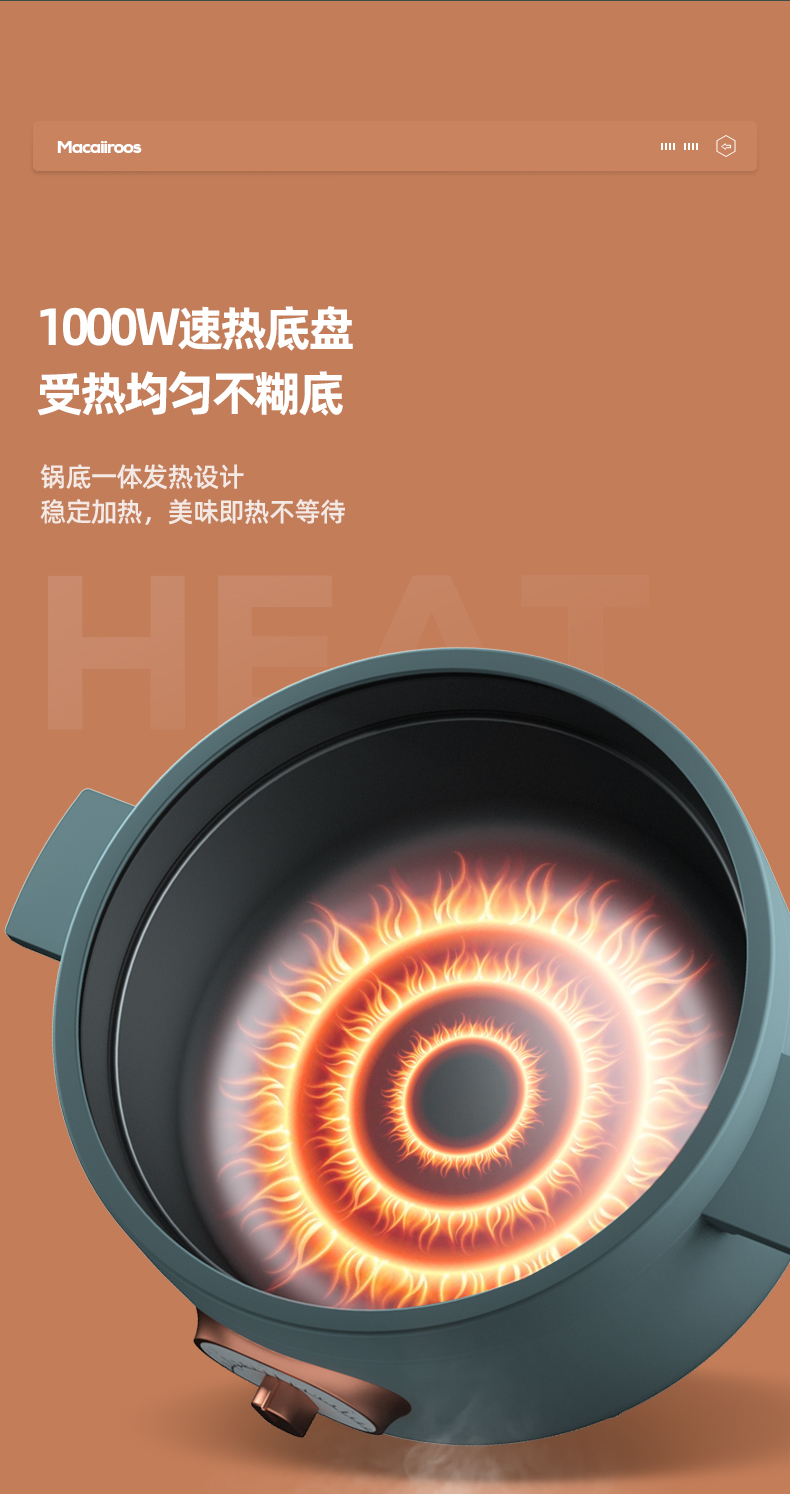 迈卡罗 (MACAIIROOS)电火锅多功能电热锅多用途锅宿舍小锅电炒锅不粘锅电煮锅煮面炒煮小火锅 MC-HG316