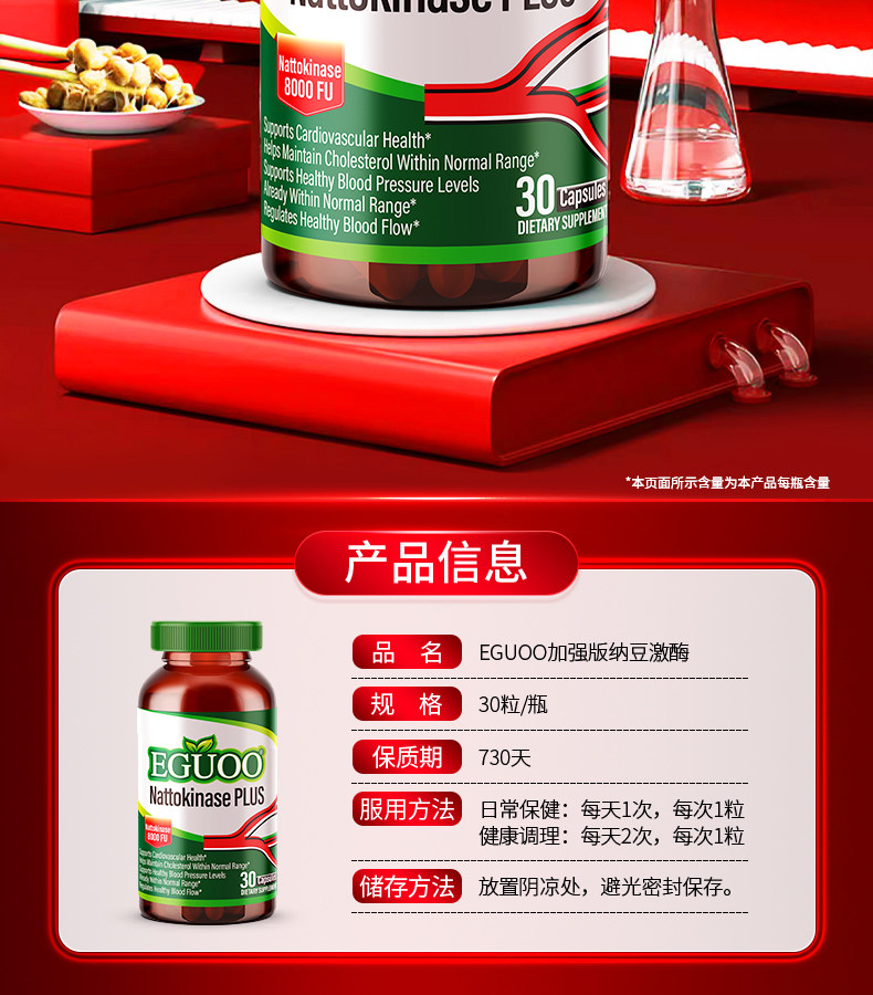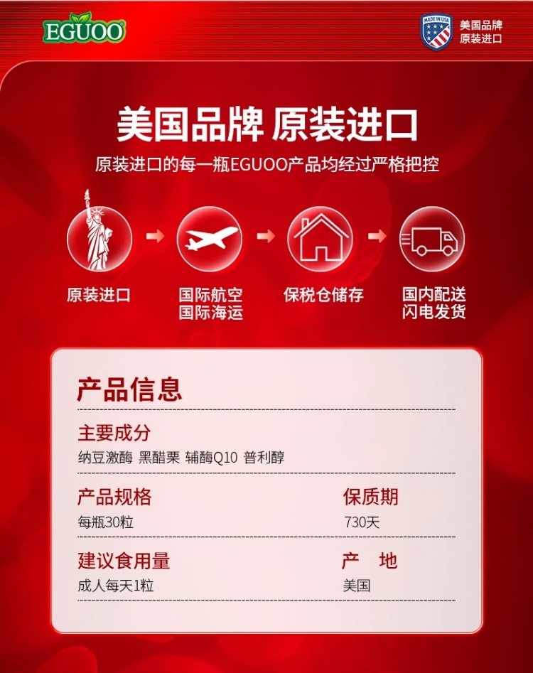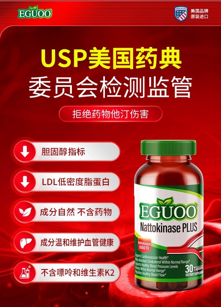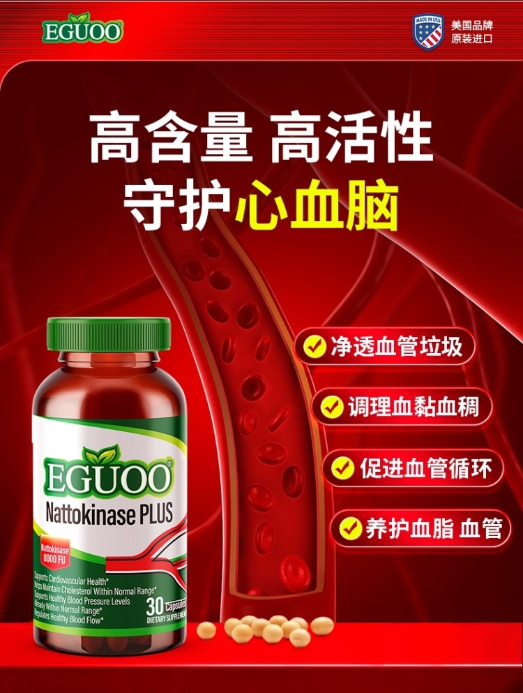 美国进口EGUOO高活性纳豆激酶中老年心血脑辅酶Q10疏通养护心脏k