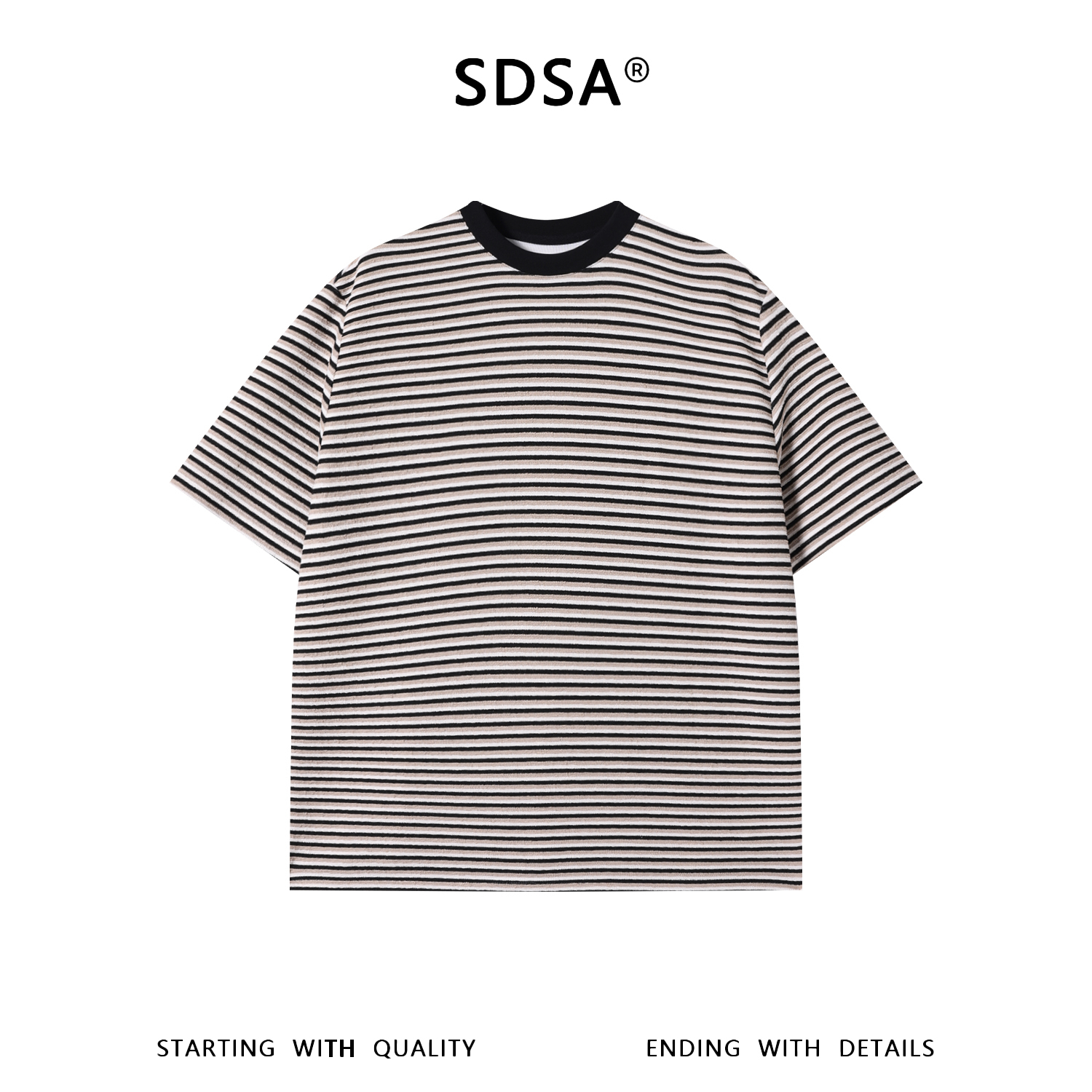 SDSA男装2026新款轻奢美式复古撞色领肌理感条纹宽松短袖T恤百搭