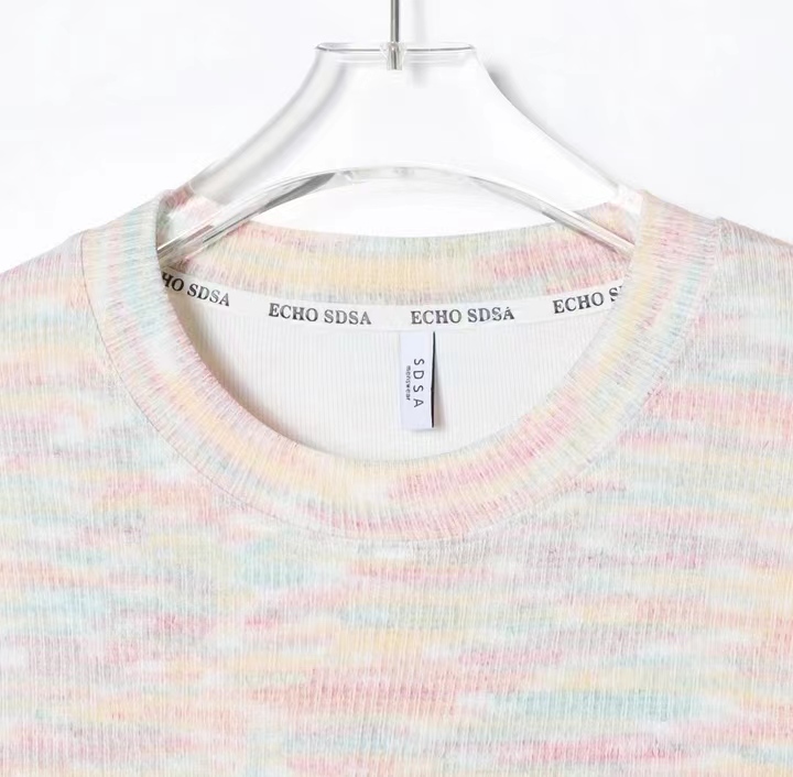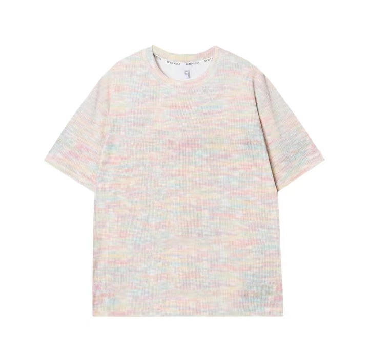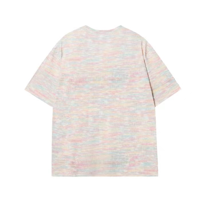 T719夏季新款彩虹编织男女短袖时尚百搭T恤潮流休闲宽松上衣